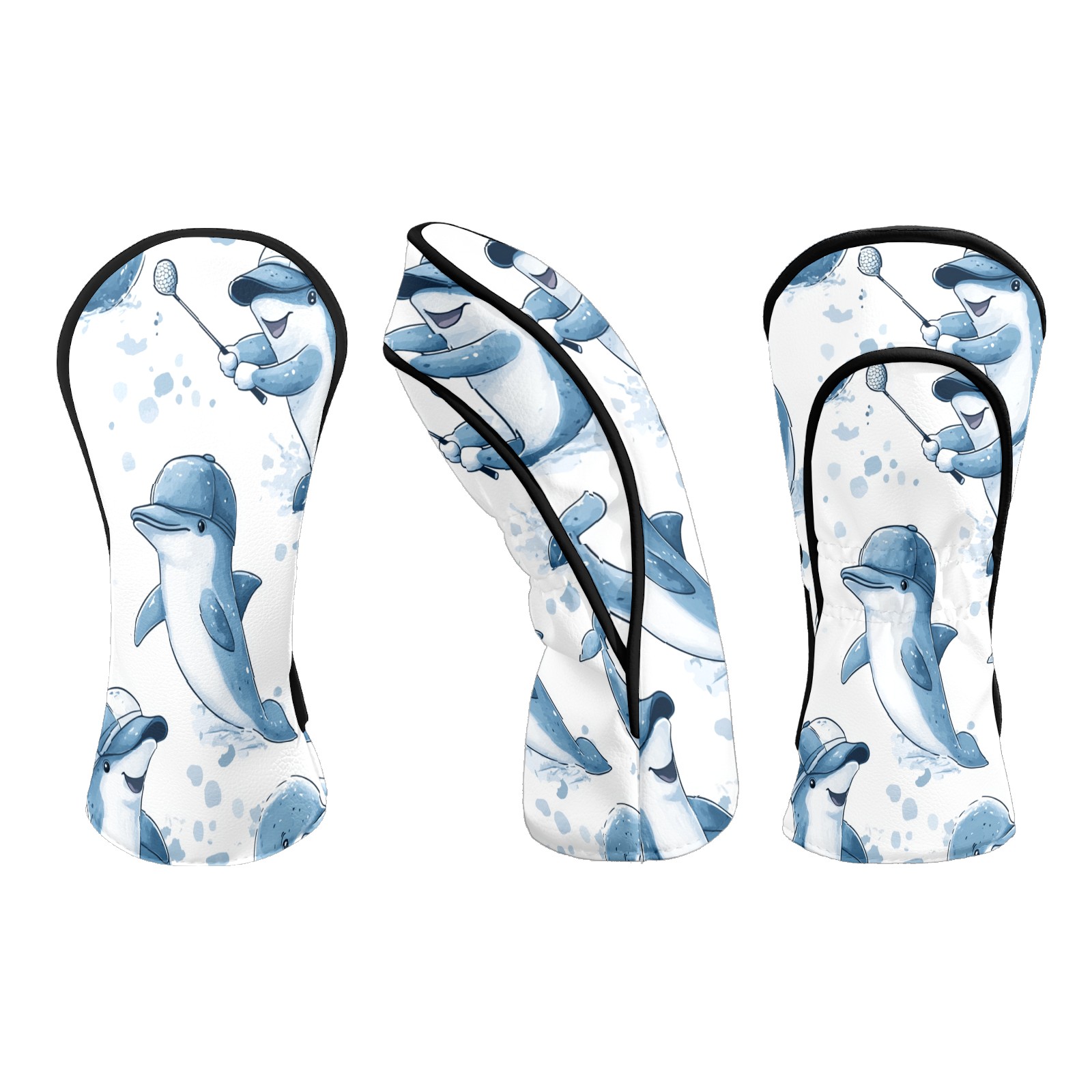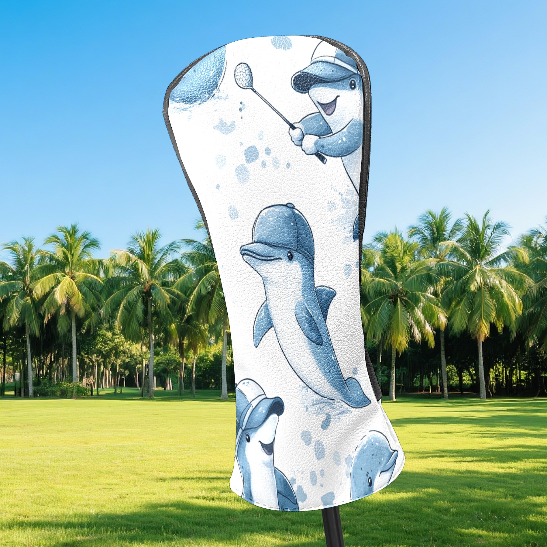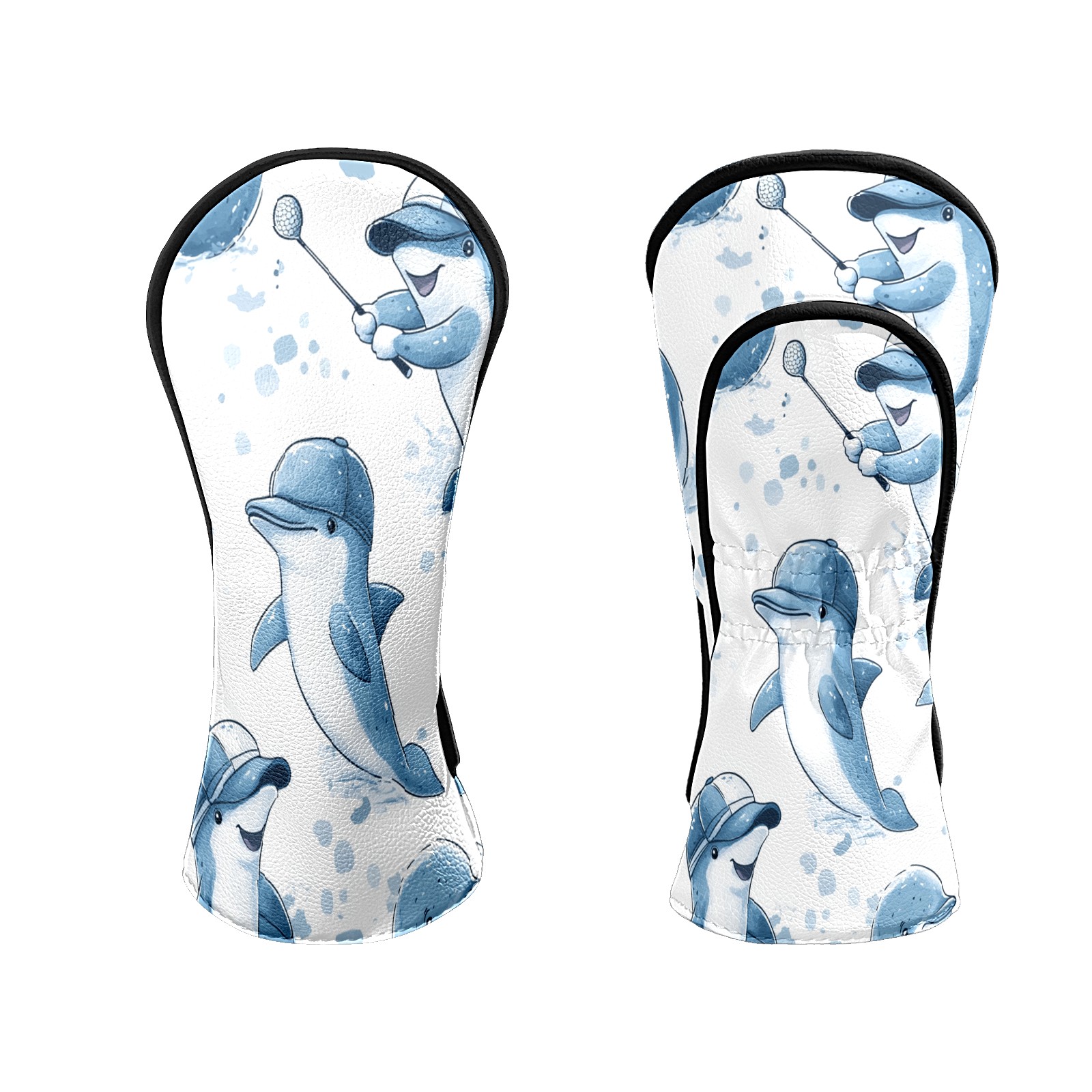 Golf Club Covers Fun Dolphins Driver Head cover, Leather Golf Club Head Covers for Driver Fairway Woods Waterproof Golf Headcovers with Anti-Scratch Lining Fits Most Clubs