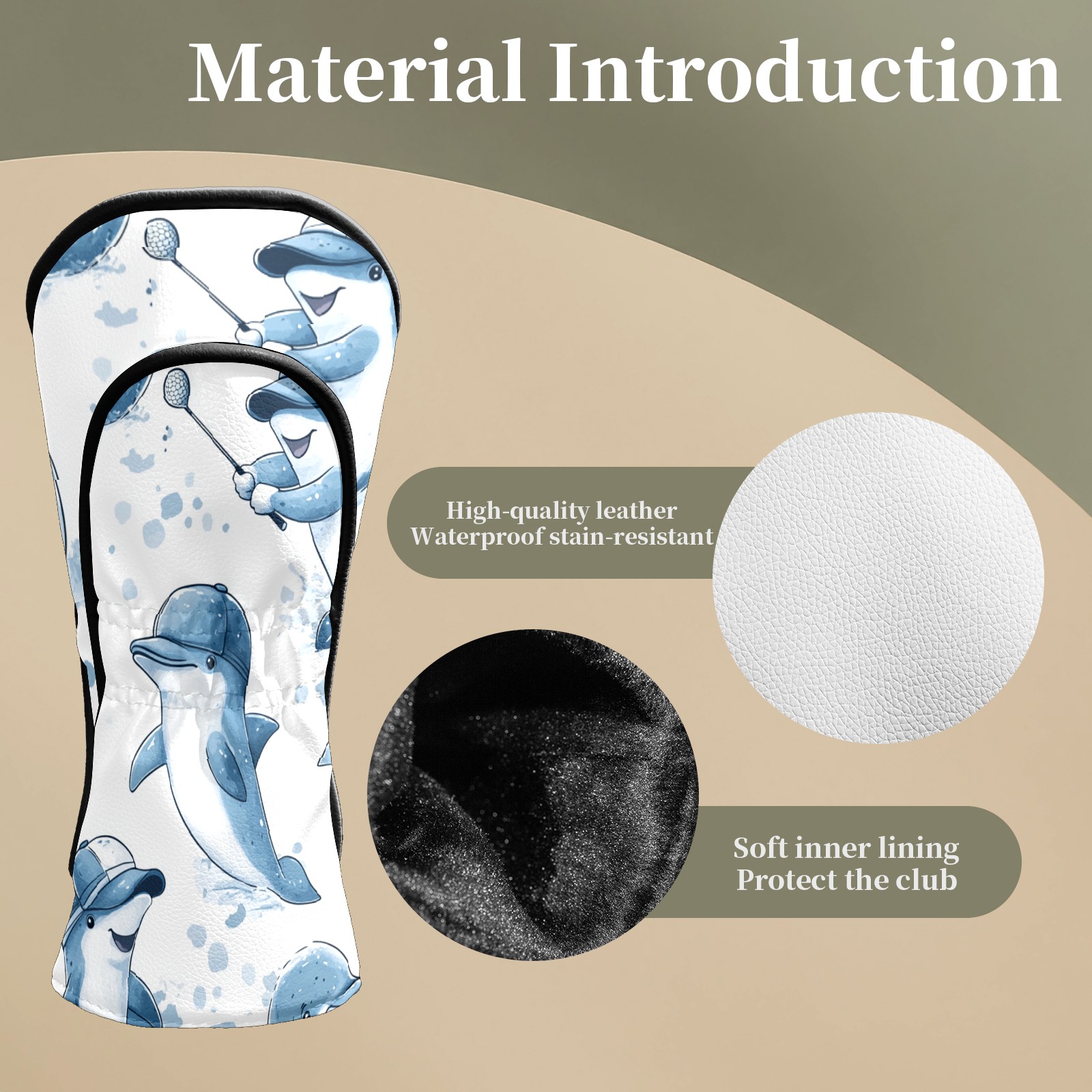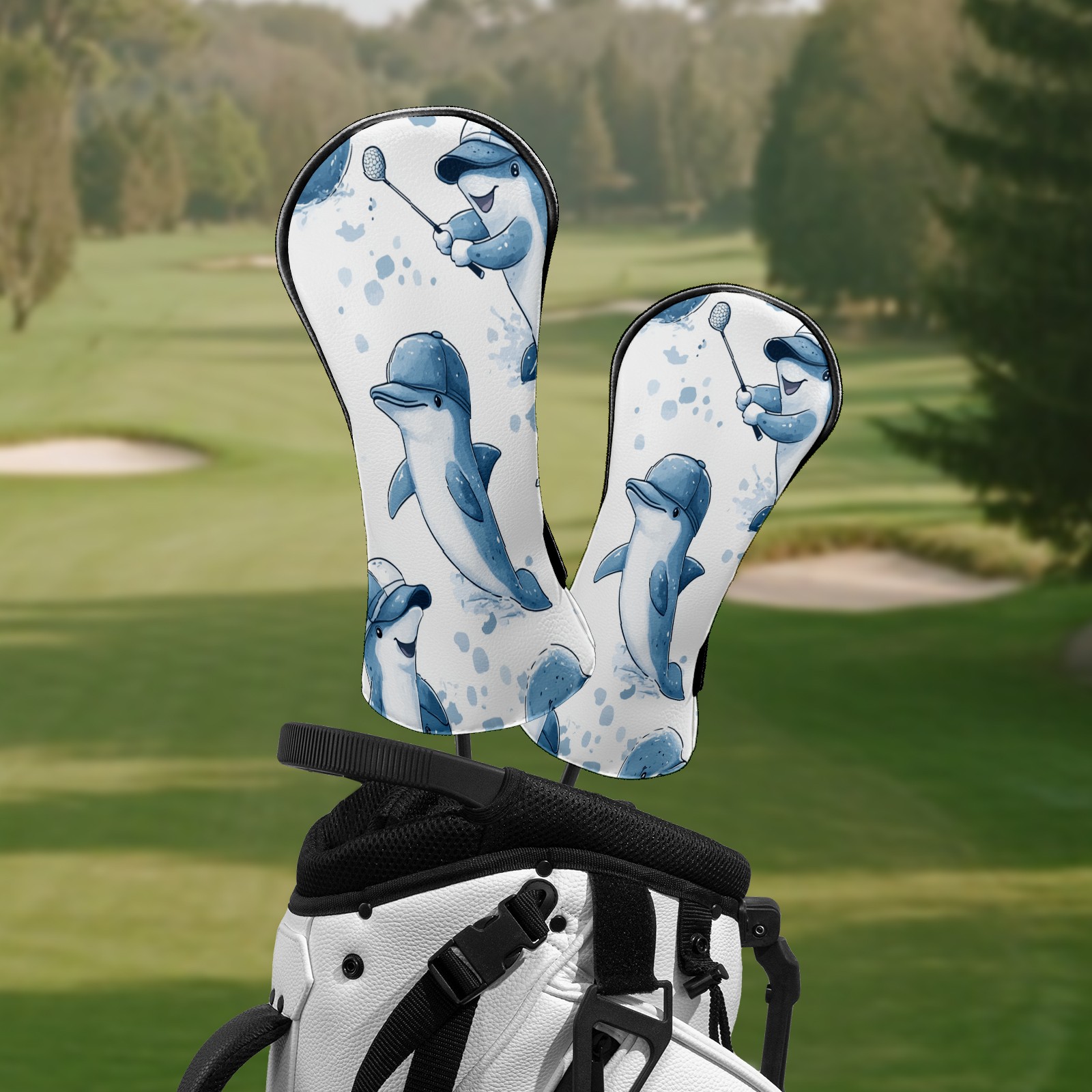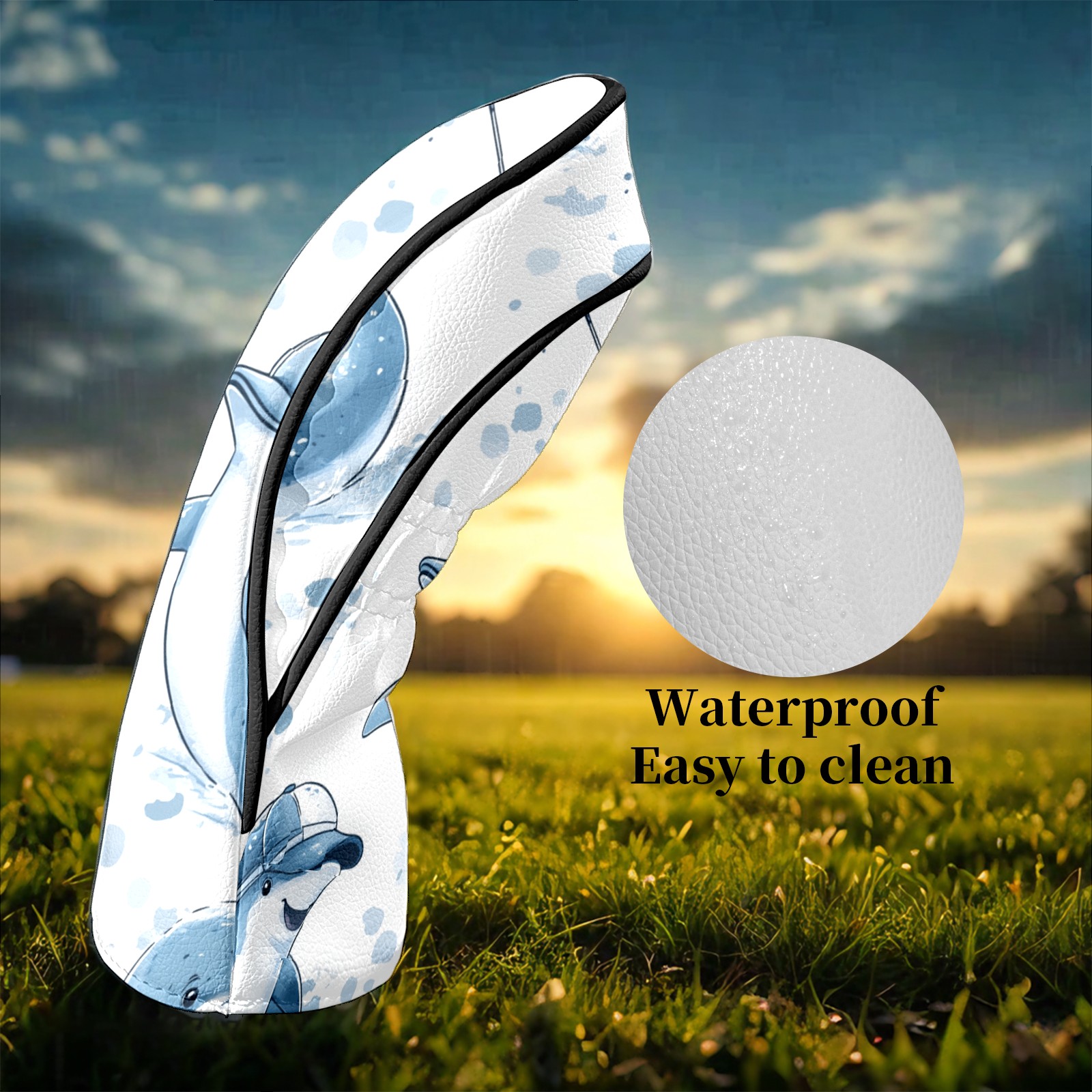 Golf Club Covers Fun Dolphins Driver Head cover, Leather Golf Club Head Covers for Driver Fairway Woods Waterproof Golf Headcovers with Anti-Scratch Lining Fits Most Clubs