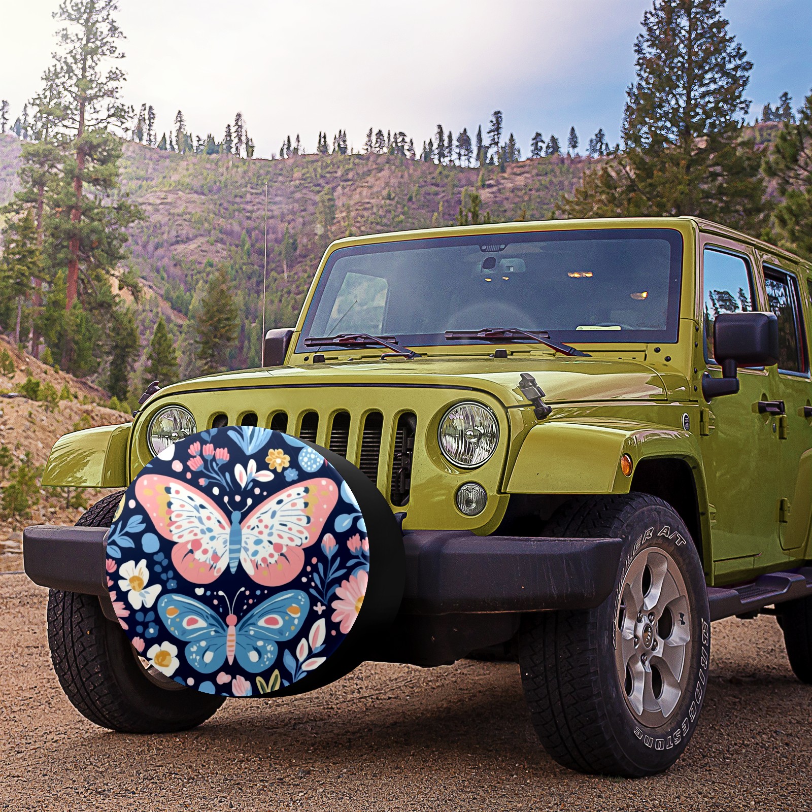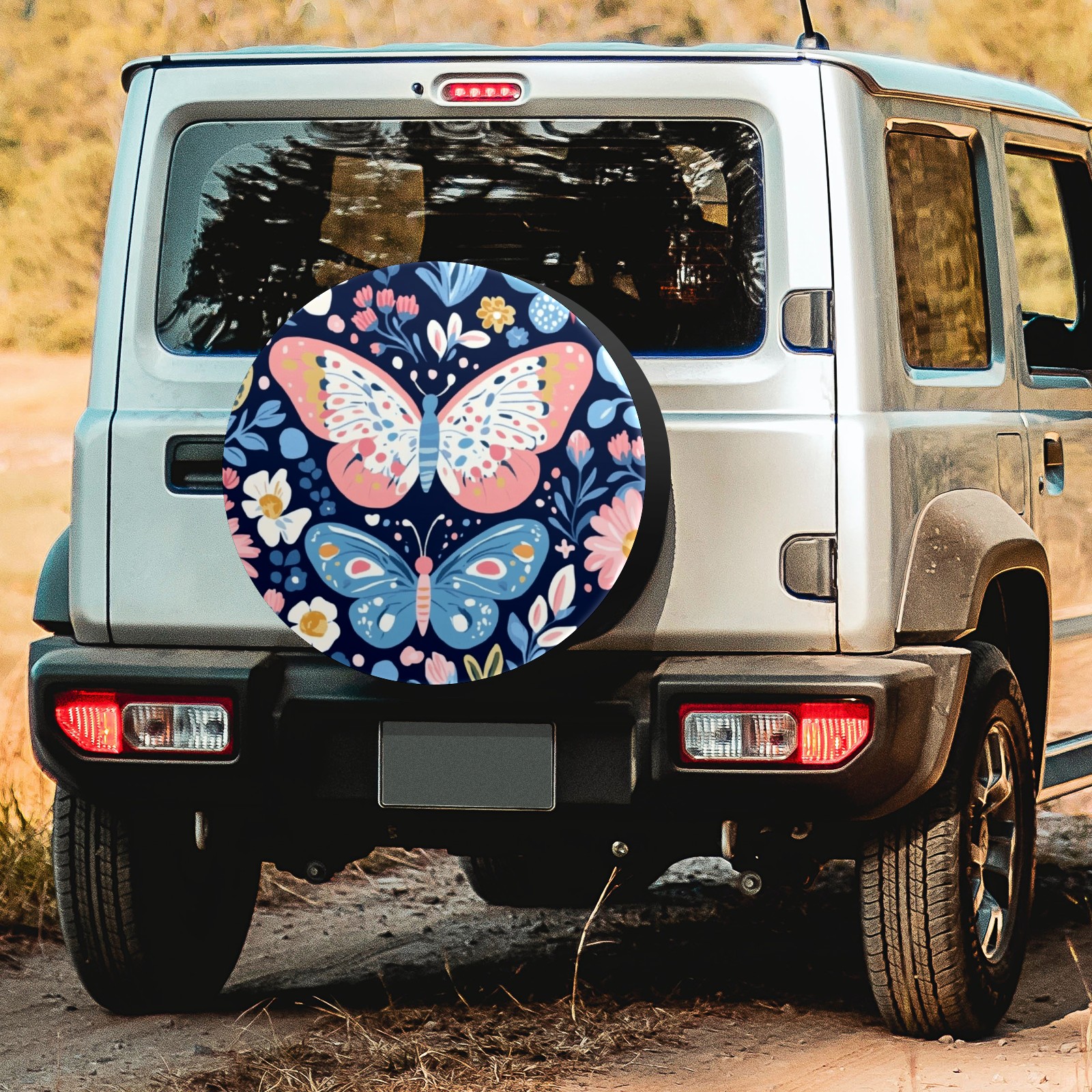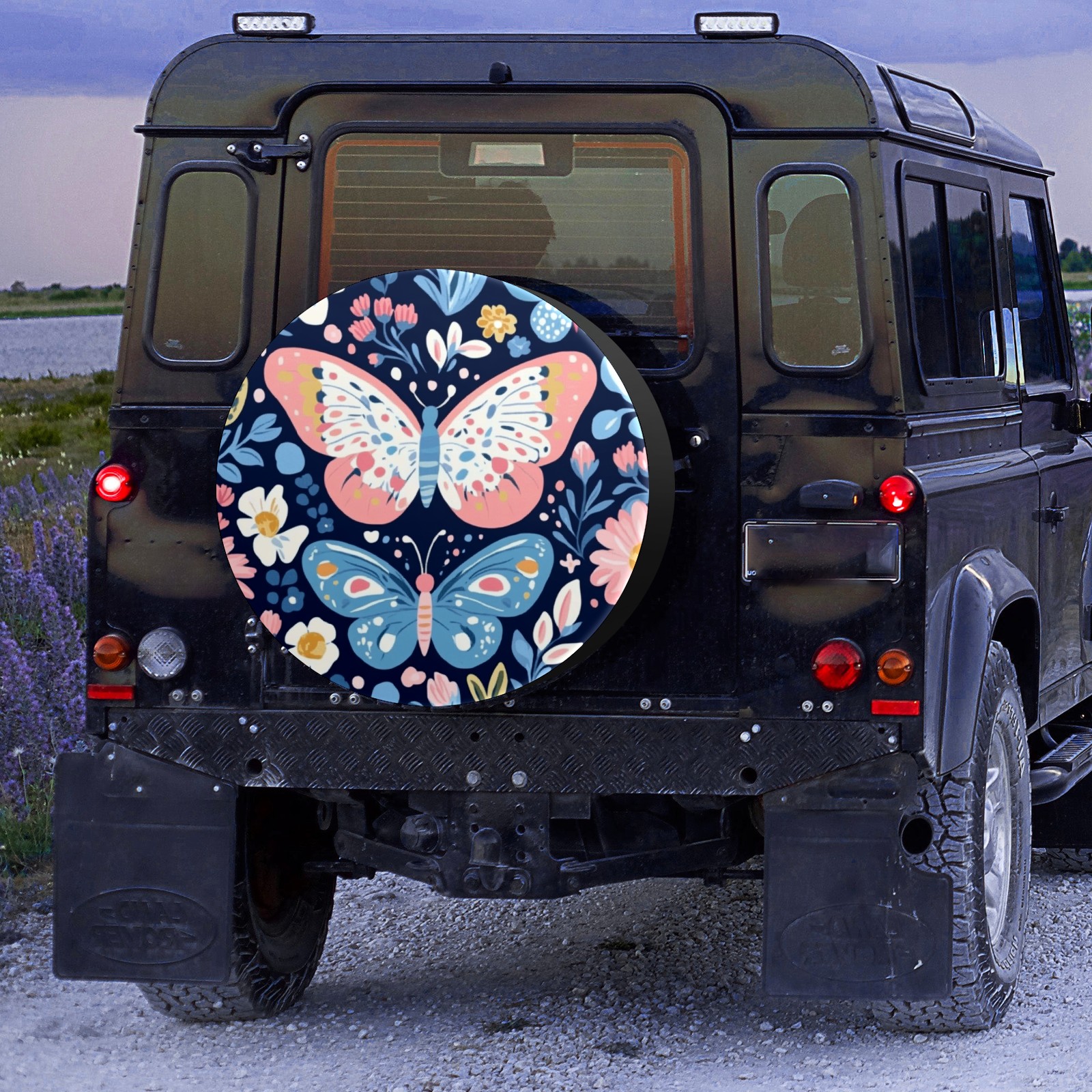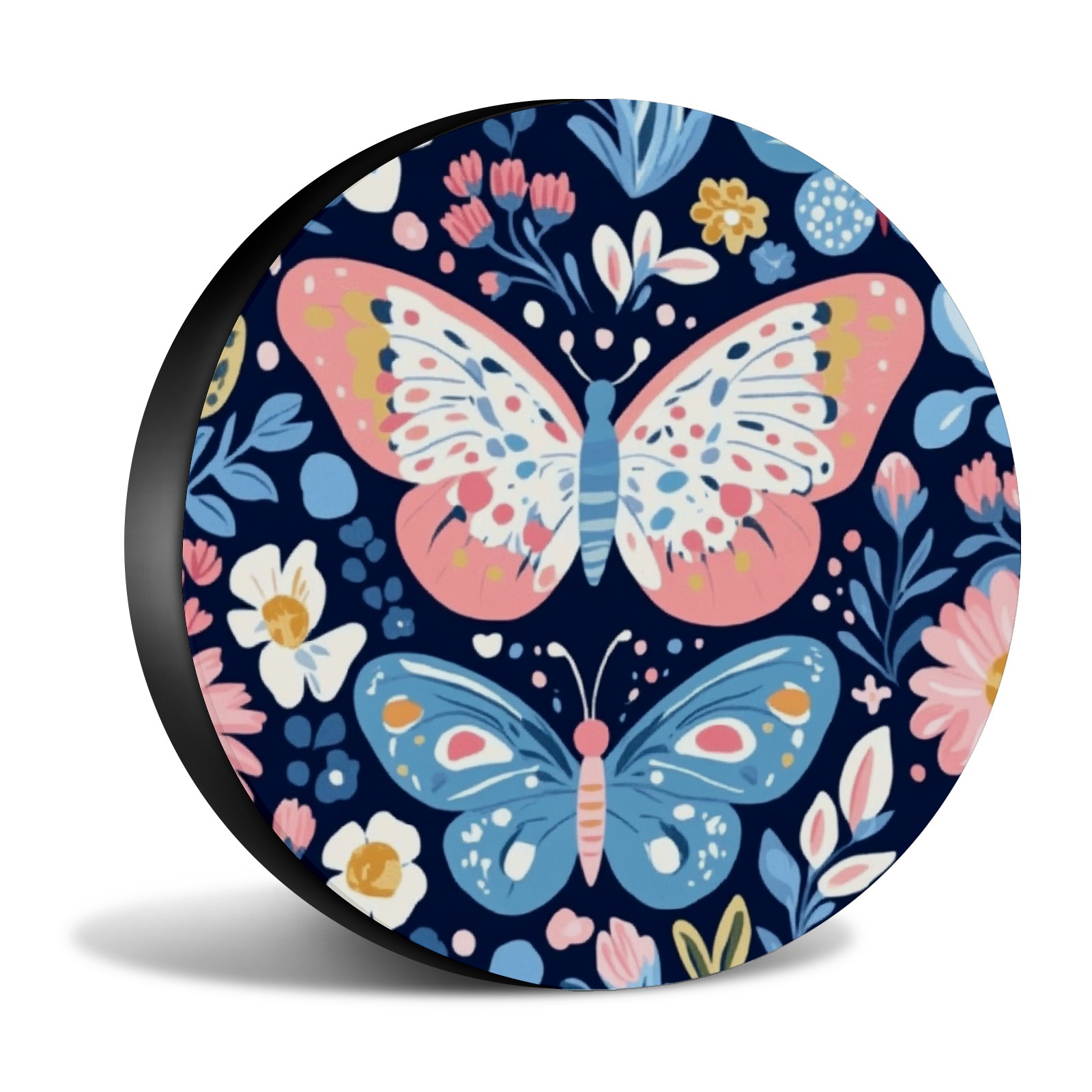 Playful Butterflies And Flowers Spare Tire Cover, Waterproof Wheel Protector Universal Fits for Truck SUV RV Trailer Camper (14 Inch)