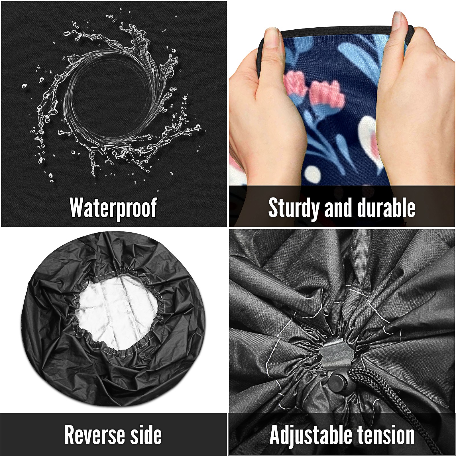 • <p>Keep your spare tire protected and your vehicle looking sharp with our universal Tire Cover. Designed with a sleek single-sided print and classic black sides, this rugged cover is made from high-quality polyester fabric that is fully waterproof. The adjustable nylon rope ensures a secure, custom fit for any tire, helping to maintain a clean and professional appearance for your vehicle.</p>