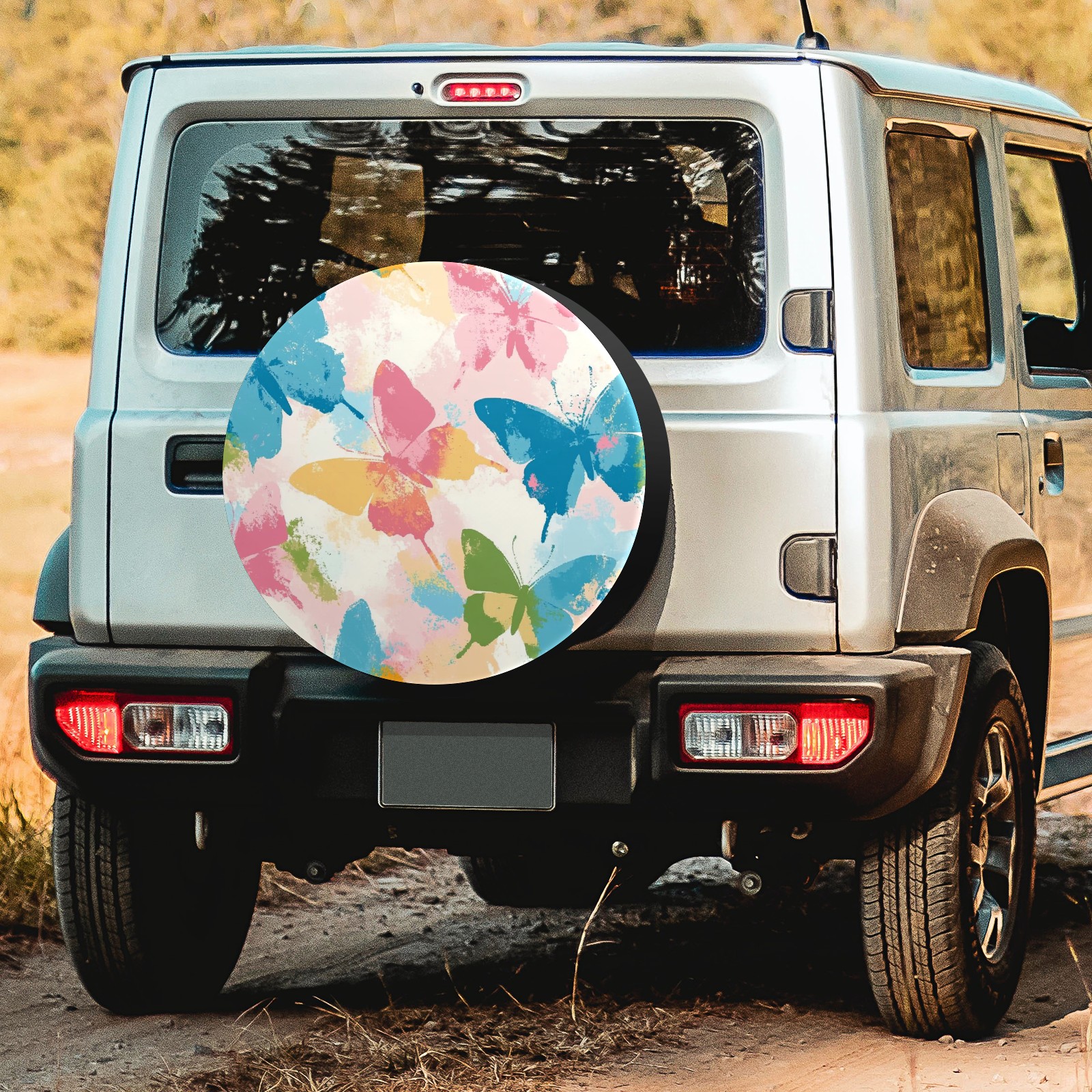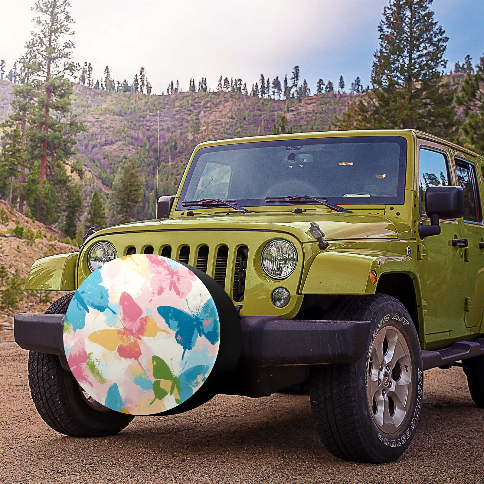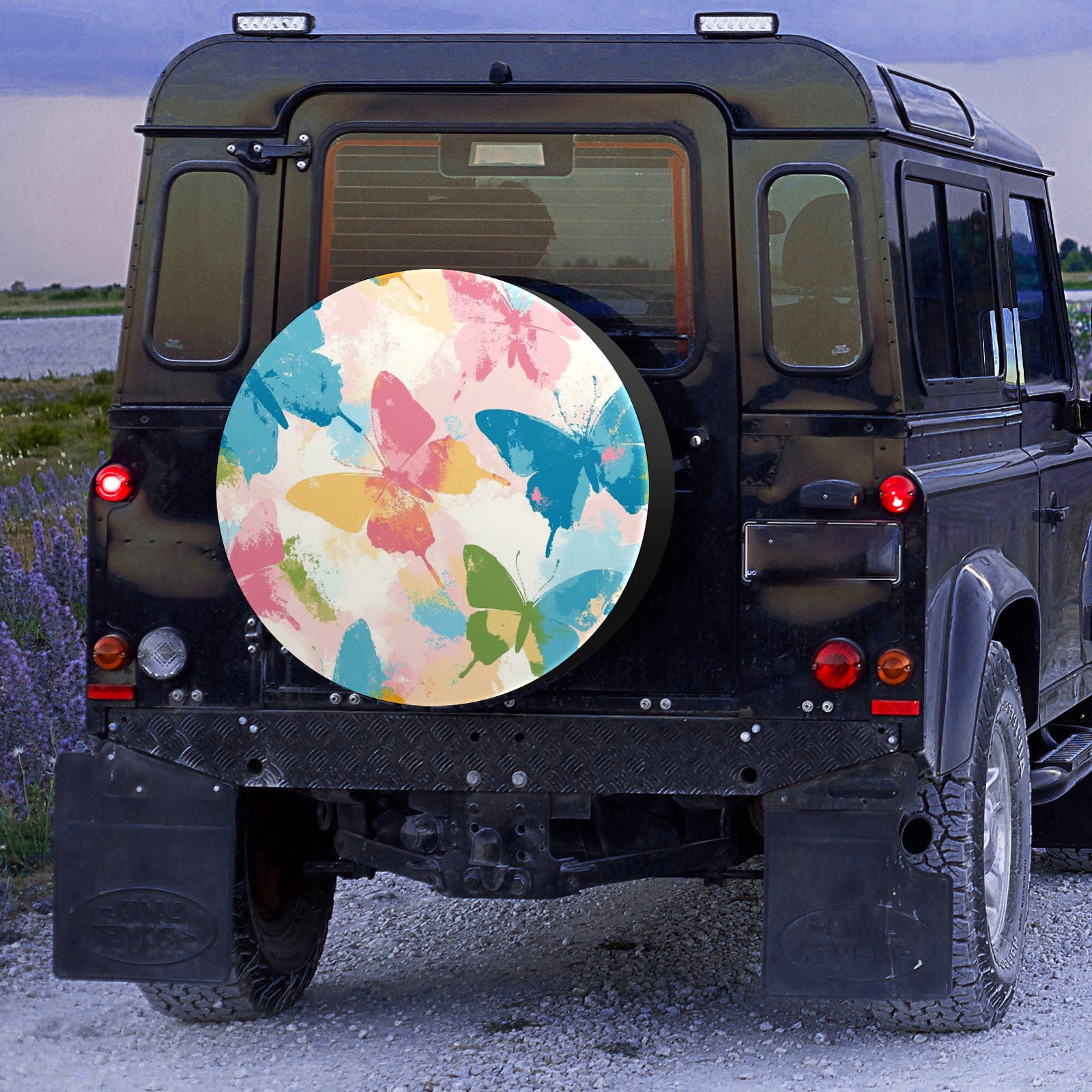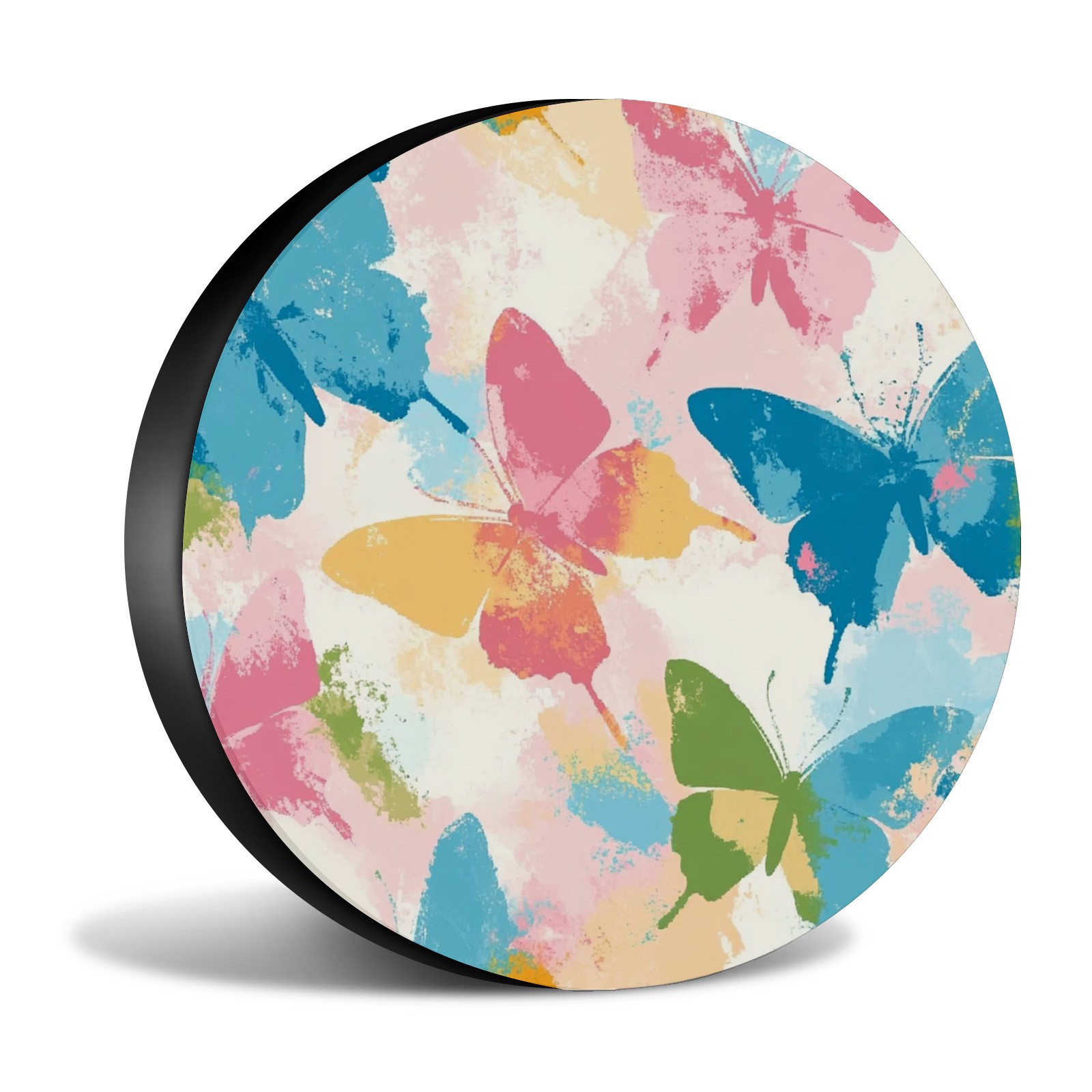 Butterflies In Pastel Colors Spare Tire Cover, Waterproof Wheel Protector Universal Fits for Truck SUV RV Trailer Camper (14 Inch)