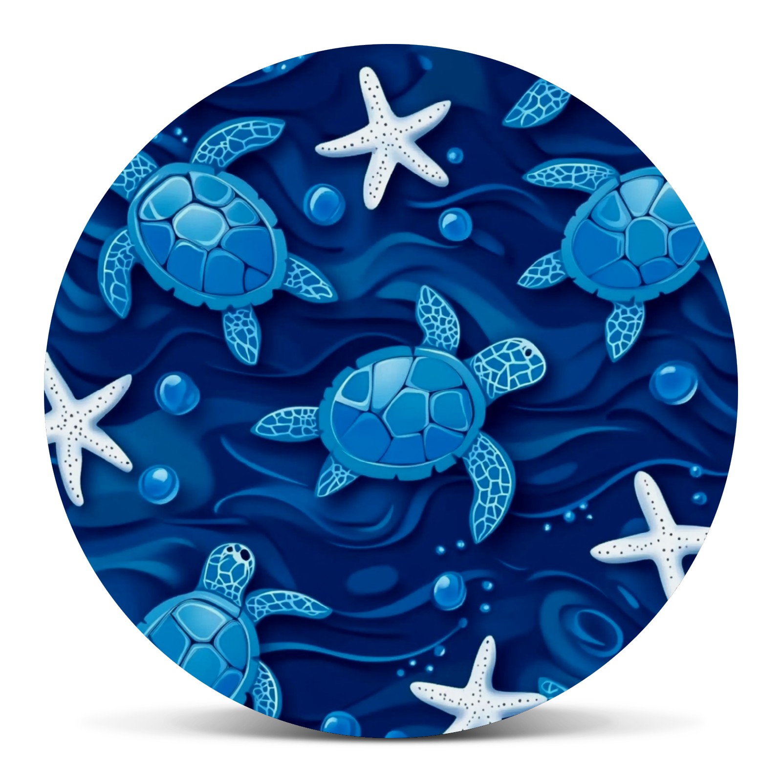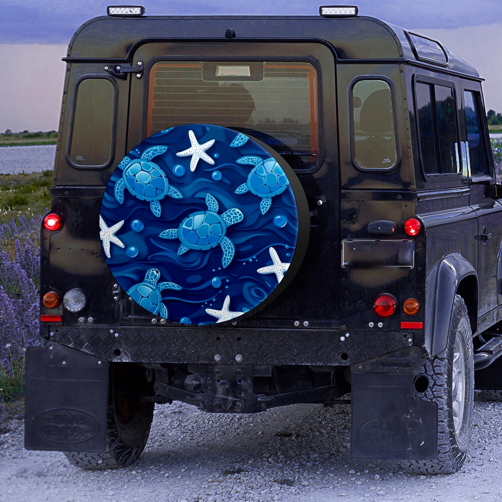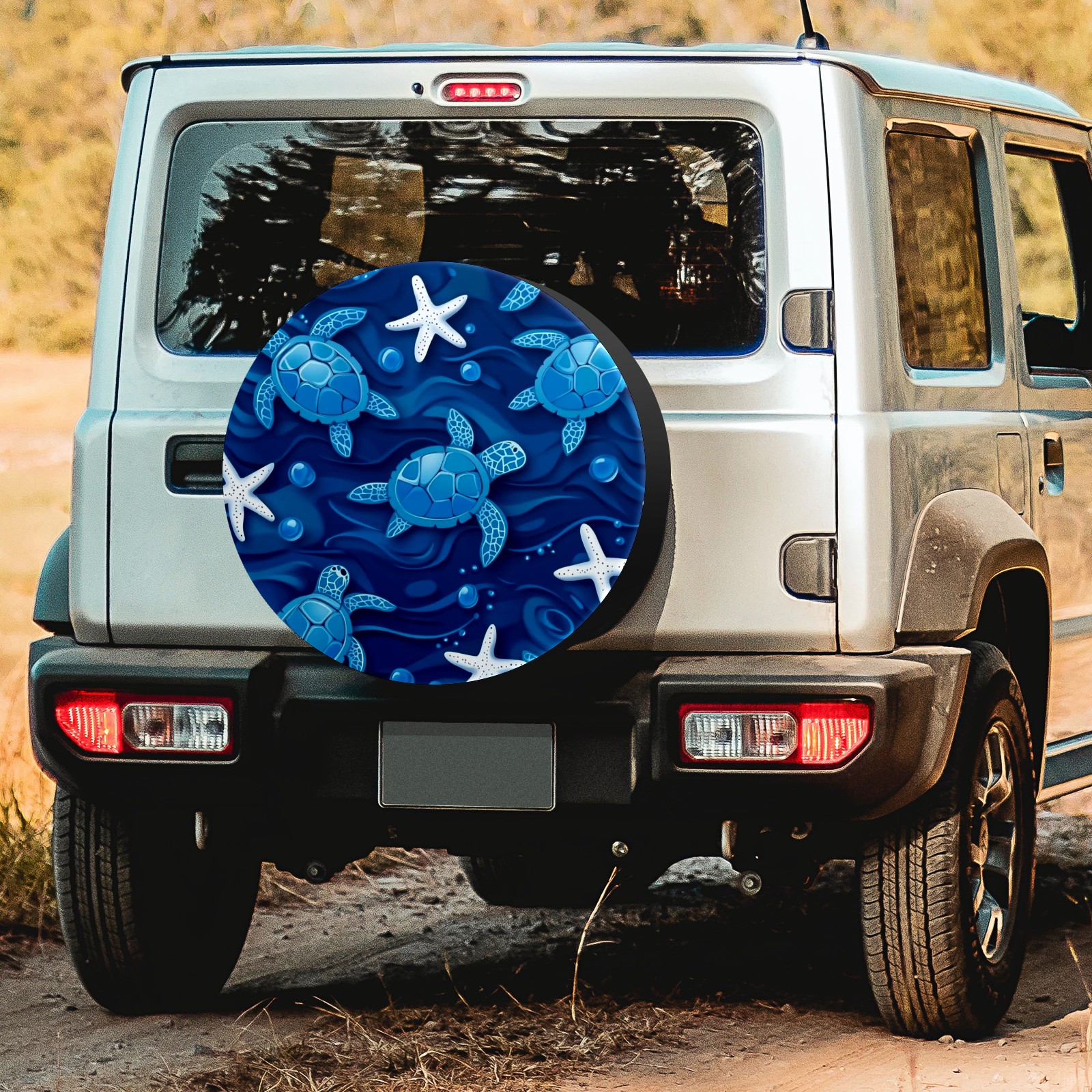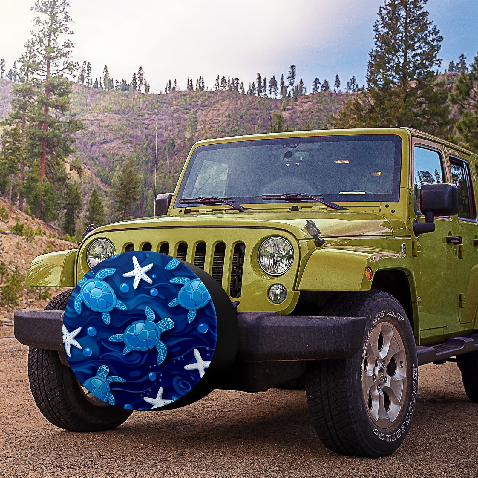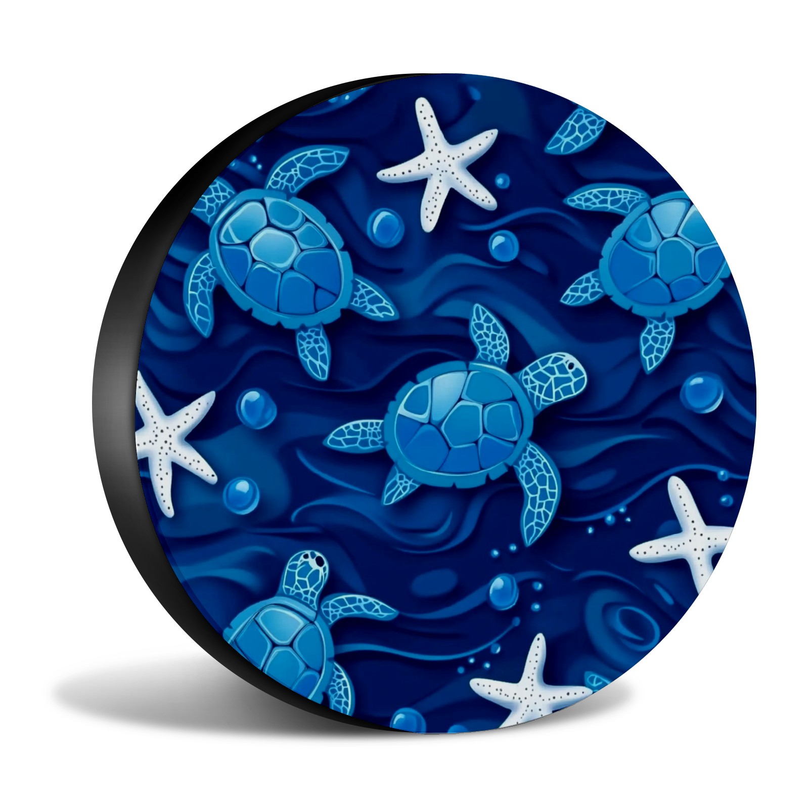 Blue Sea Turtles And White Starfish Spare Tire Cover, Waterproof Wheel Protector Universal Fits for Truck SUV RV Trailer Camper (14 Inch)