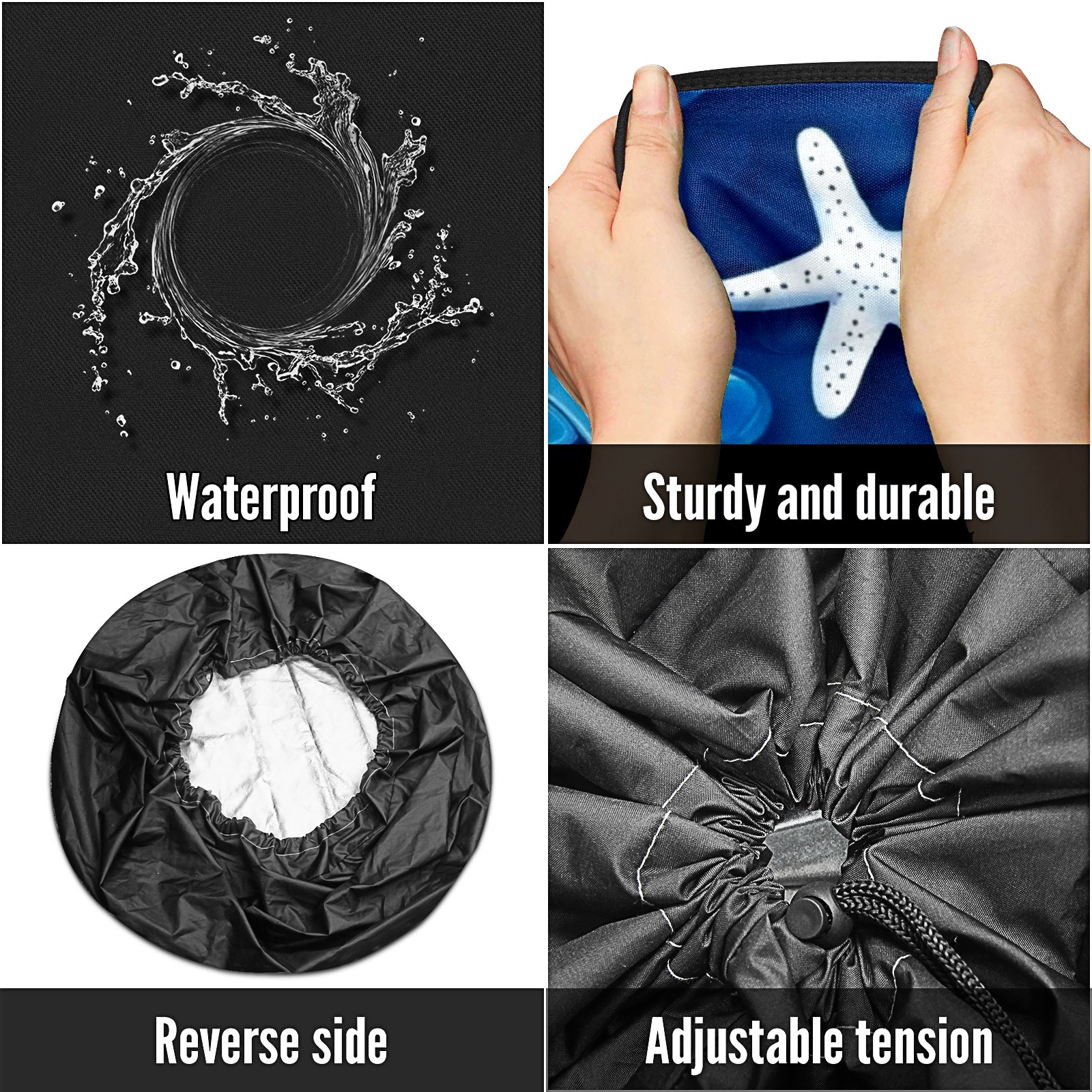 • <p>Keep your spare tire protected and your vehicle looking sharp with our universal Tire Cover. Designed with a sleek single-sided print and classic black sides, this rugged cover is made from high-quality polyester fabric that is fully waterproof. The adjustable nylon rope ensures a secure, custom fit for any tire, helping to maintain a clean and professional appearance for your vehicle.</p>