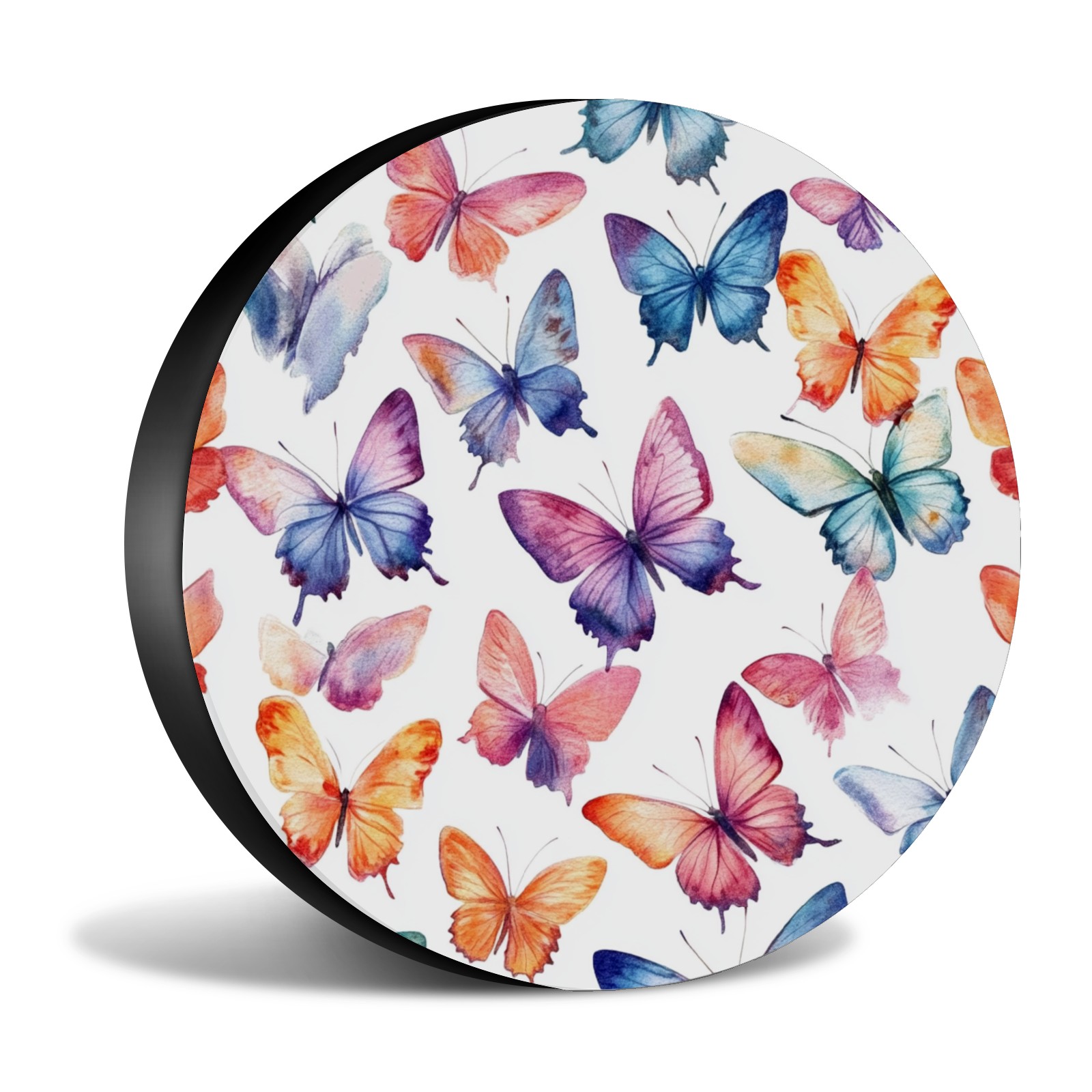 Colorful Watercolor Butterflies Spare Tire Cover, Waterproof Wheel Protector Universal Fits for Truck SUV RV Trailer Camper (14 Inch)