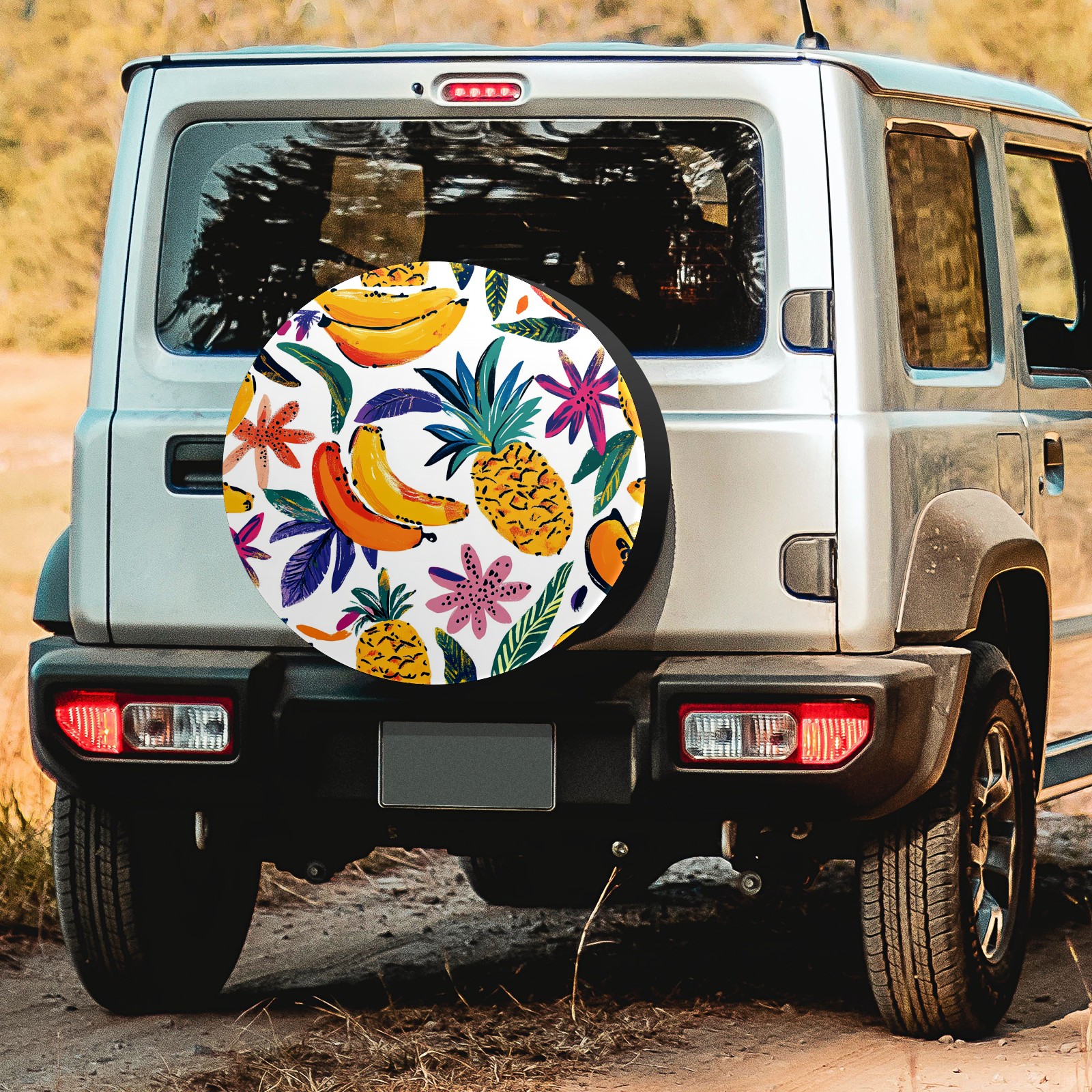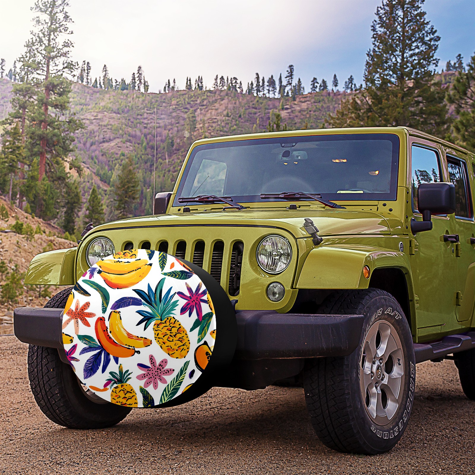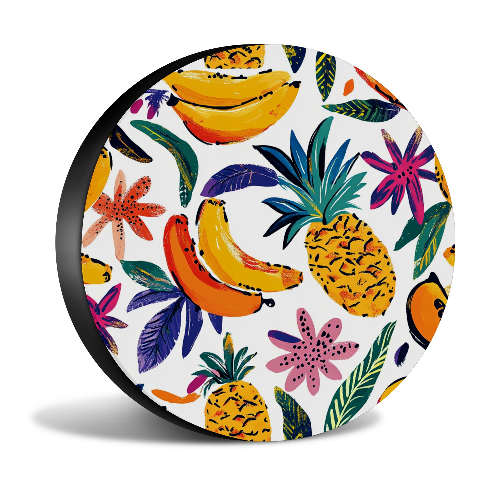Colorful Tropical Pattern Spare Tire Cover, Waterproof Wheel Protector Universal Fits for Truck SUV RV Trailer Camper (14 Inch)