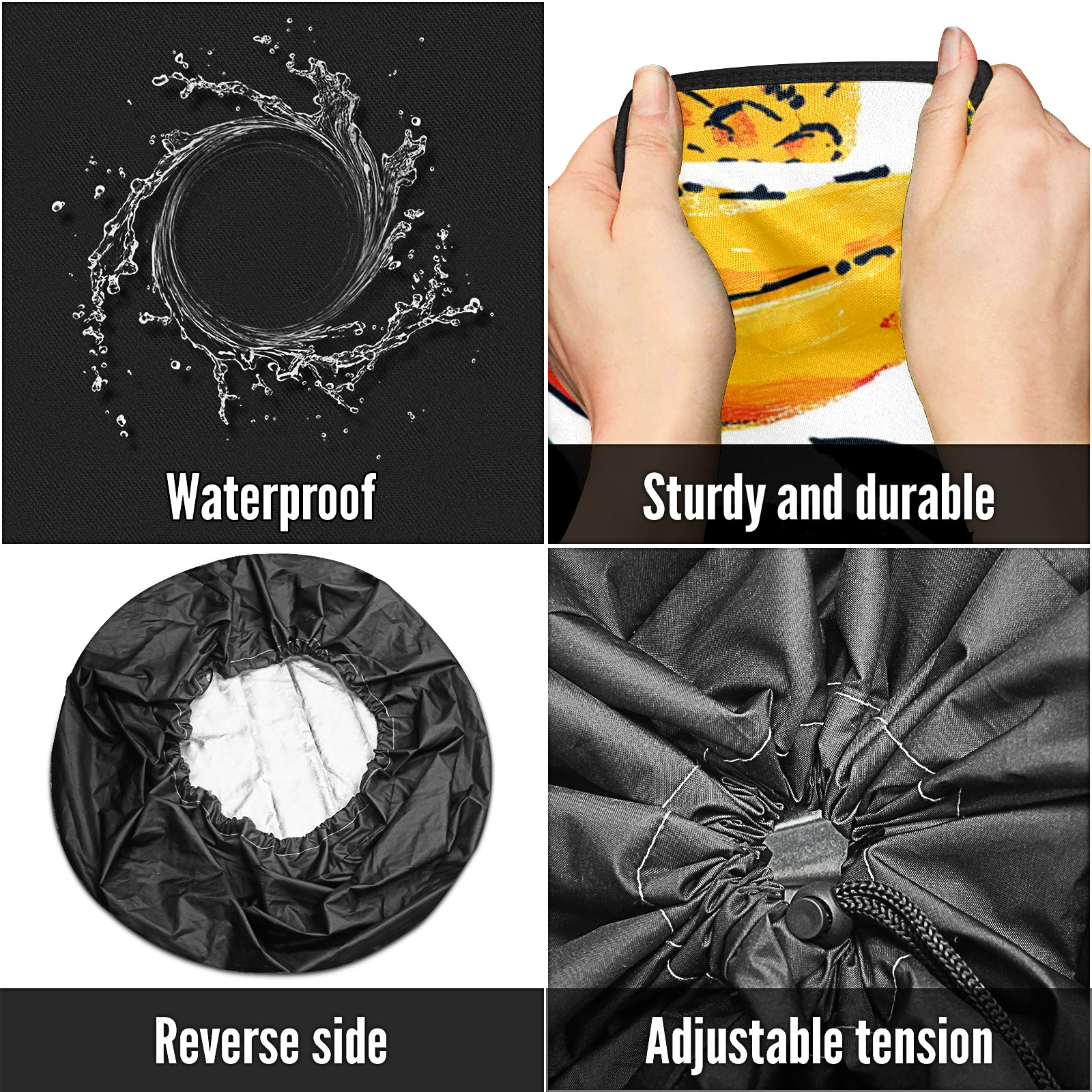 • <p>Keep your spare tire protected and your vehicle looking sharp with our universal Tire Cover. Designed with a sleek single-sided print and classic black sides, this rugged cover is made from high-quality polyester fabric that is fully waterproof. The adjustable nylon rope ensures a secure, custom fit for any tire, helping to maintain a clean and professional appearance for your vehicle.</p>