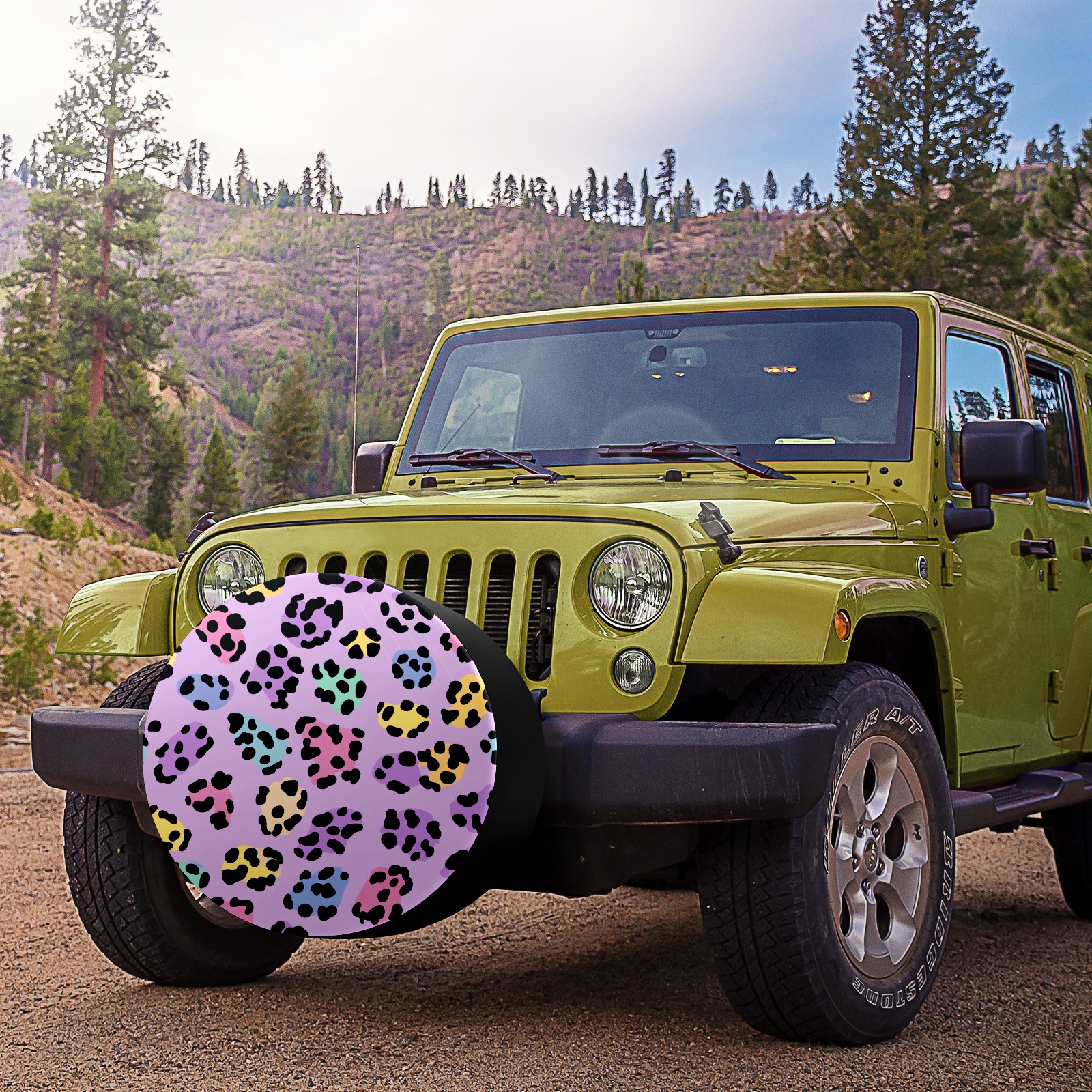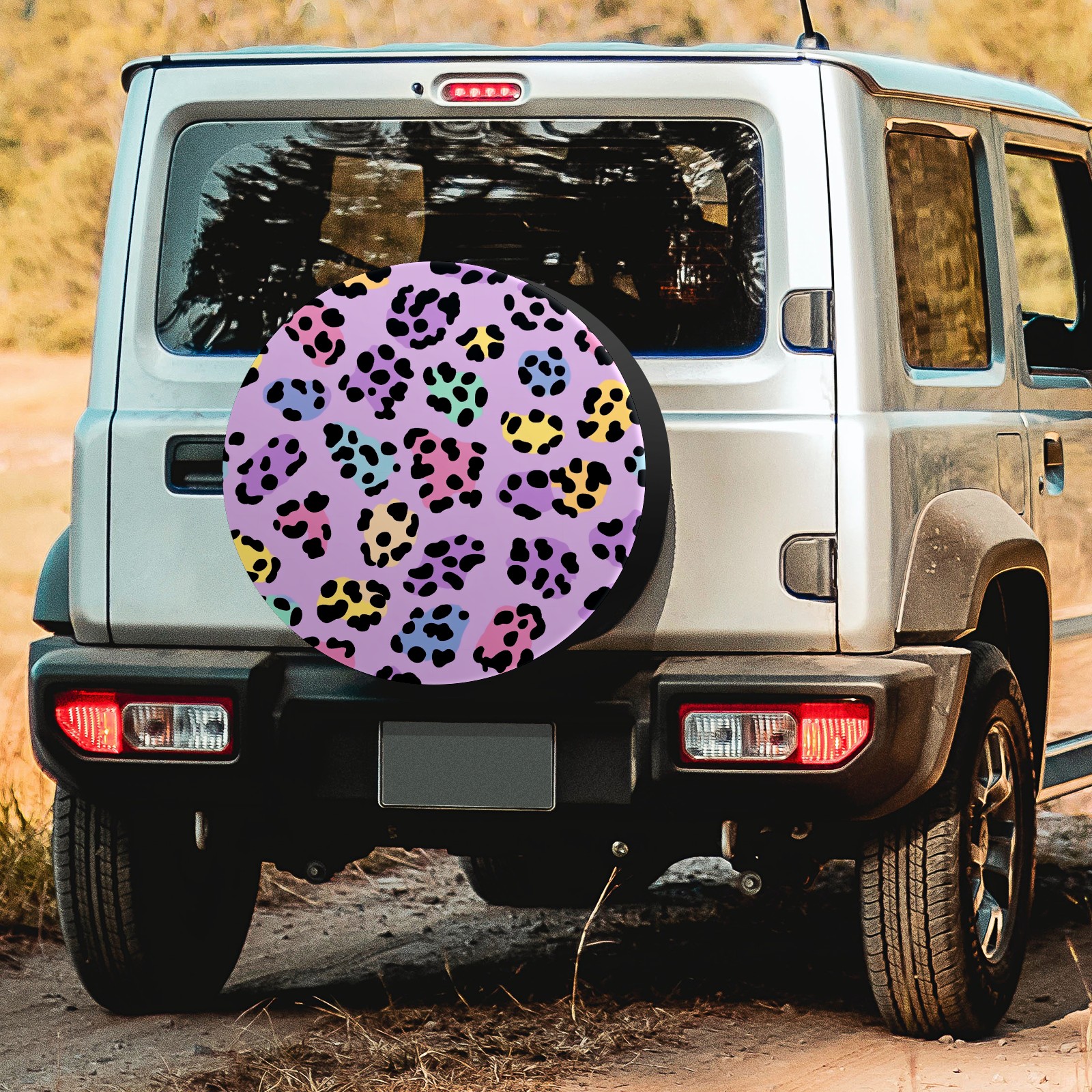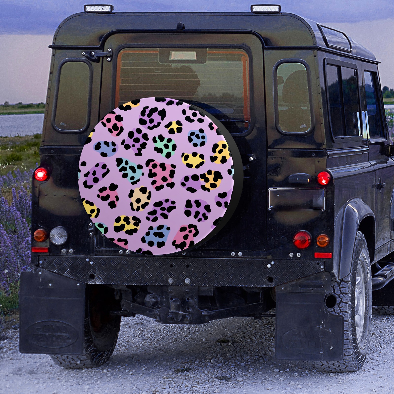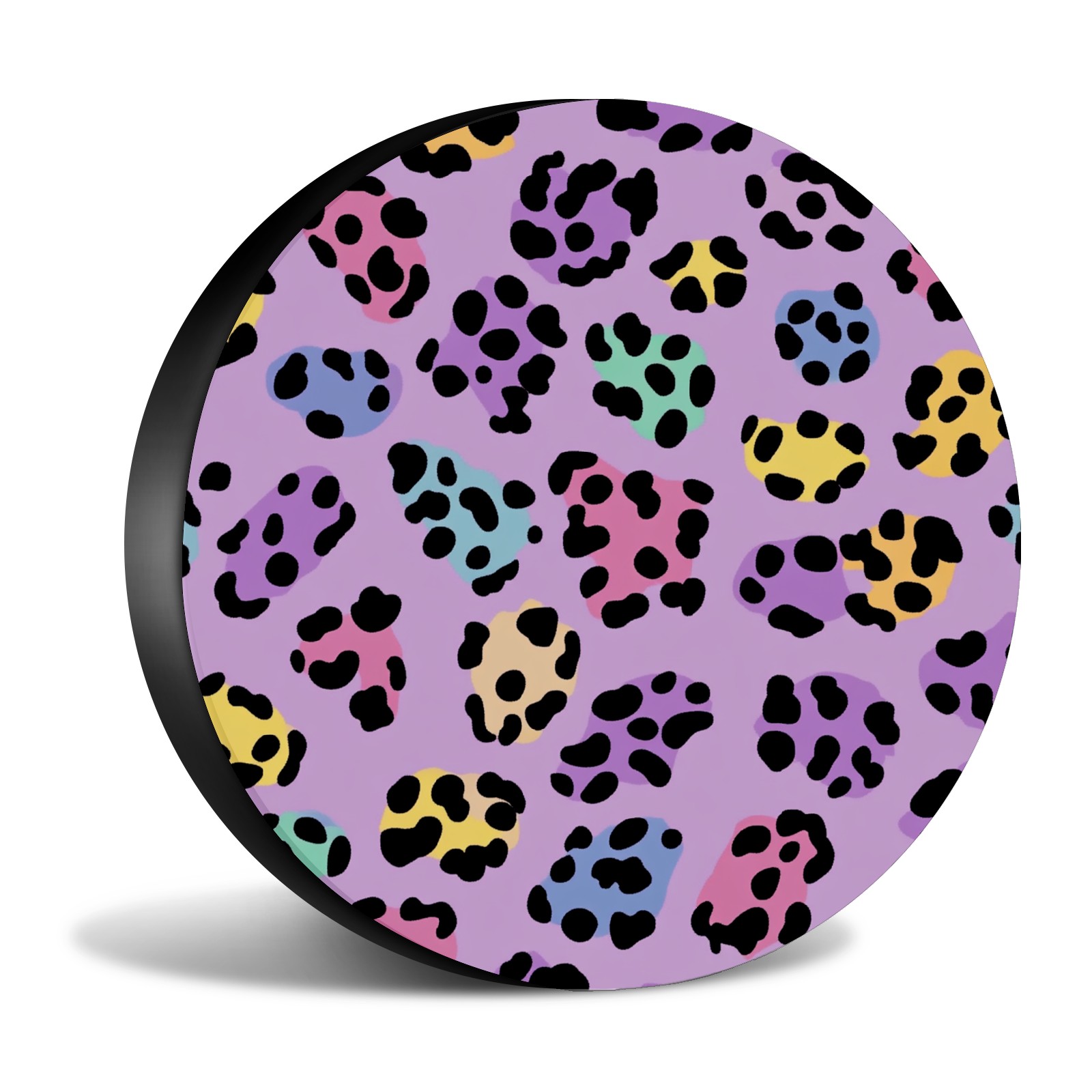Holographic Leopard Print Spare Tire Cover, Waterproof Wheel Protector Universal Fits for Truck SUV RV Trailer Camper (14 Inch)