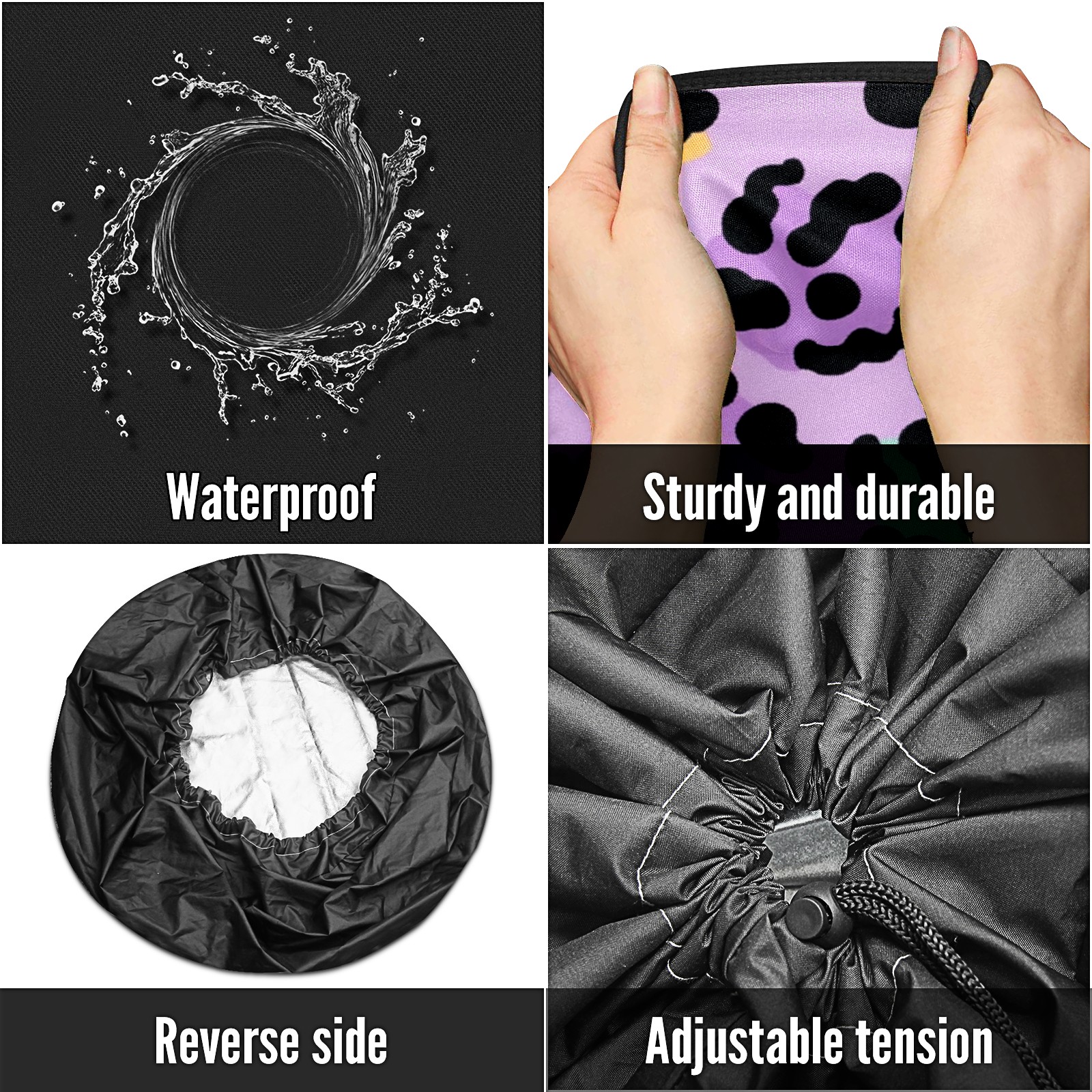 • <p>Keep your spare tire protected and your vehicle looking sharp with our universal Tire Cover. Designed with a sleek single-sided print and classic black sides, this rugged cover is made from high-quality polyester fabric that is fully waterproof. The adjustable nylon rope ensures a secure, custom fit for any tire, helping to maintain a clean and professional appearance for your vehicle.</p>