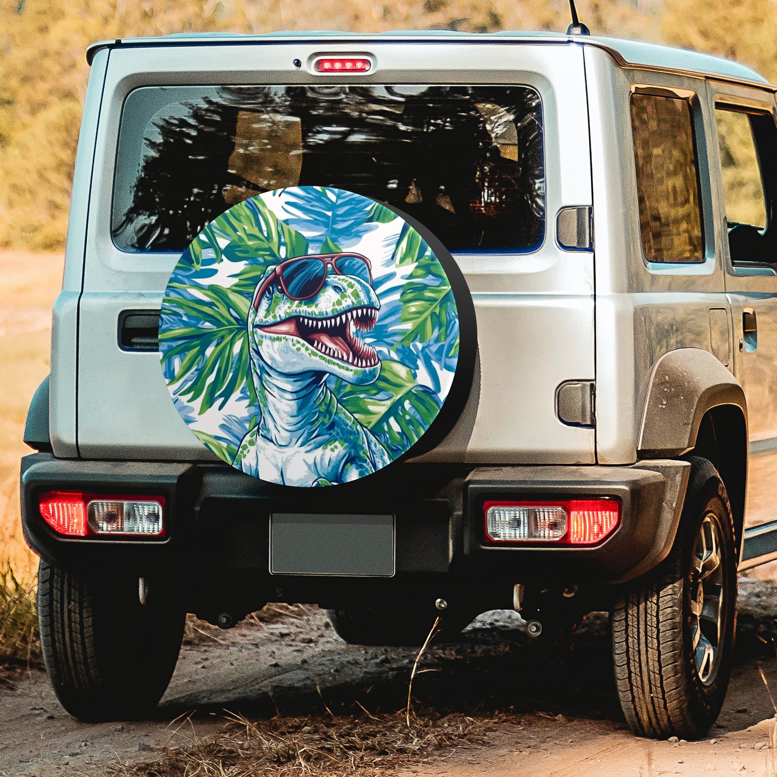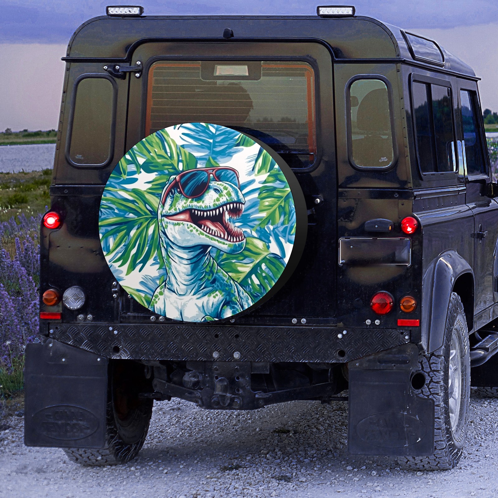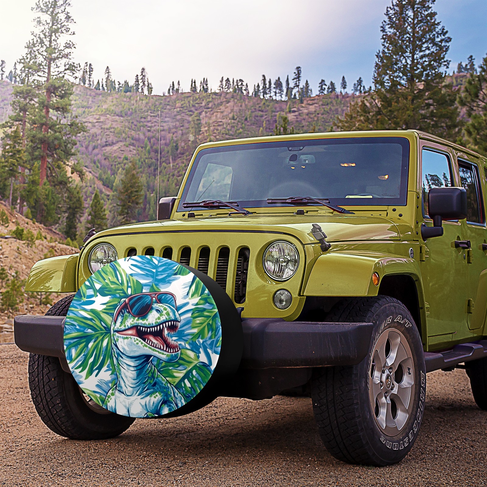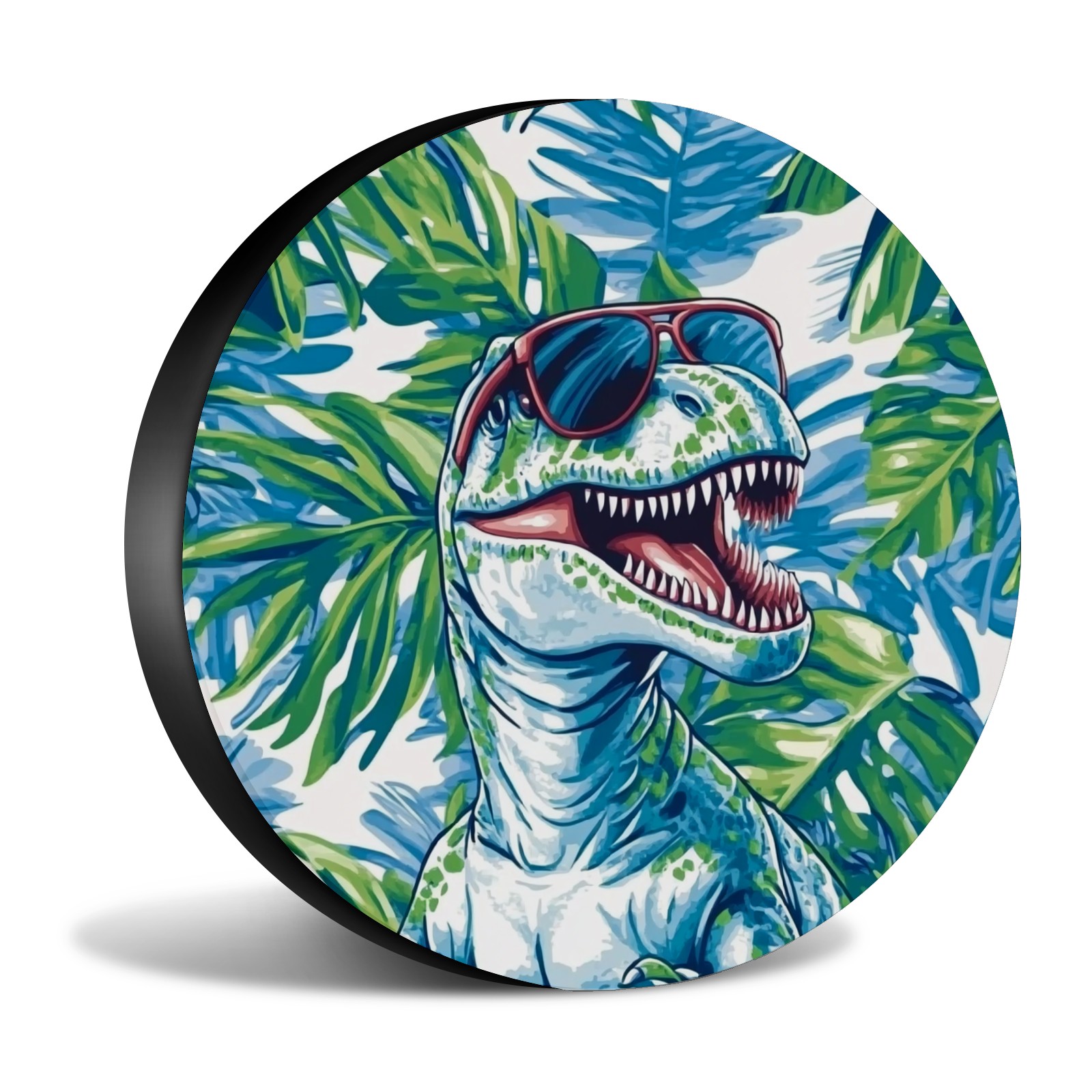 T-rex Wearing Sunglasses Spare Tire Cover, Waterproof Wheel Protector Universal Fits for Truck SUV RV Trailer Camper (14 Inch)