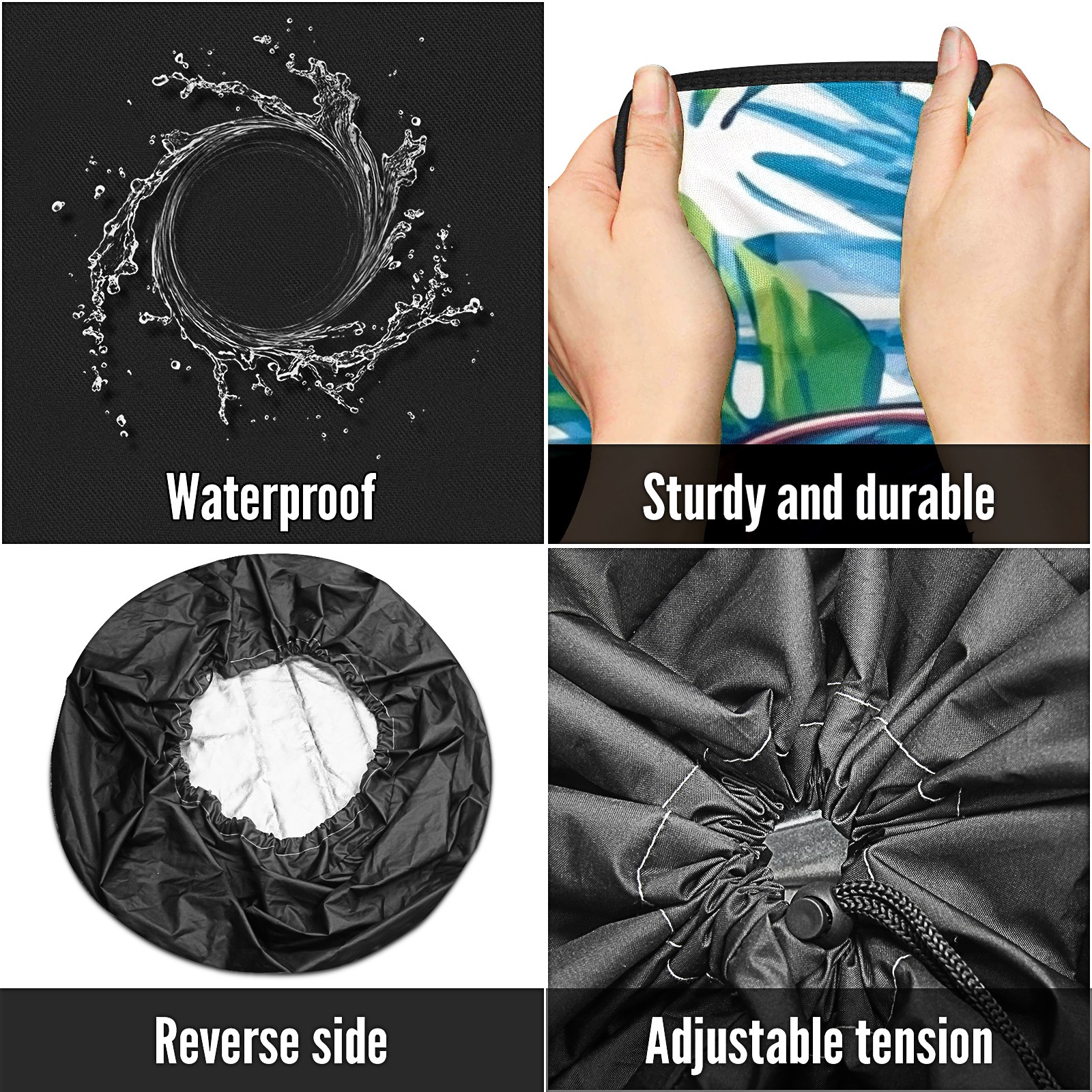 • <p>Keep your spare tire protected and your vehicle looking sharp with our universal Tire Cover. Designed with a sleek single-sided print and classic black sides, this rugged cover is made from high-quality polyester fabric that is fully waterproof. The adjustable nylon rope ensures a secure, custom fit for any tire, helping to maintain a clean and professional appearance for your vehicle.</p>