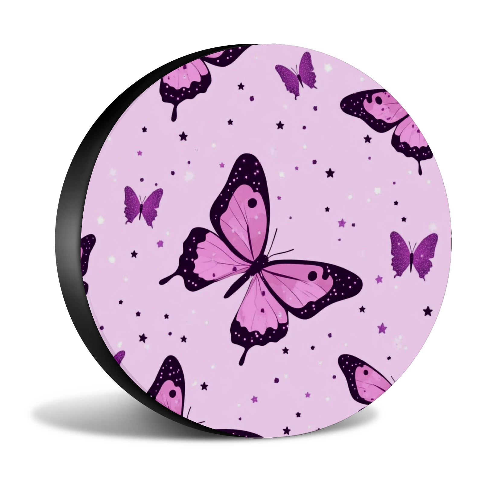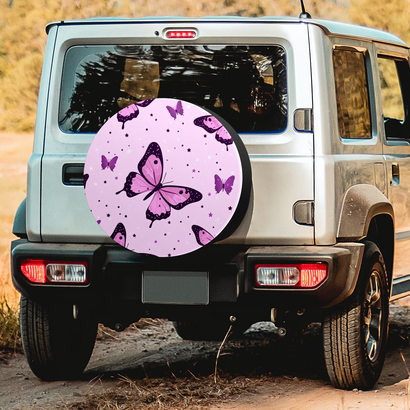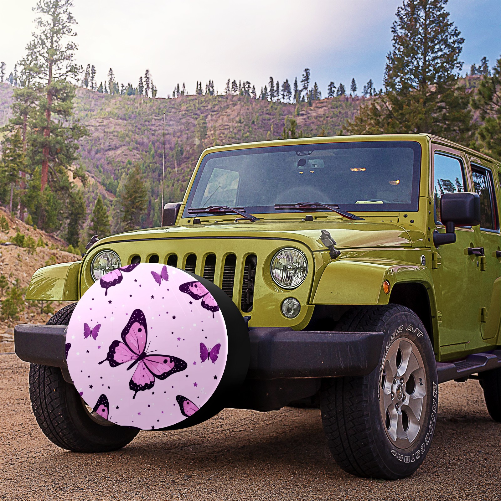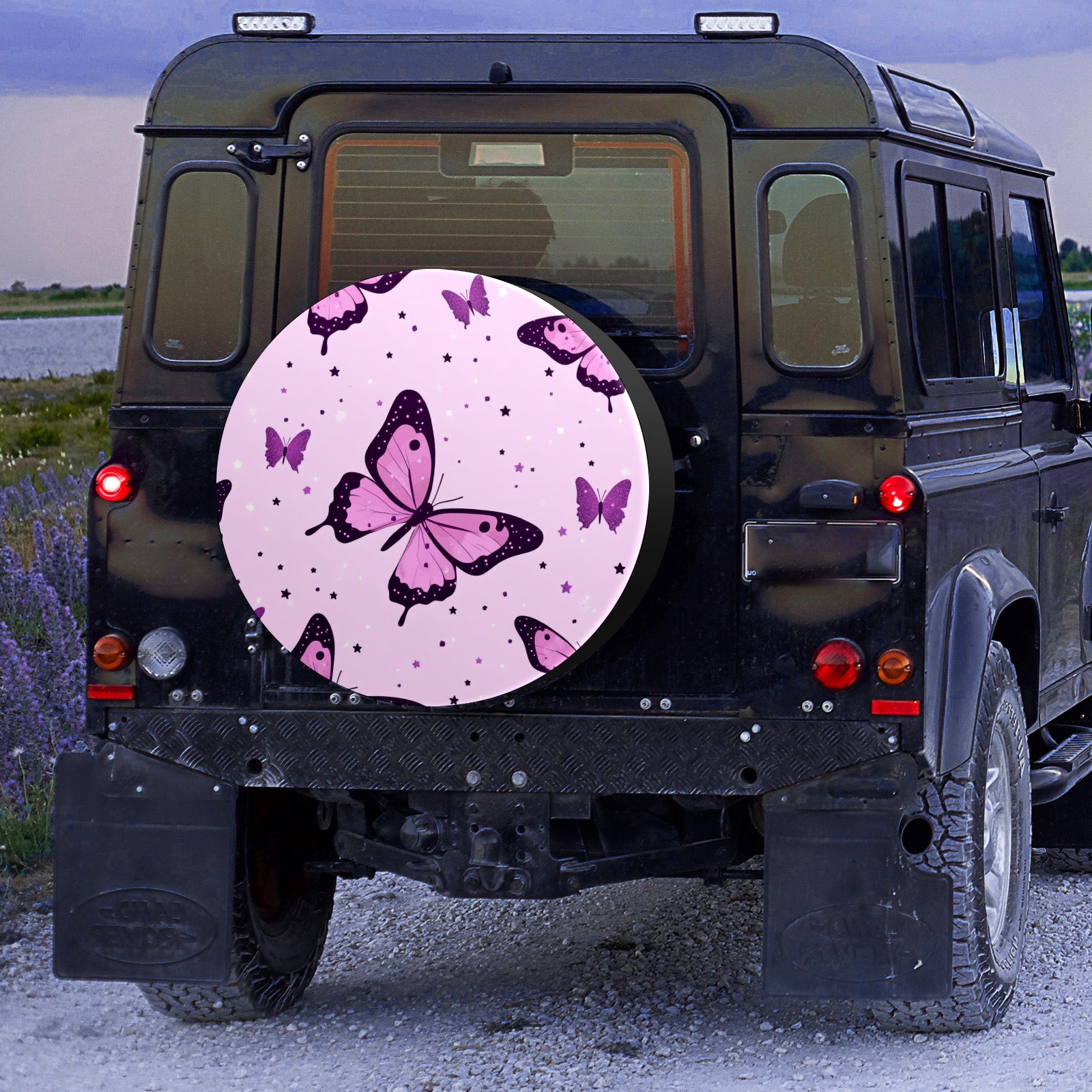 Pink Leopard Butterflies Spare Tire Cover, Waterproof Wheel Protector Universal Fits for Truck SUV RV Trailer Camper (14 Inch)