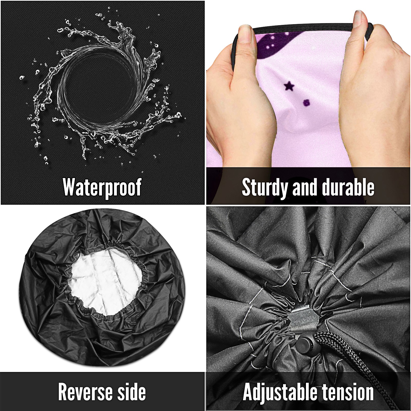 • <p>Keep your spare tire protected and your vehicle looking sharp with our universal Tire Cover. Designed with a sleek single-sided print and classic black sides, this rugged cover is made from high-quality polyester fabric that is fully waterproof. The adjustable nylon rope ensures a secure, custom fit for any tire, helping to maintain a clean and professional appearance for your vehicle.</p>