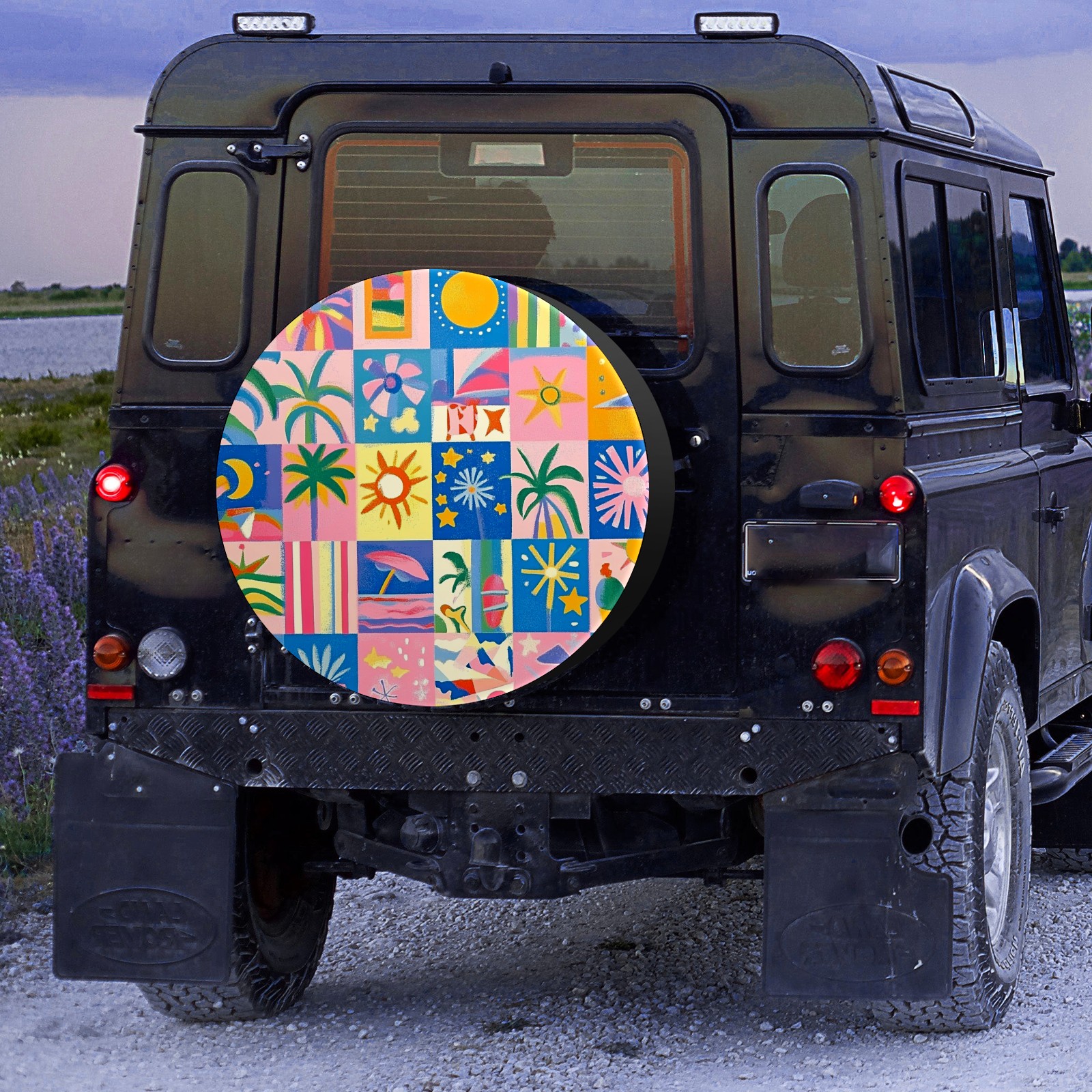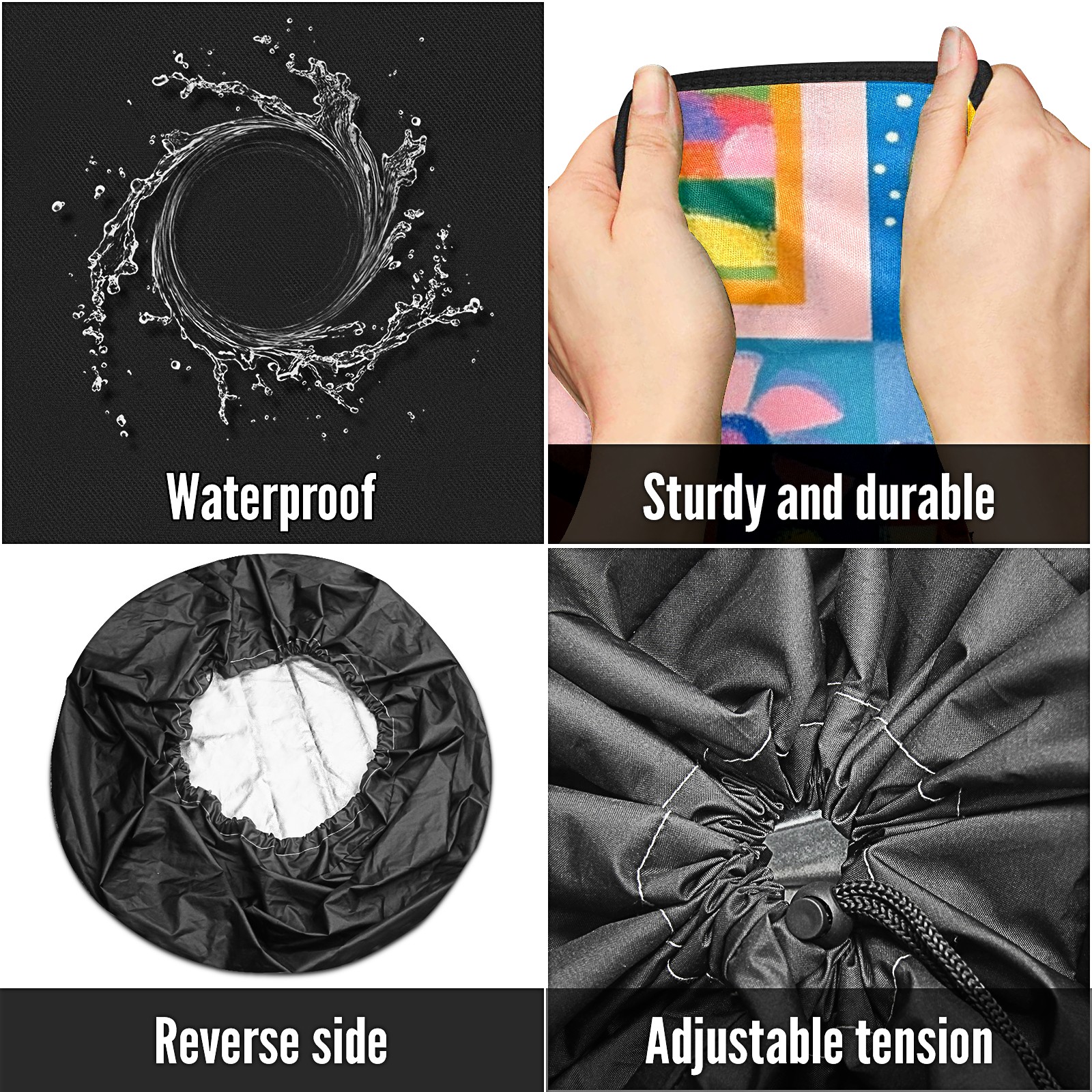 • <p>Keep your spare tire protected and your vehicle looking sharp with our universal Tire Cover. Designed with a sleek single-sided print and classic black sides, this rugged cover is made from high-quality polyester fabric that is fully waterproof. The adjustable nylon rope ensures a secure, custom fit for any tire, helping to maintain a clean and professional appearance for your vehicle.</p>