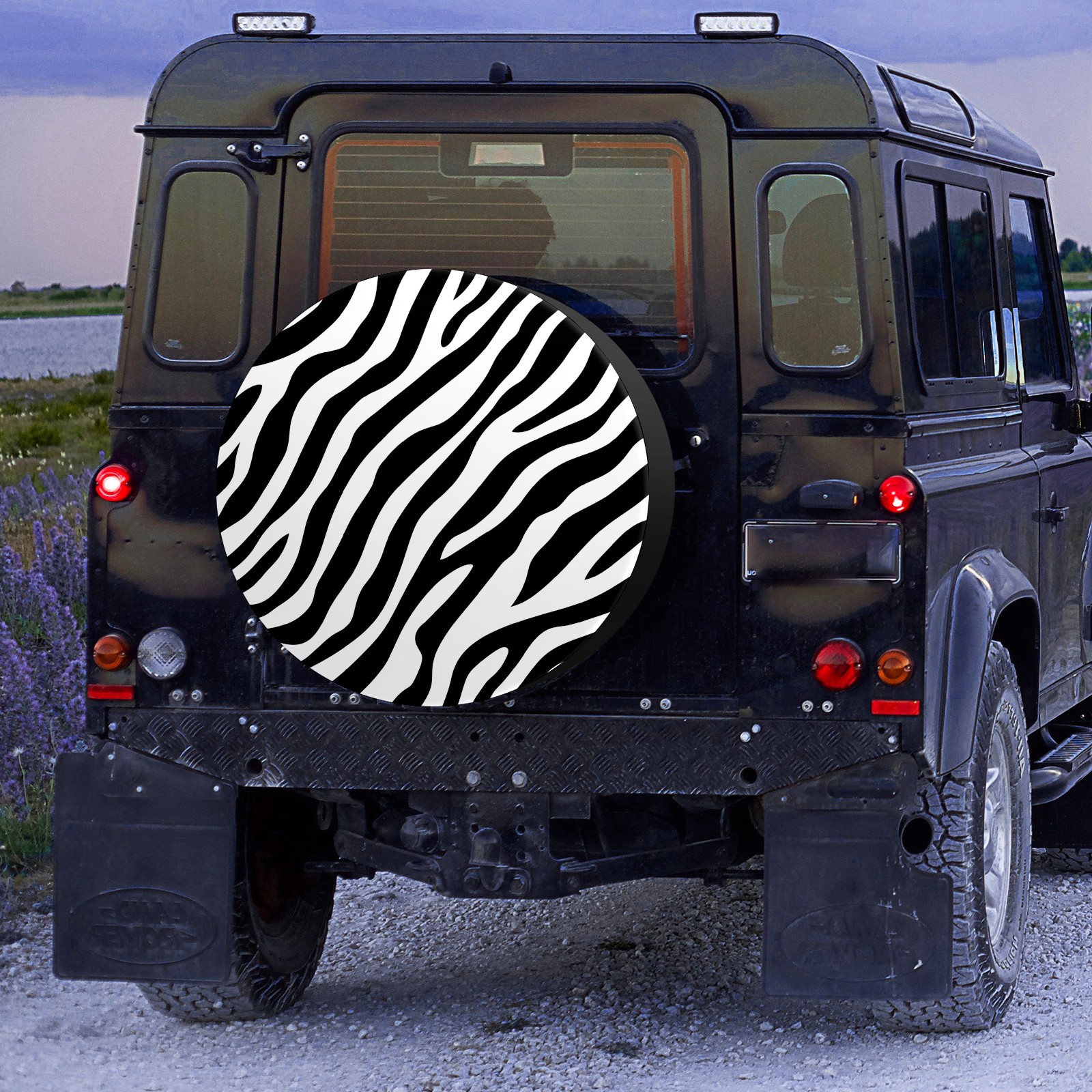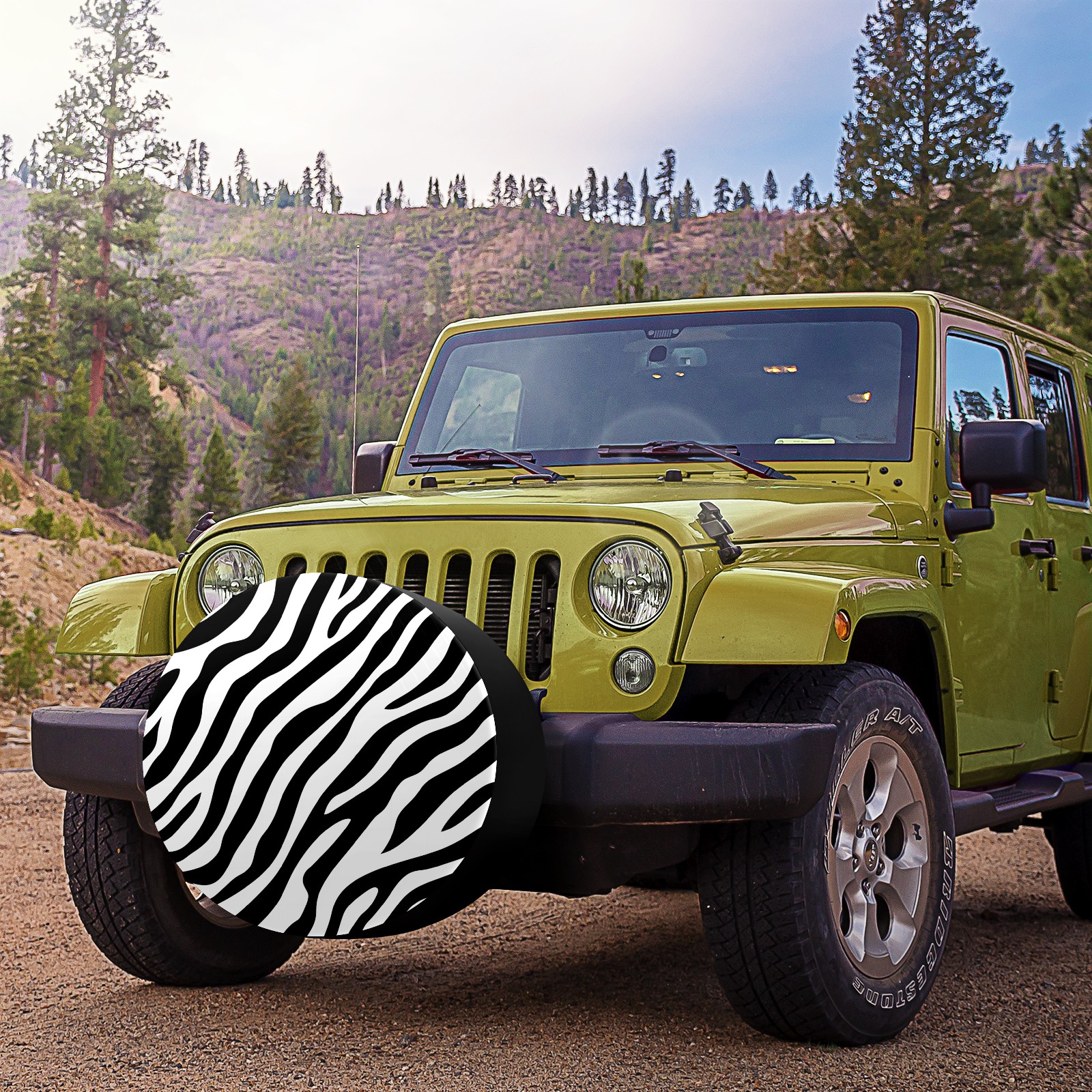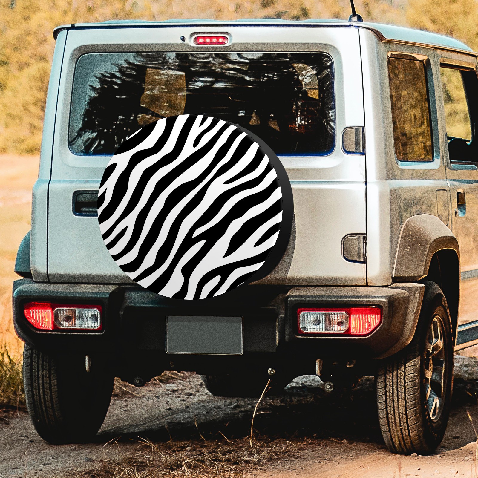 Black And White Zebra Print Spare Tire Cover, Waterproof Wheel Protector Universal Fits for Truck SUV RV Trailer Camper (14 Inch)