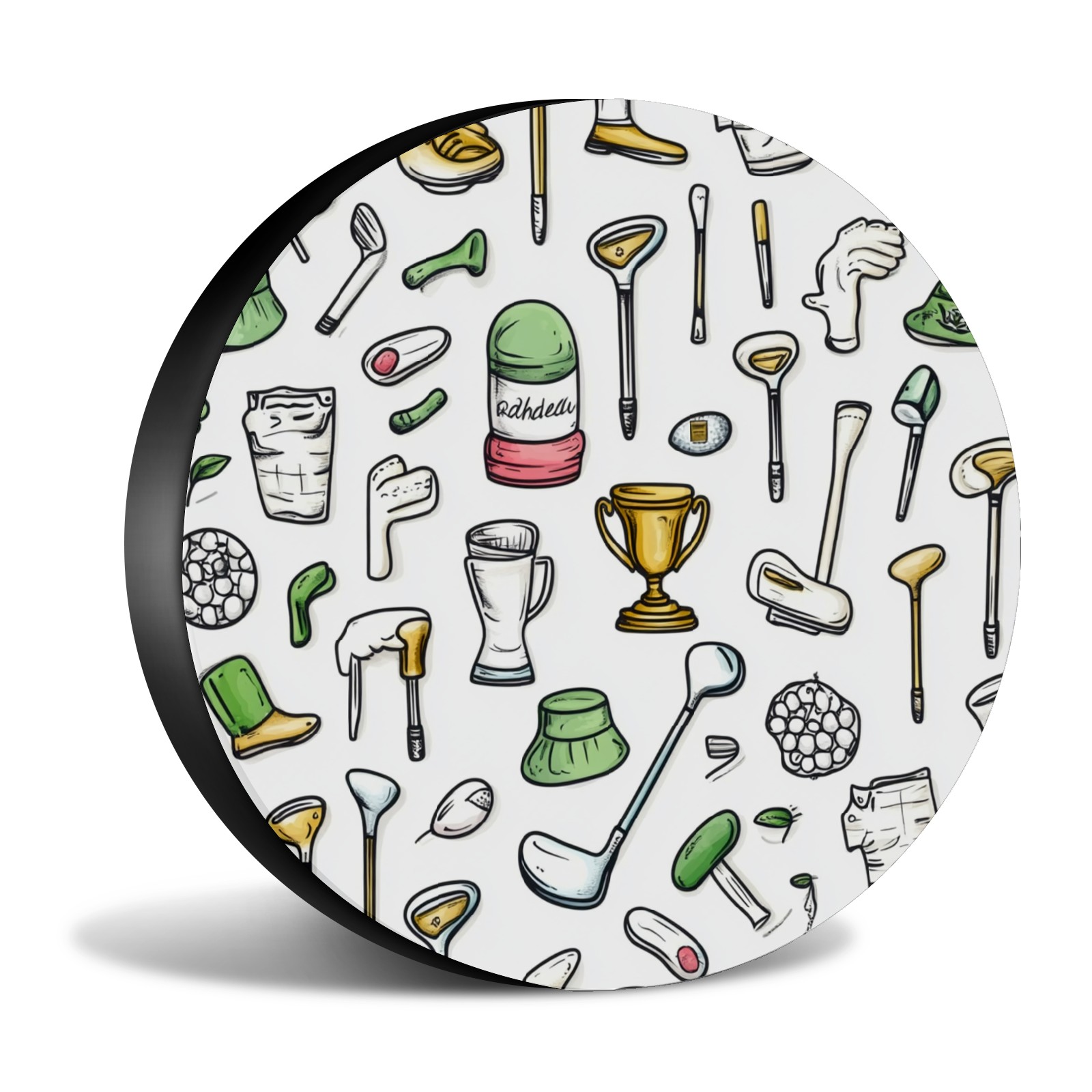 Hand-drawn Golf Elements Spare Tire Cover, Waterproof Wheel Protector Universal Fits for Truck SUV RV Trailer Camper (14 Inch)