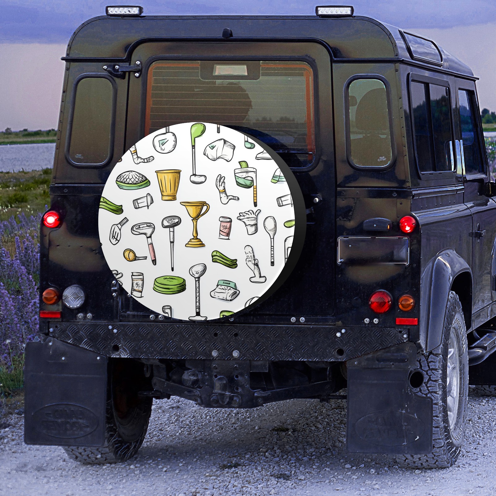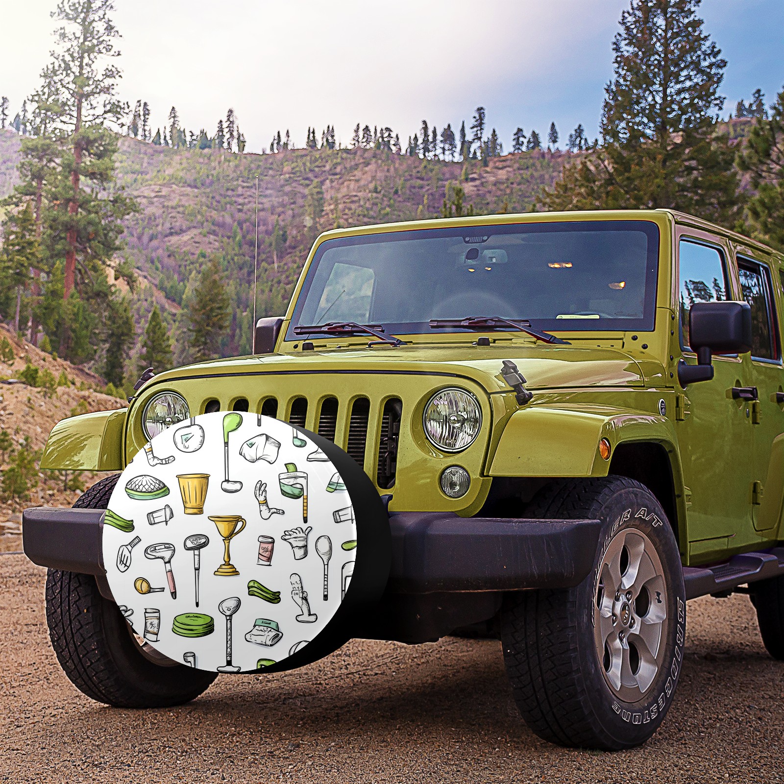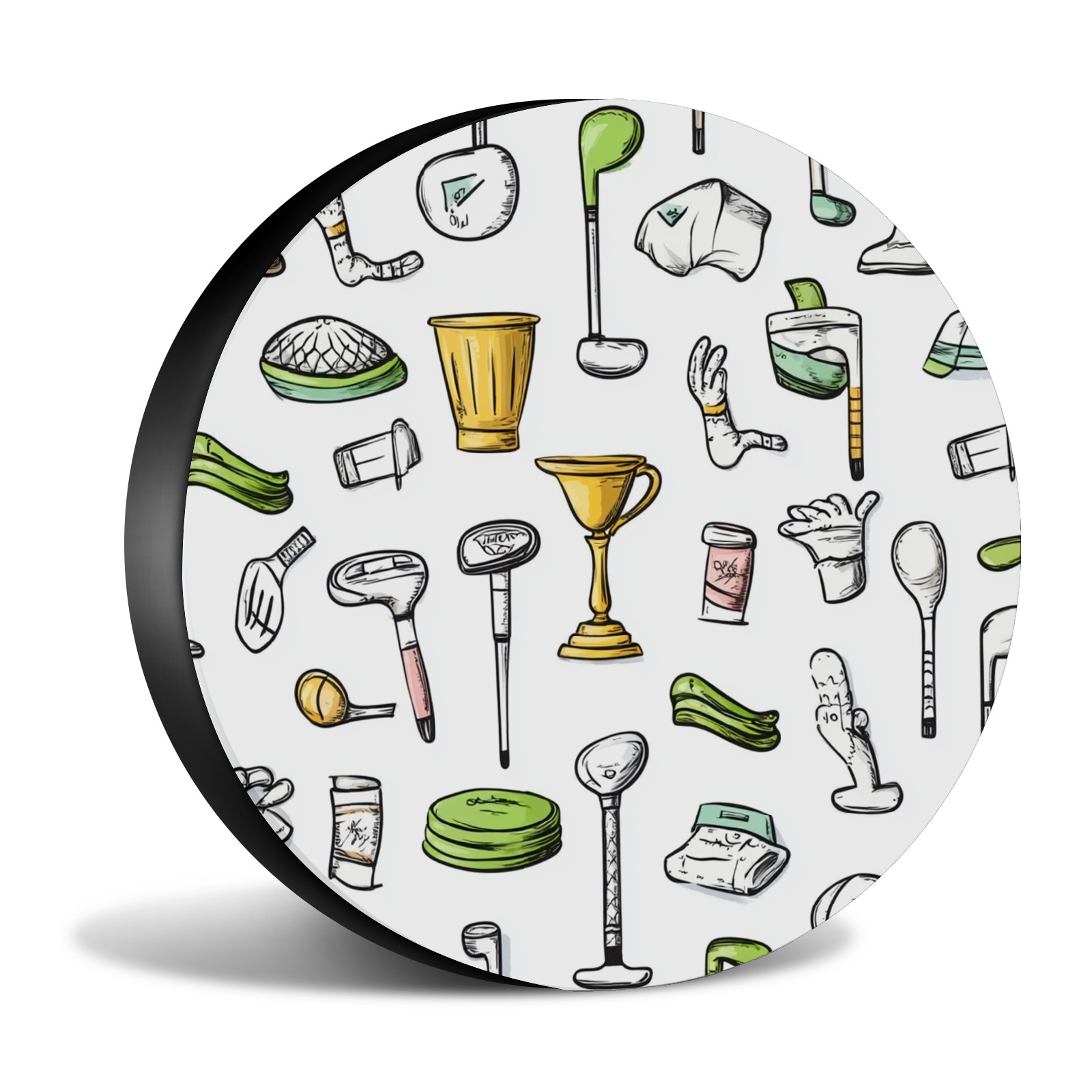 Hand-drawn Golf Pattern Spare Tire Cover, Waterproof Wheel Protector Universal Fits for Truck SUV RV Trailer Camper (14 Inch)