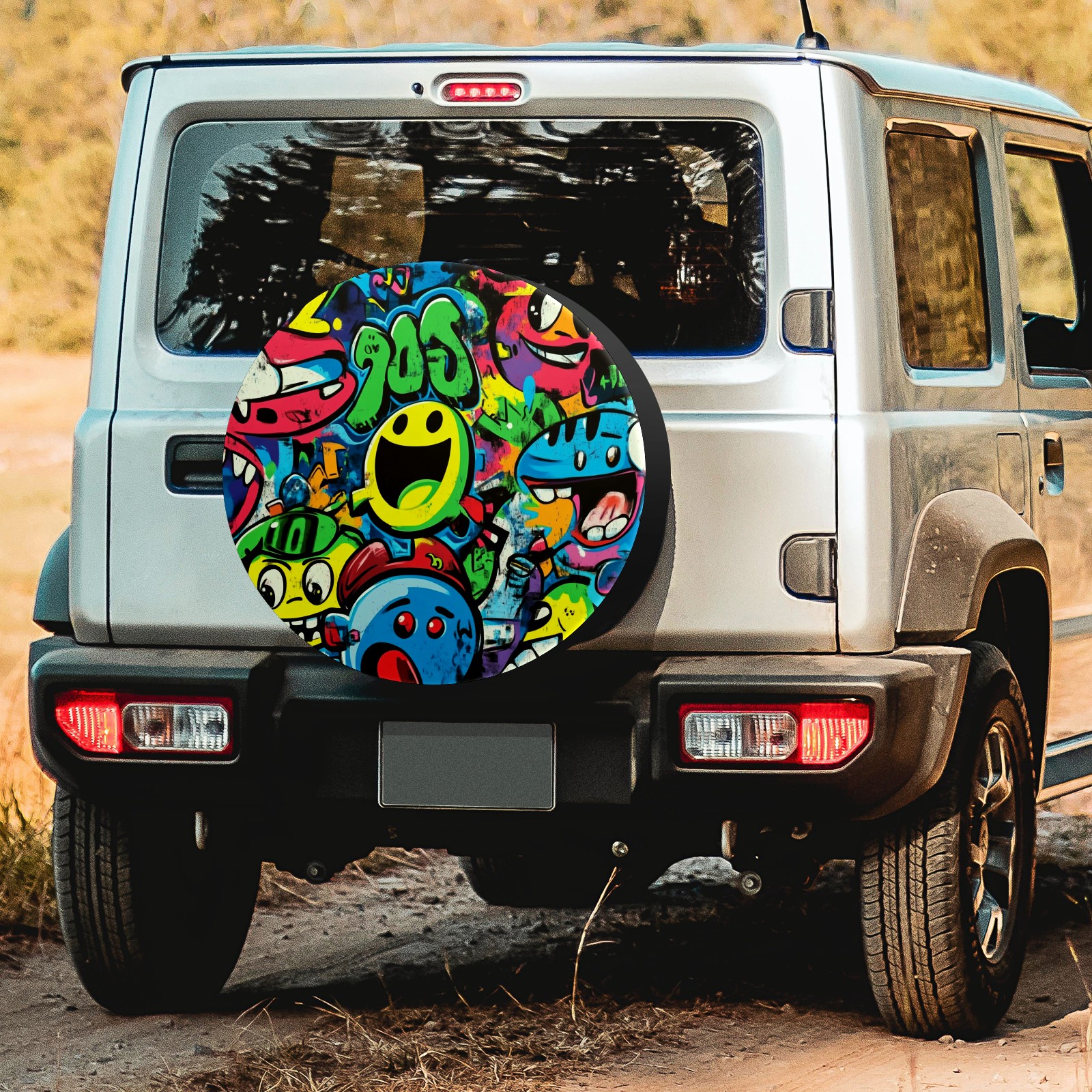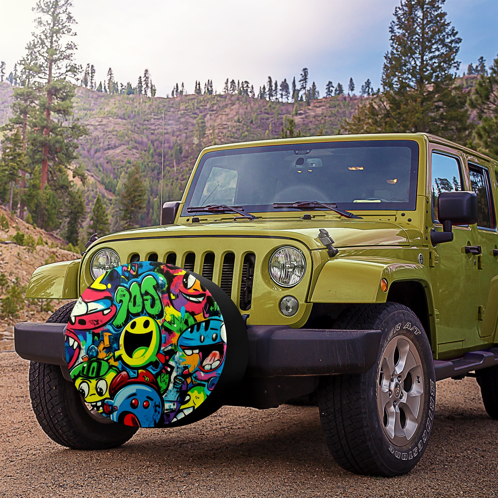 Vibrant Cartoon-style Pattern Spare Tire Cover, Waterproof Wheel Protector Universal Fits for Truck SUV RV Trailer Camper (14 Inch)