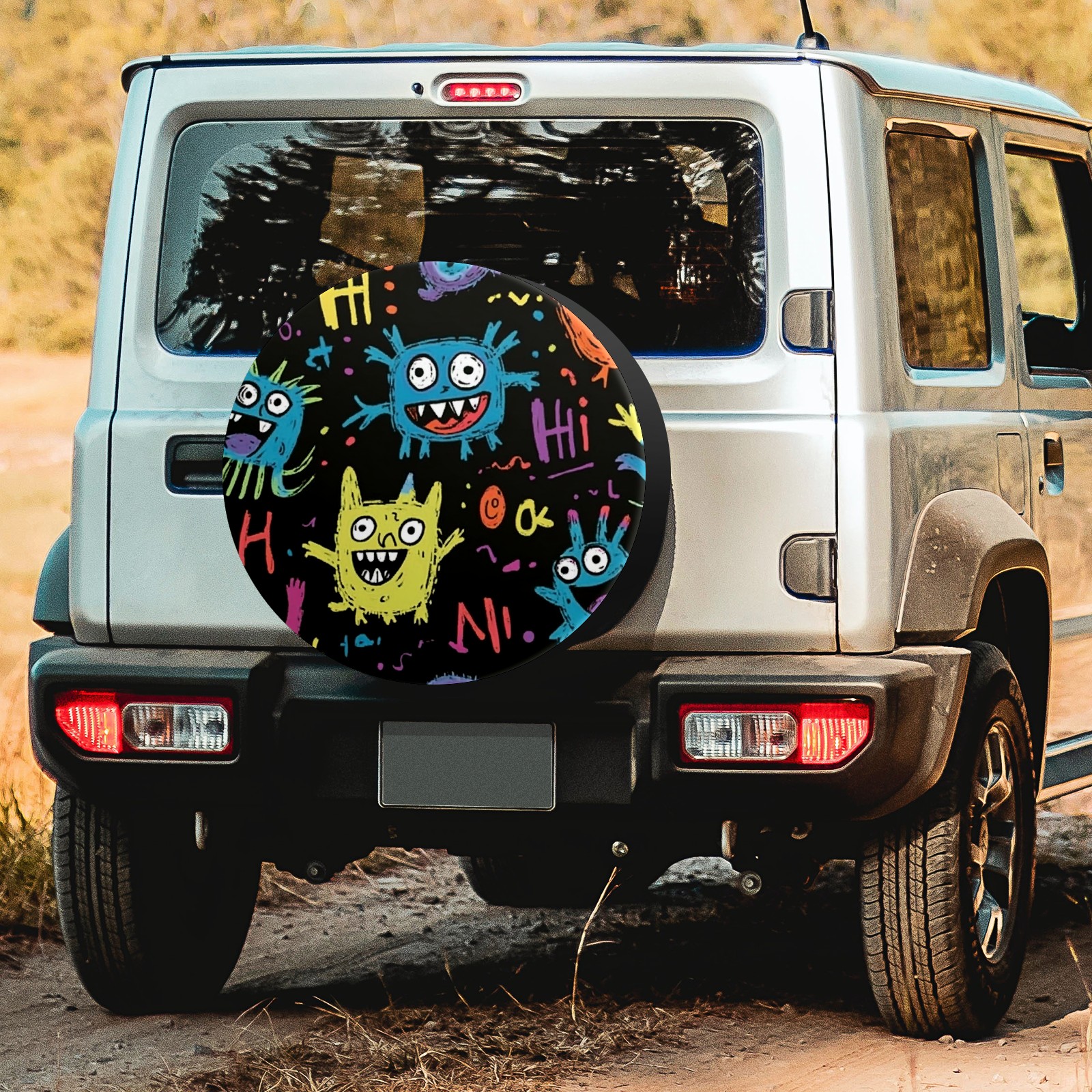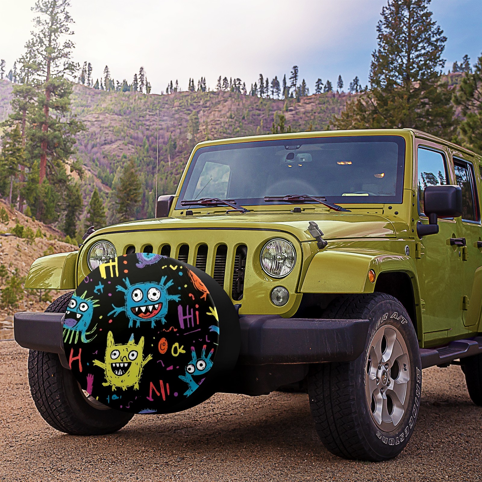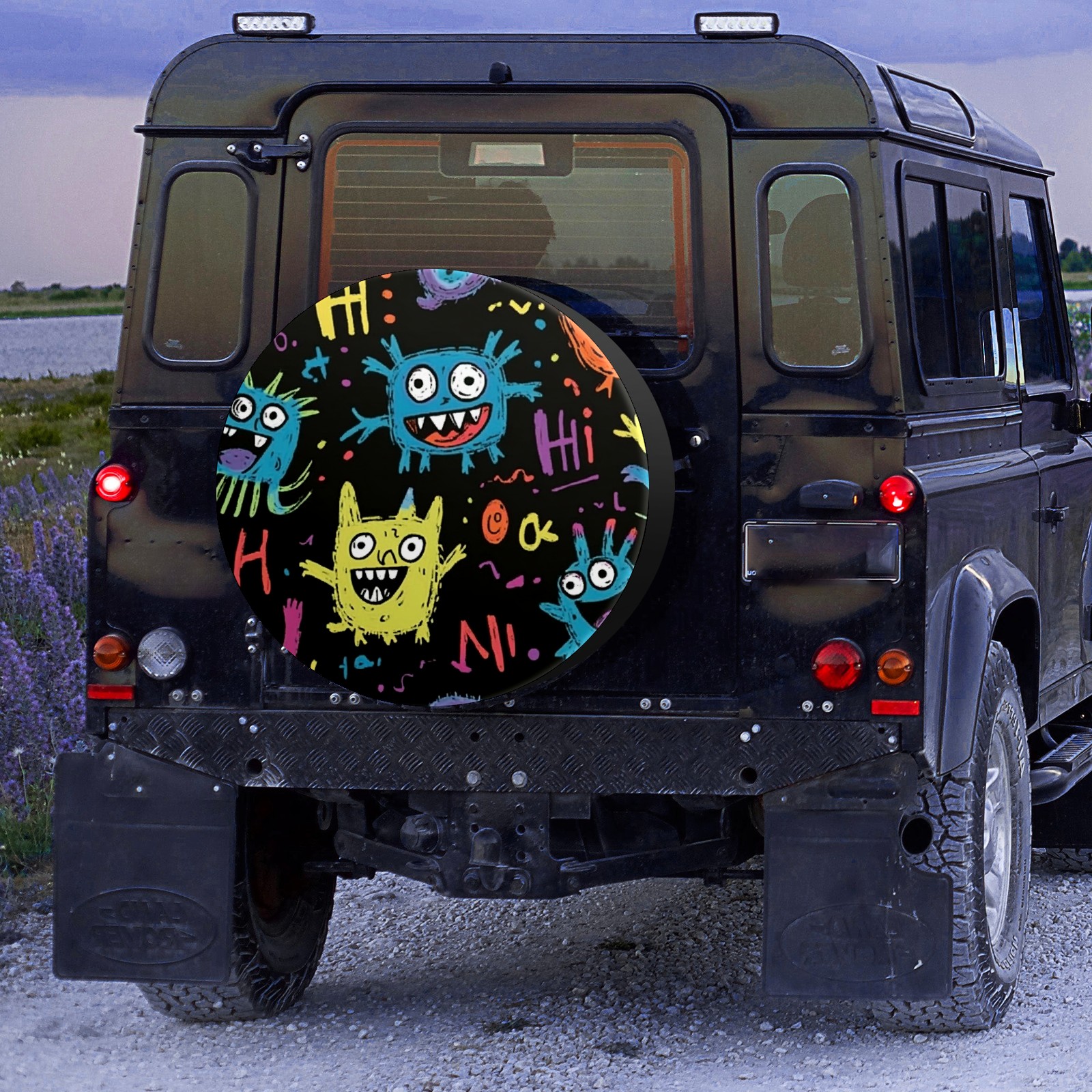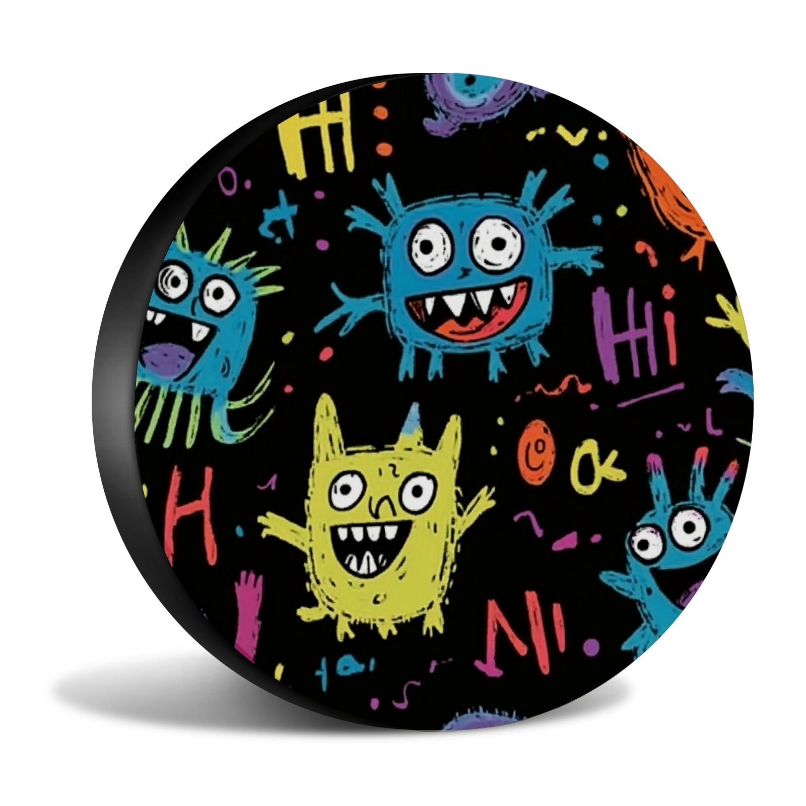 Cute Cartoon Monsters Spare Tire Cover, Waterproof Wheel Protector Universal Fits for Truck SUV RV Trailer Camper (14 Inch)
