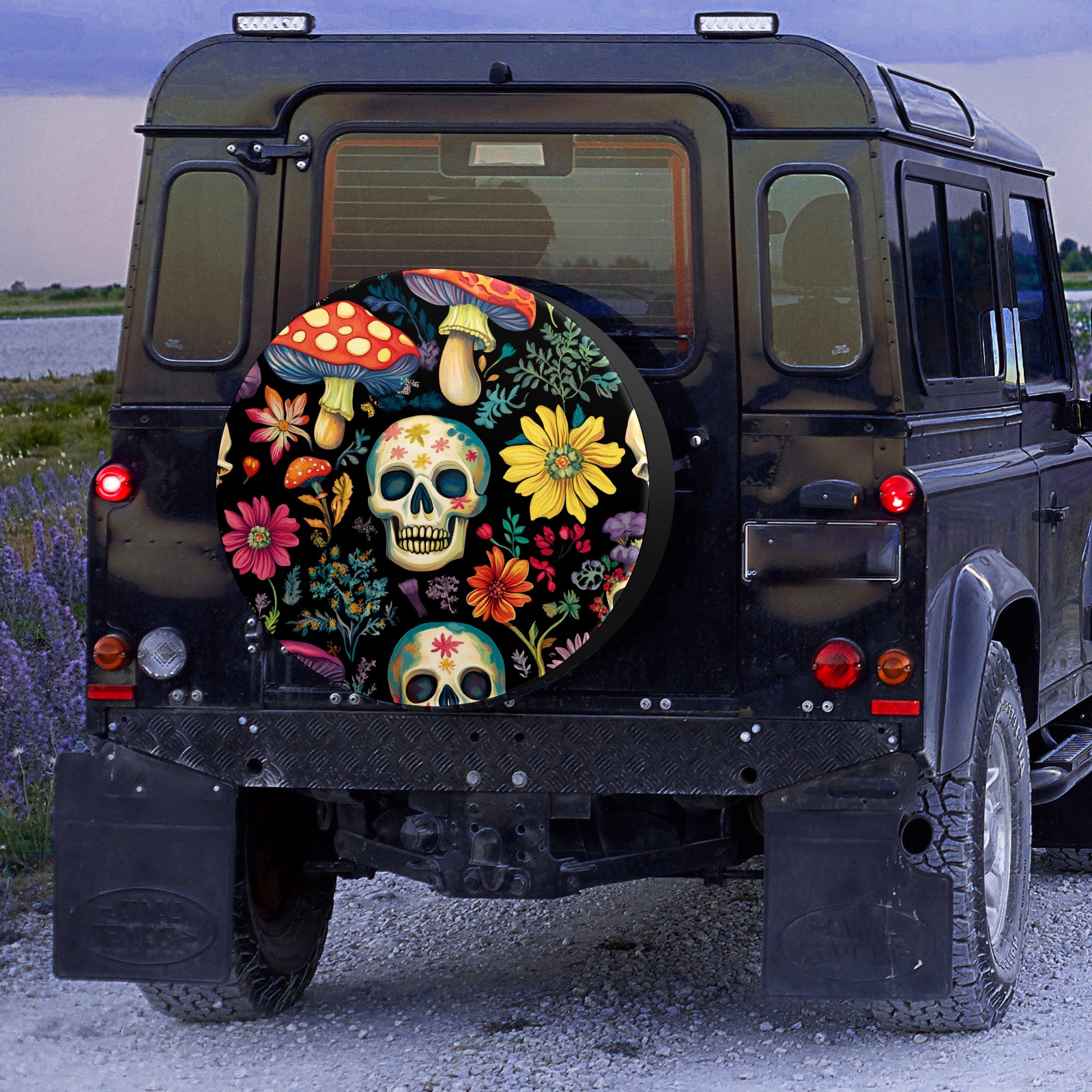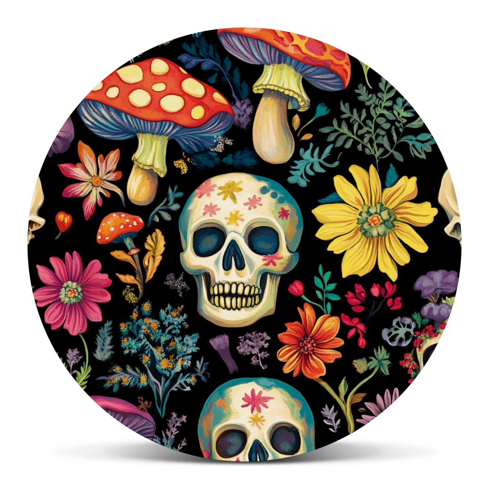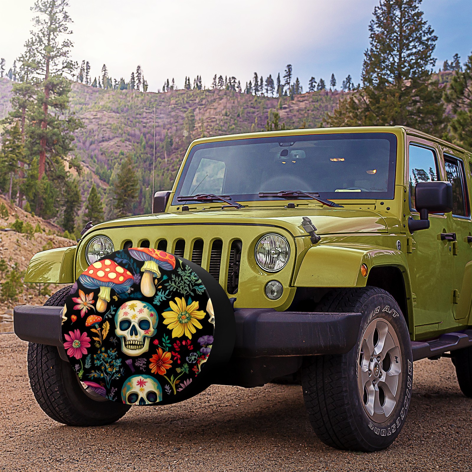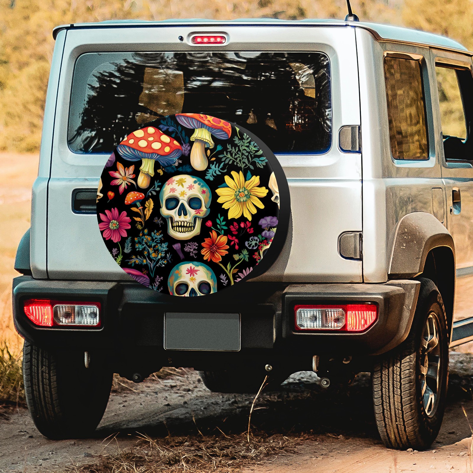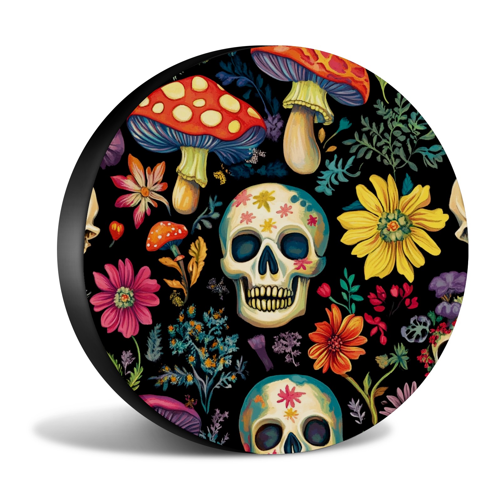 Skulls And Mushroom Spare Tire Cover, Waterproof Wheel Protector Universal Fits for Truck SUV RV Trailer Camper (14 Inch)