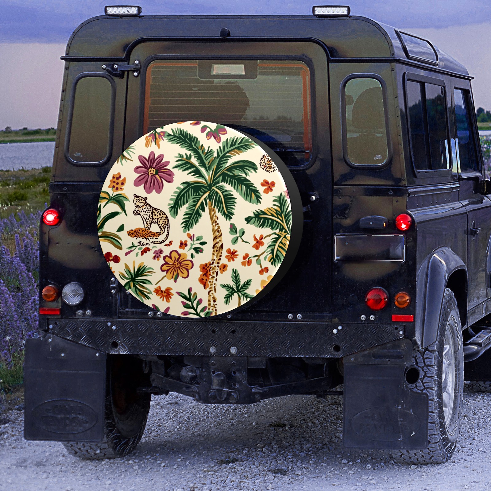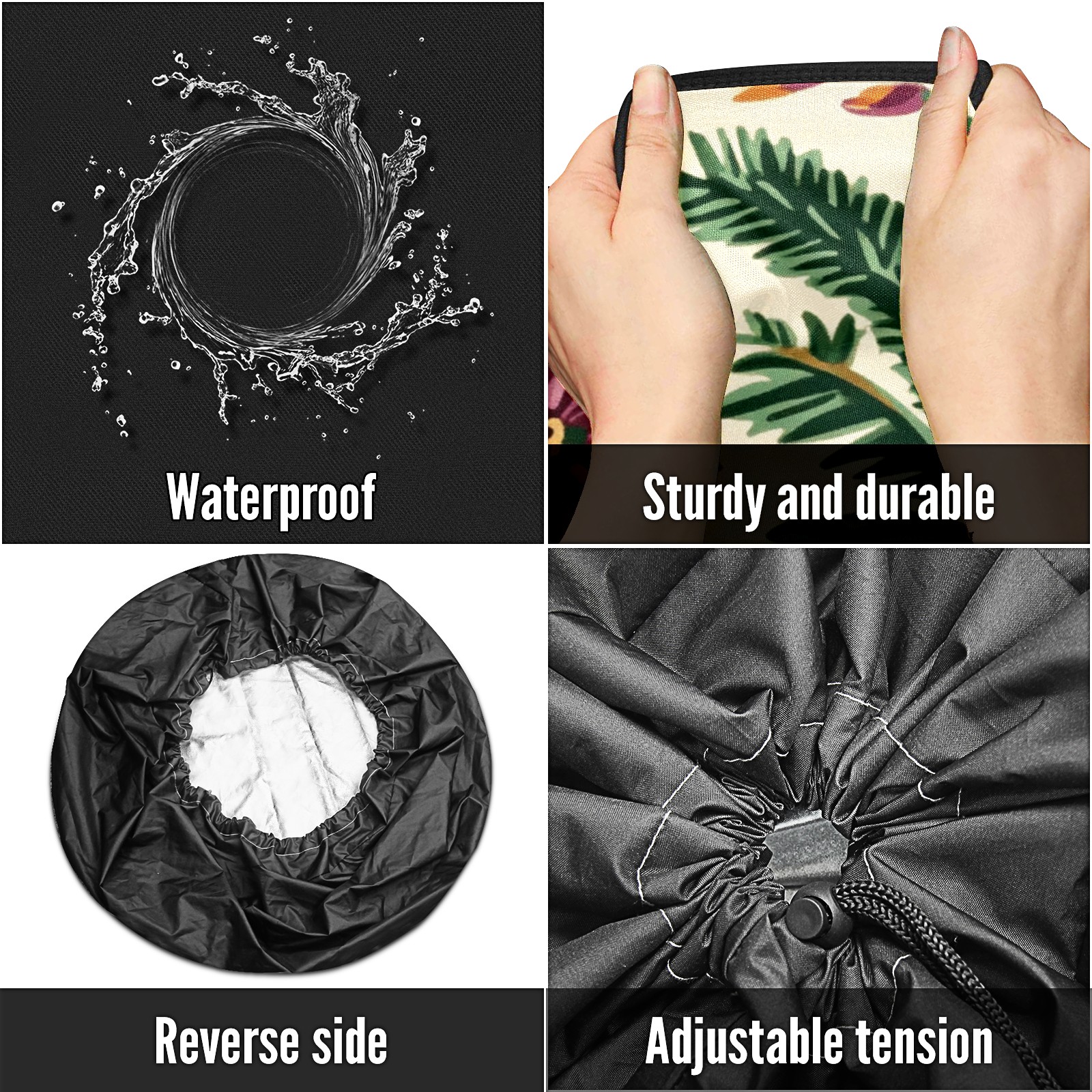 • <p>Keep your spare tire protected and your vehicle looking sharp with our universal Tire Cover. Designed with a sleek single-sided print and classic black sides, this rugged cover is made from high-quality polyester fabric that is fully waterproof. The adjustable nylon rope ensures a secure, custom fit for any tire, helping to maintain a clean and professional appearance for your vehicle.</p>