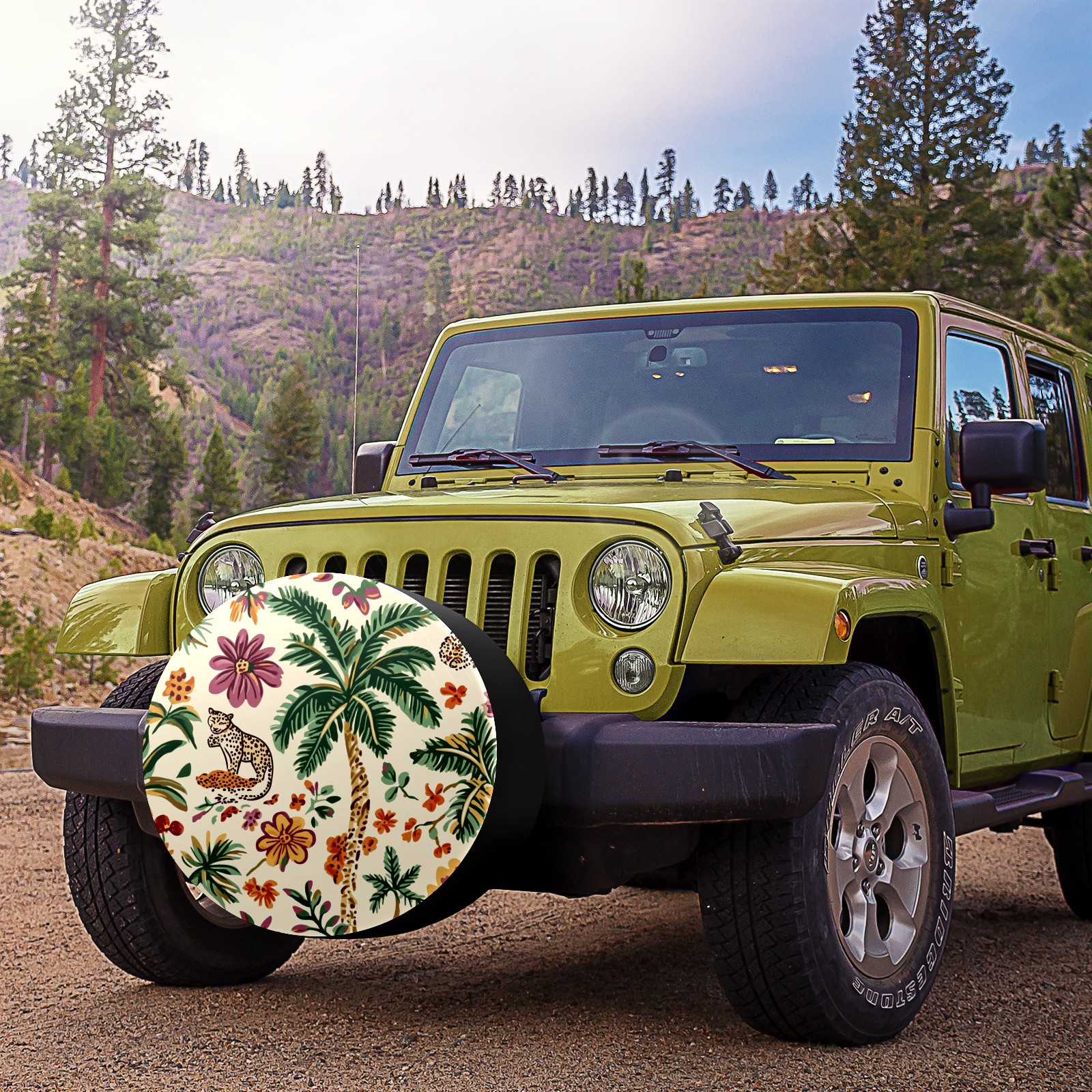 Tropical Jungle Theme Spare Tire Cover, Waterproof Wheel Protector Universal Fits for Truck SUV RV Trailer Camper (14 Inch)