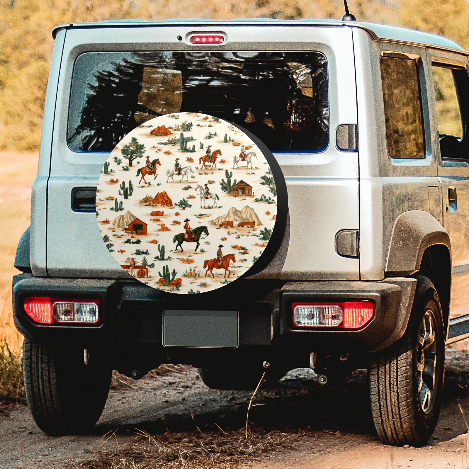 Western Theme Pattern Spare Tire Cover, Waterproof Wheel Protector Universal Fits for Truck SUV RV Trailer Camper (14 Inch)