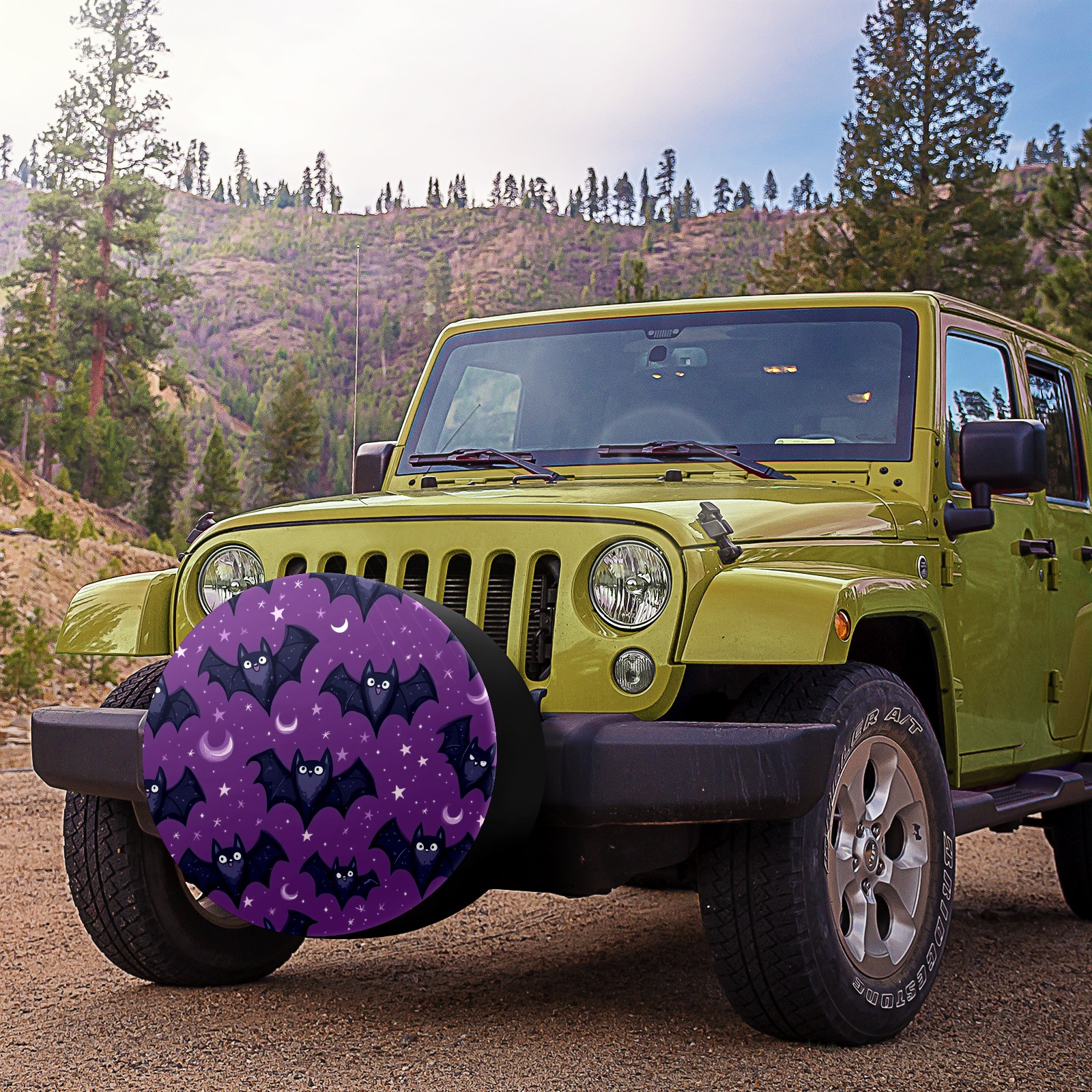 Bats With Tiny Stars Spare Tire Cover, Waterproof Wheel Protector Universal Fits for Truck SUV RV Trailer Camper (14 Inch)