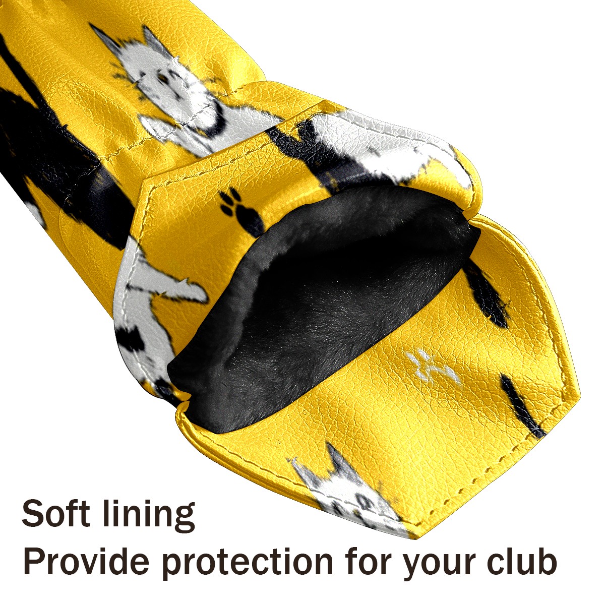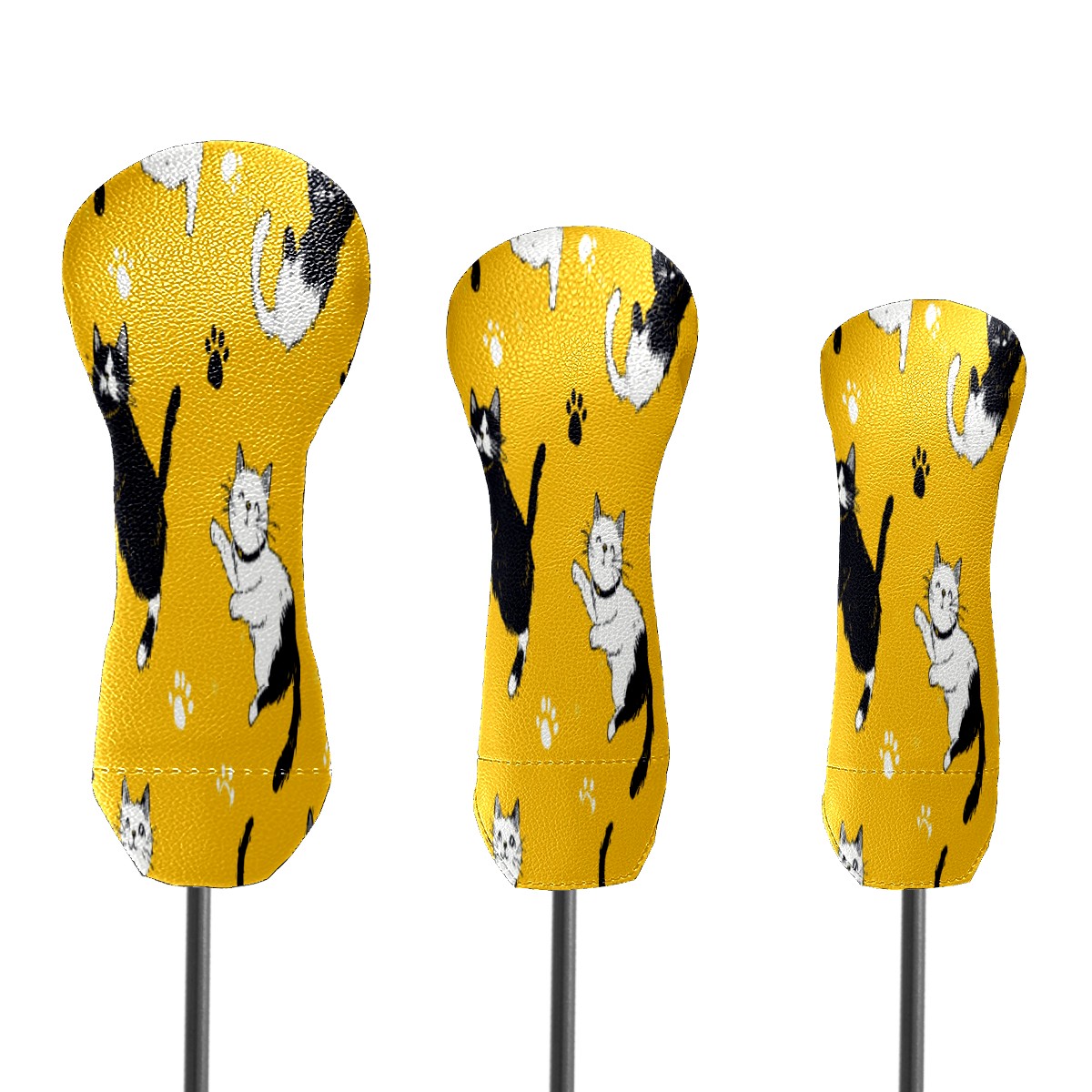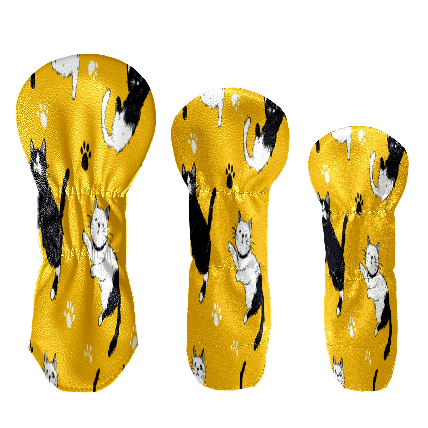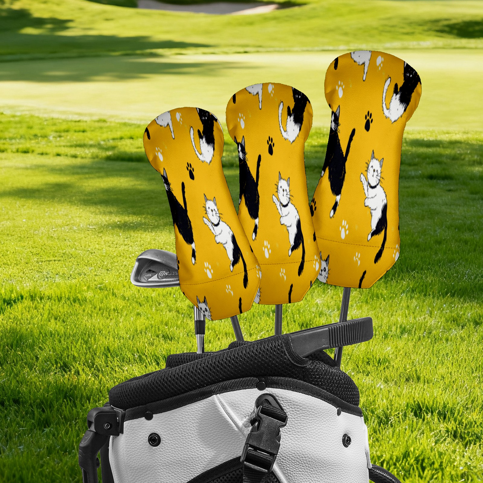 Golf Head Covers Waterproof Leather Headcovers for Driver Golf Accessories Golf Christmas Gift for Golfers Fits 1/3/5 Hybrid Fairway Wood Cover Yellow Background Cat Mural