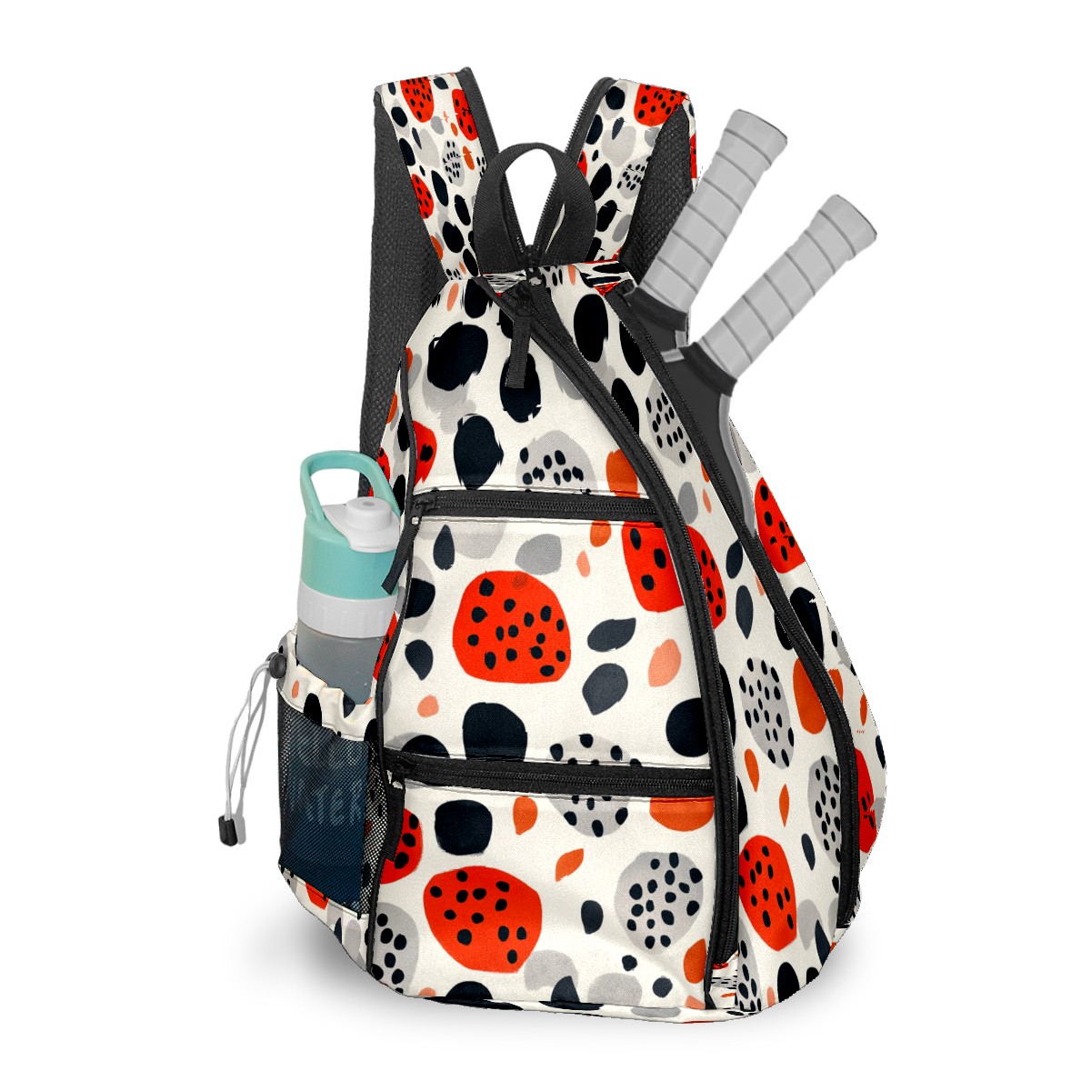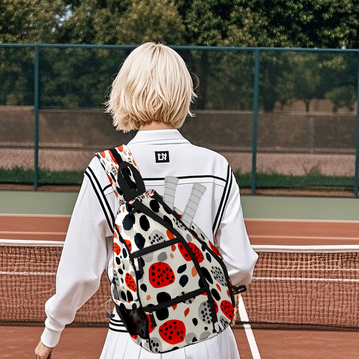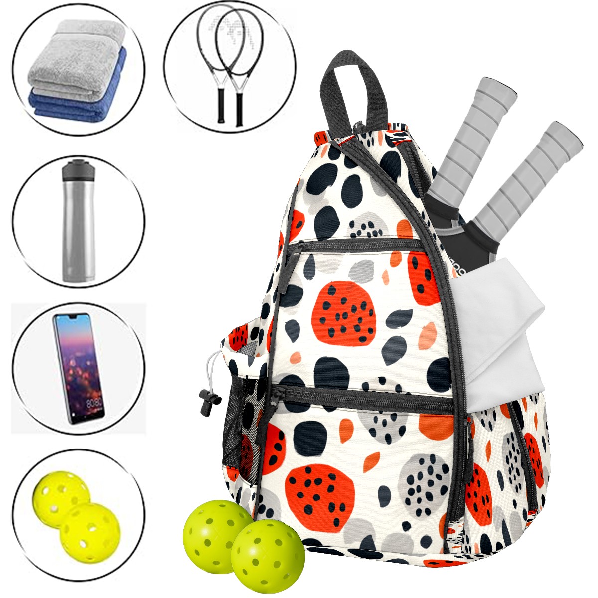 Pickleball Sling Bag for Women and Men - Backpack with Nylon Fabric/Woven Strap/Mesh Pocket/Fence Hook/Adjustable Bag Spotted Pattern