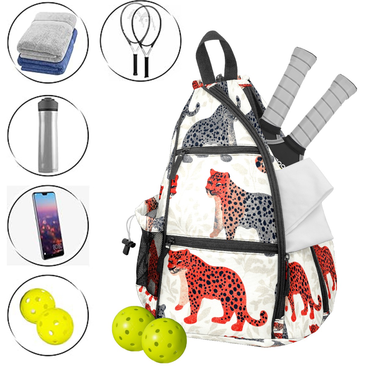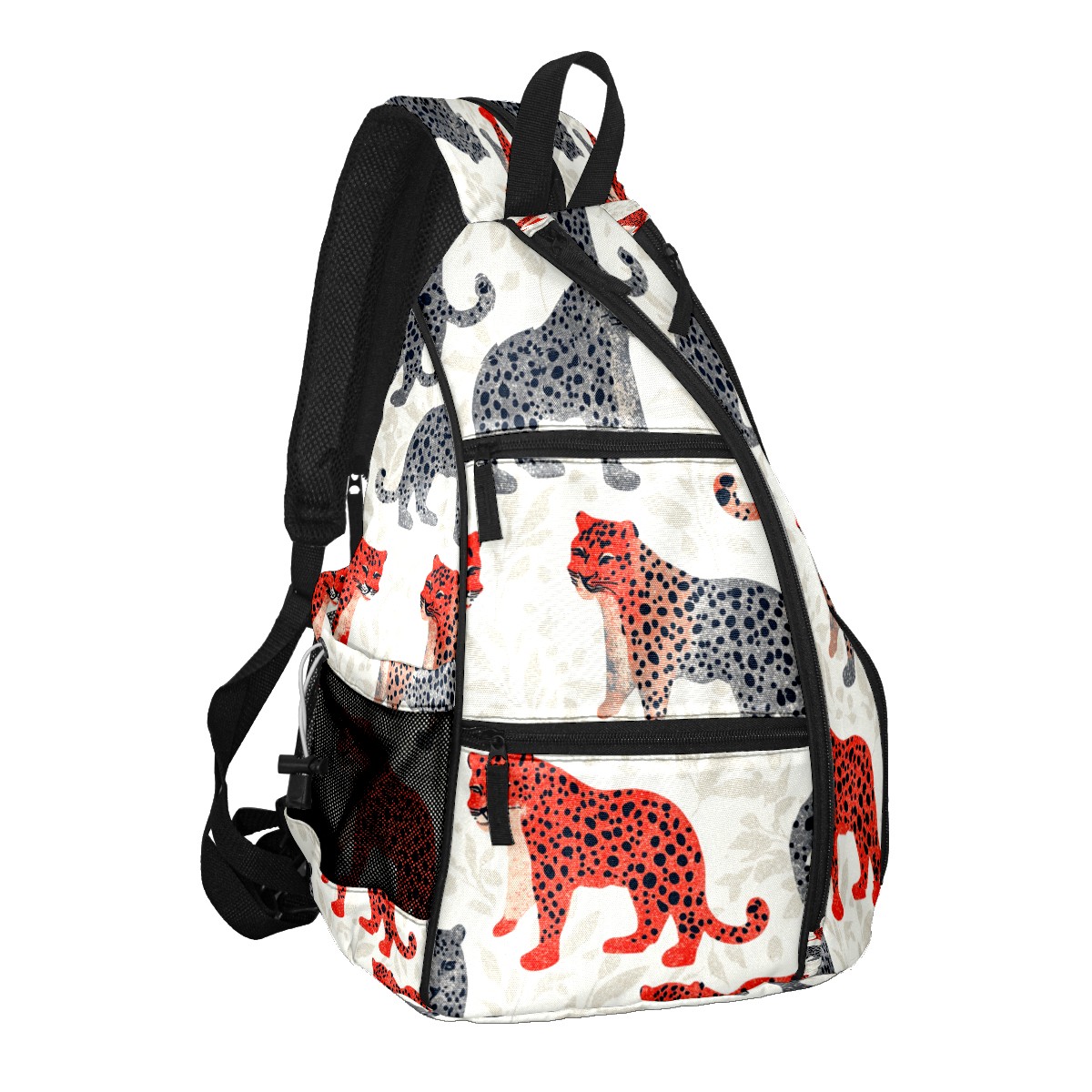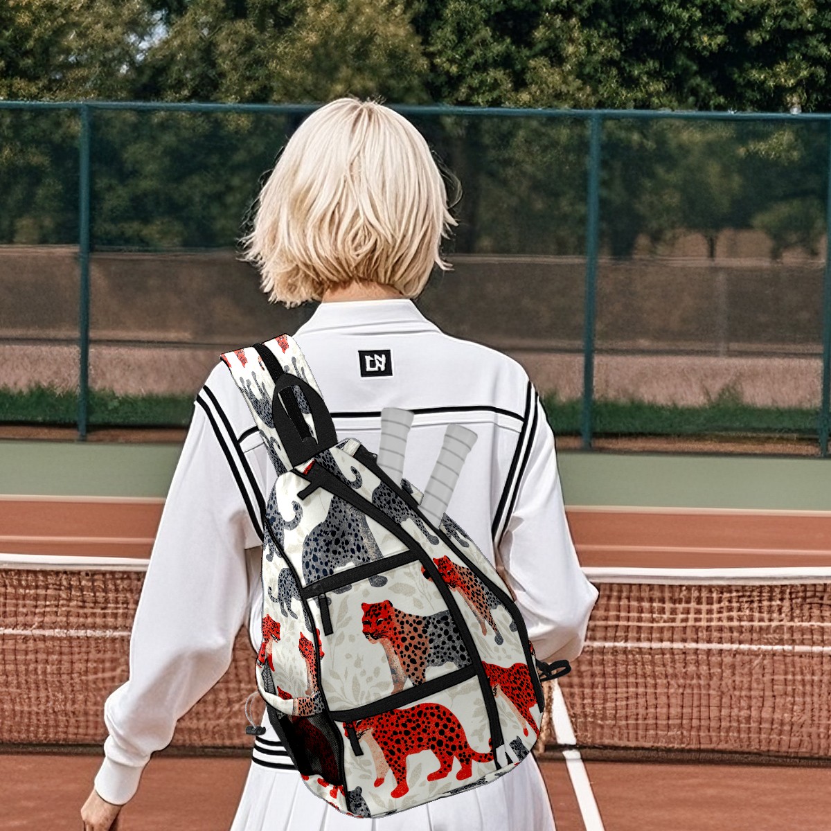 Pickleball Sling Bag for Women and Men - Backpack with Nylon Fabric/Woven Strap/Mesh Pocket/Fence Hook/Adjustable Bag Spotted Tiger Pattern