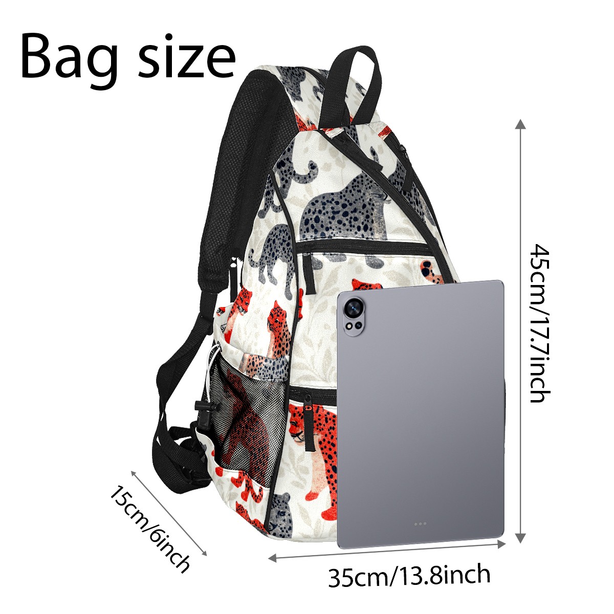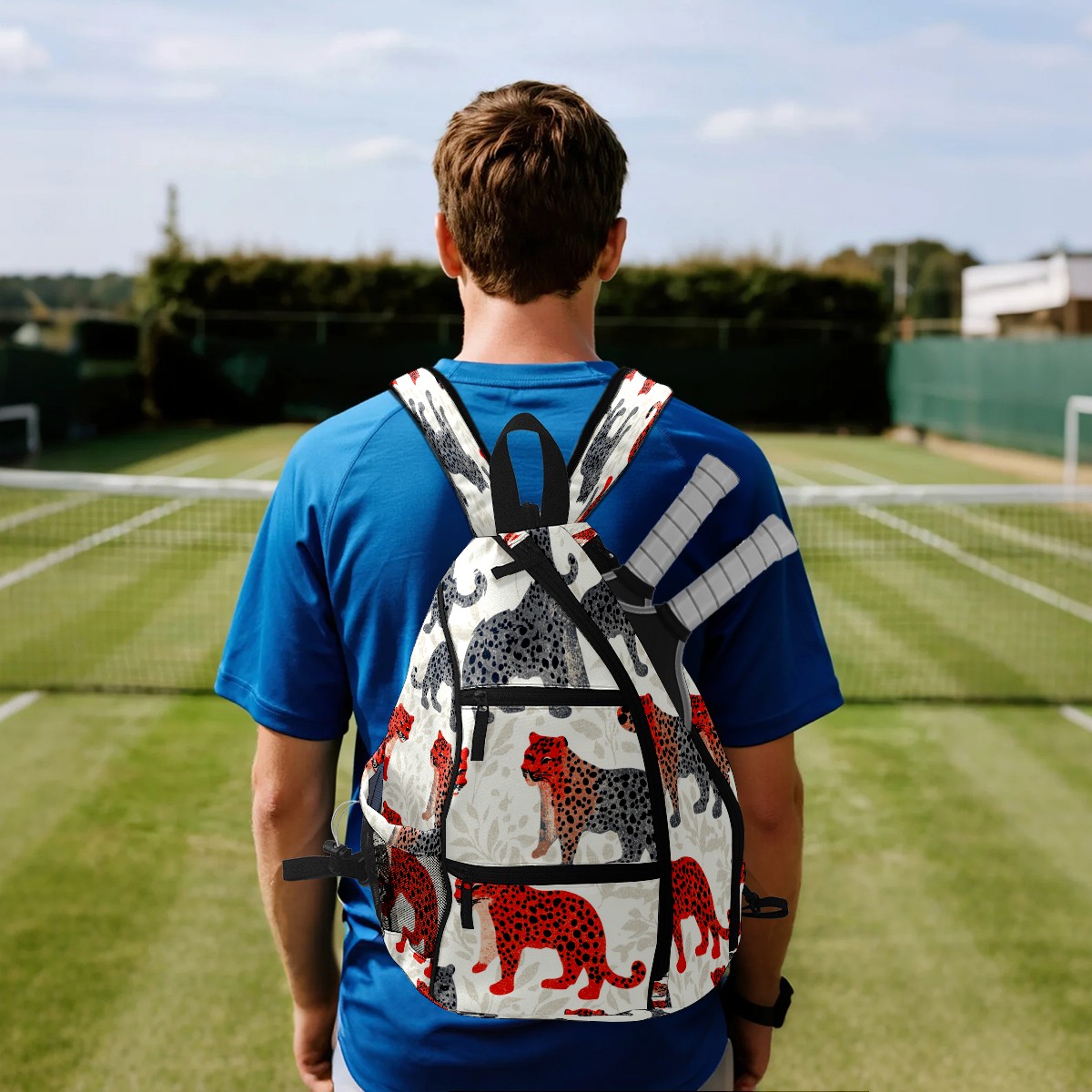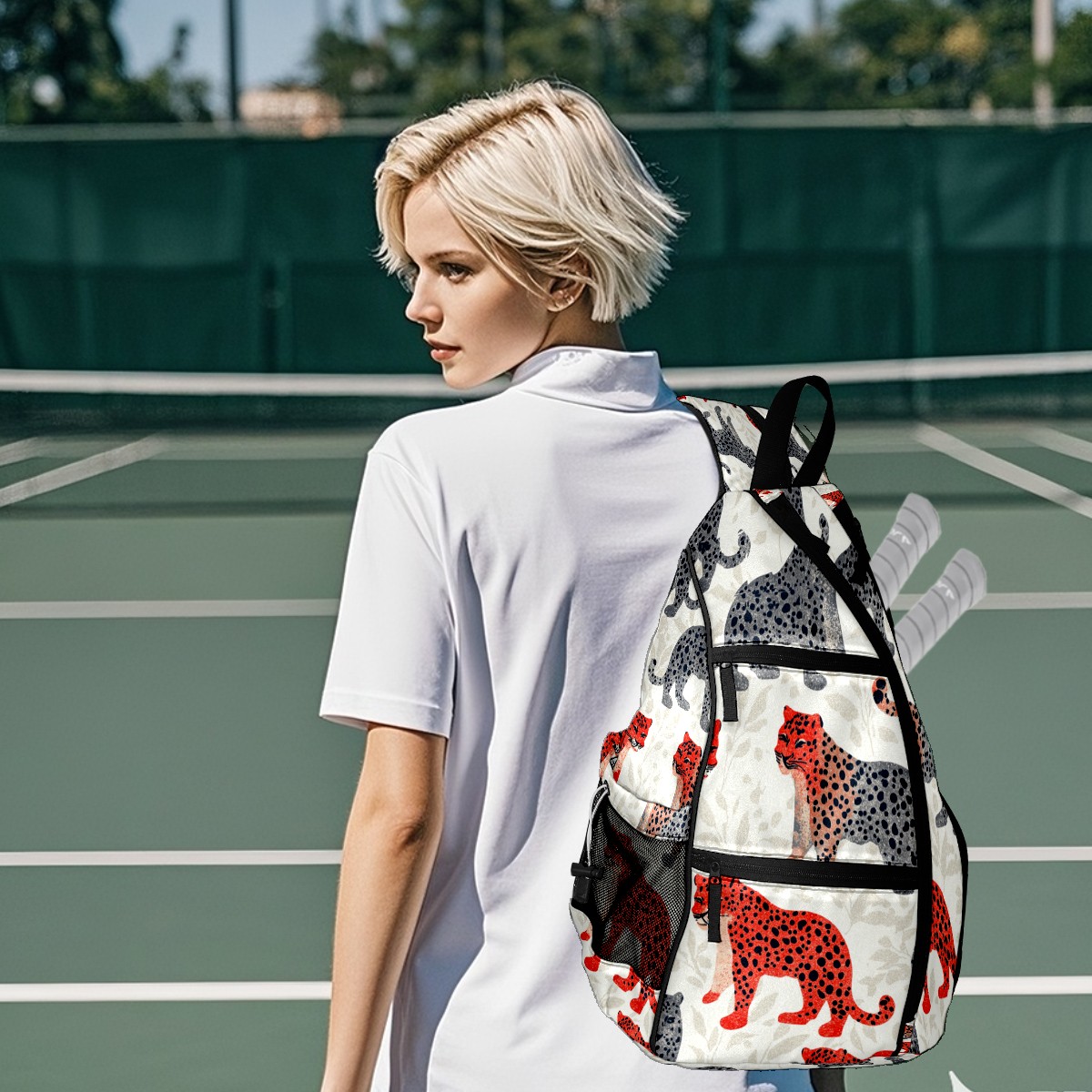 Pickleball Sling Bag for Women and Men - Backpack with Nylon Fabric/Woven Strap/Mesh Pocket/Fence Hook/Adjustable Bag Spotted Tiger Pattern