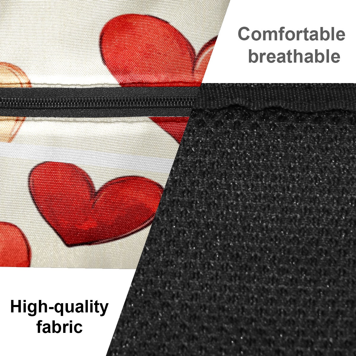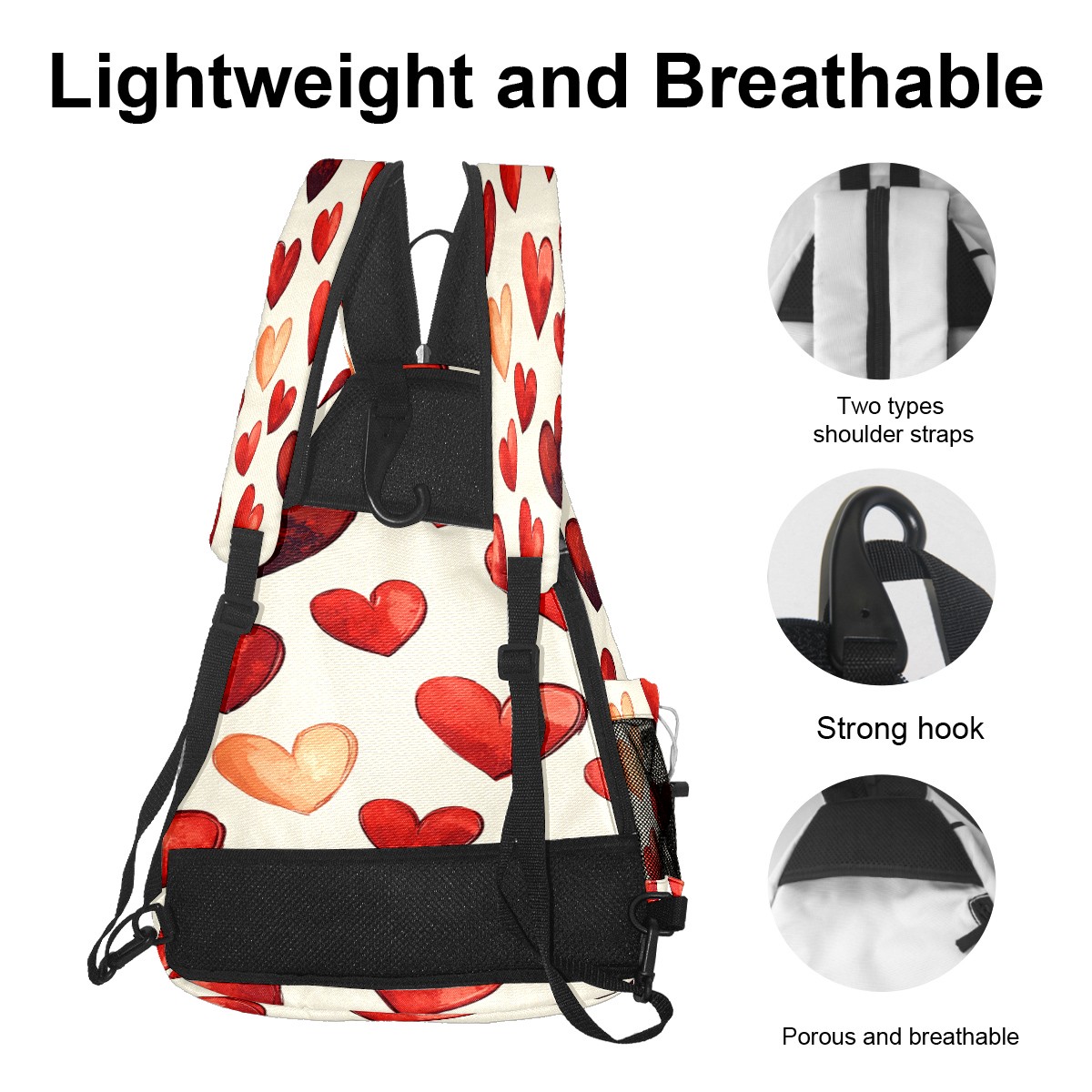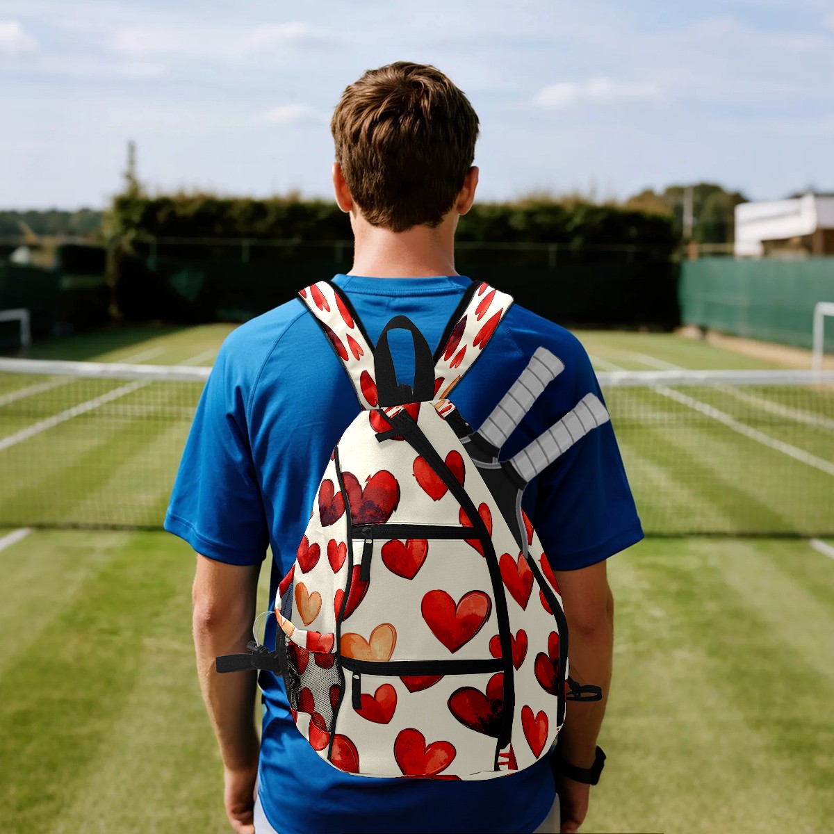 Pickleball Sling Bag for Women and Men - Backpack with Nylon Fabric/Woven Strap/Mesh Pocket/Fence Hook/Adjustable Bag Red Heart Pattern
