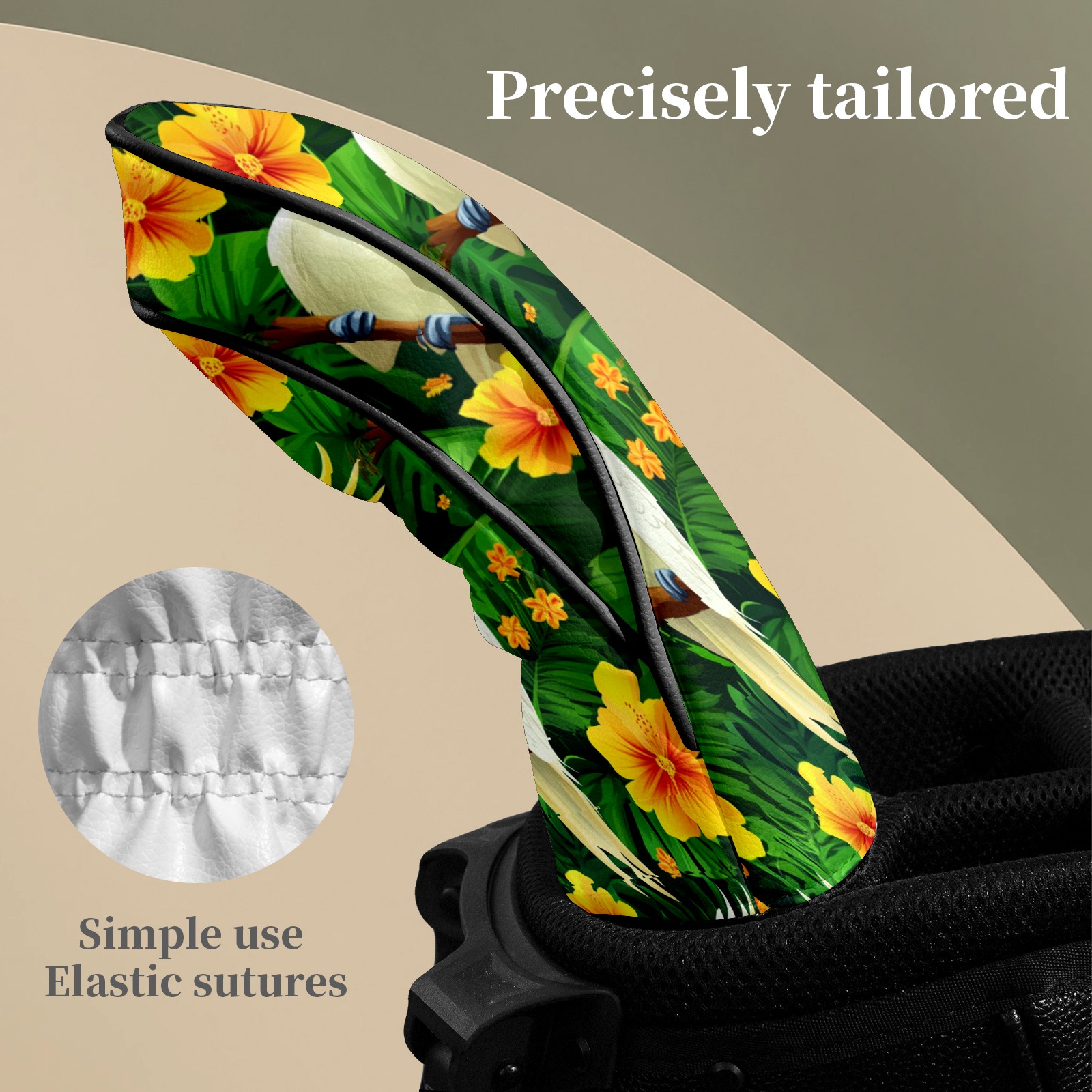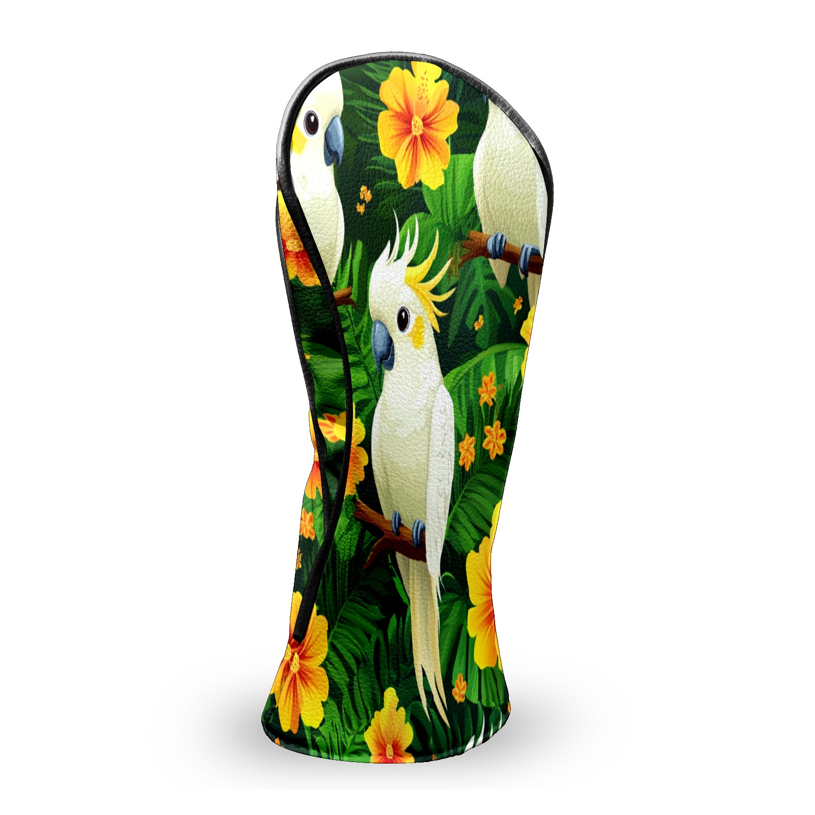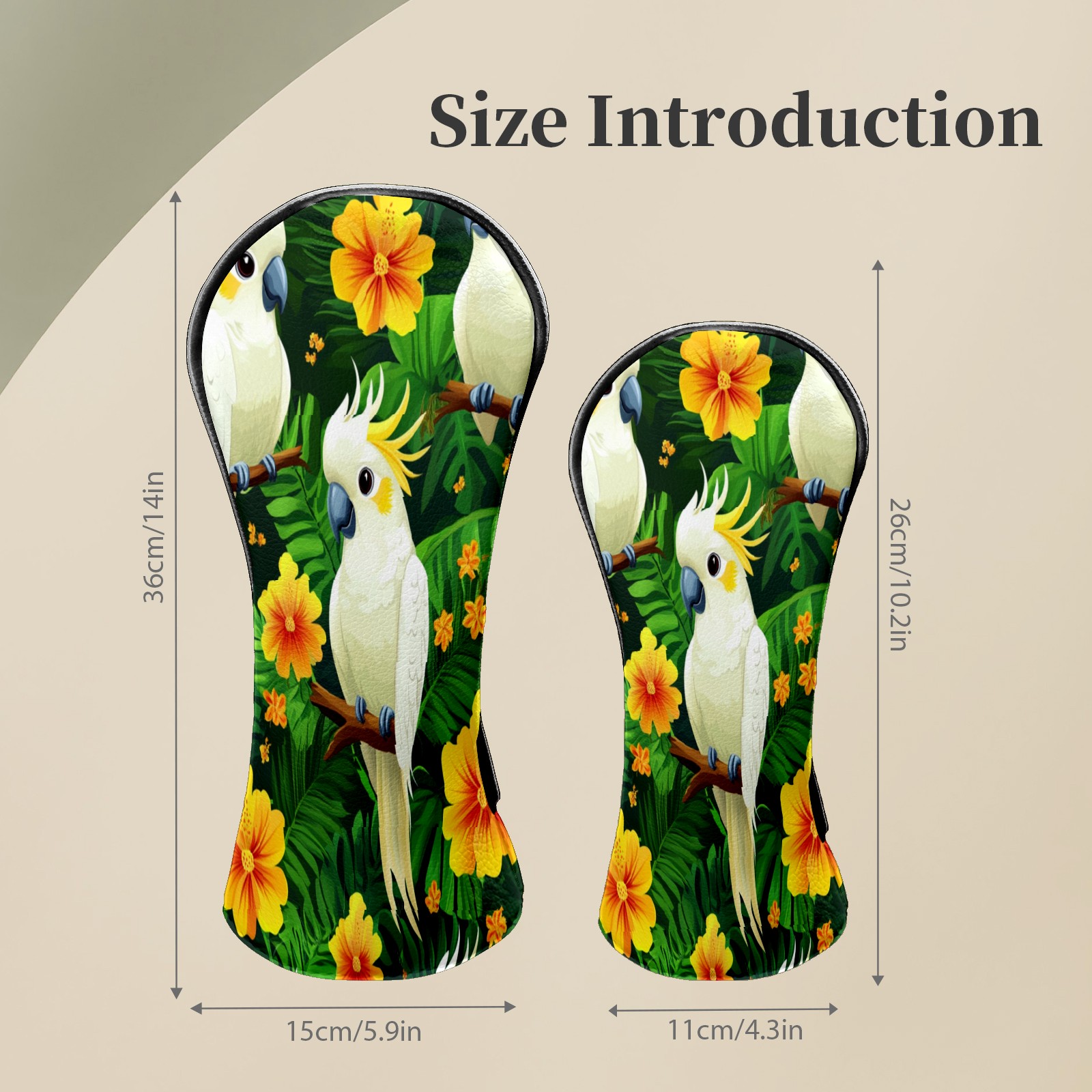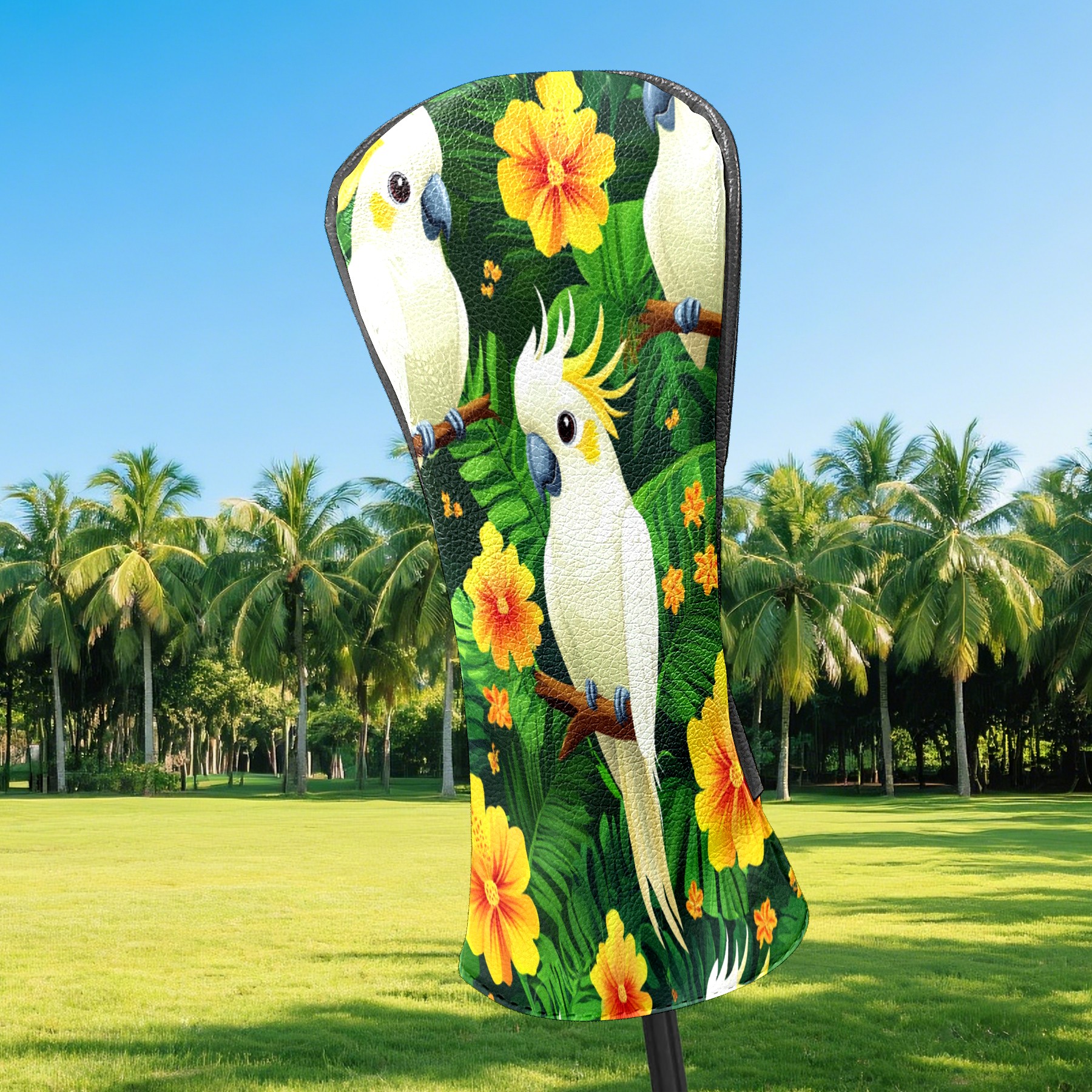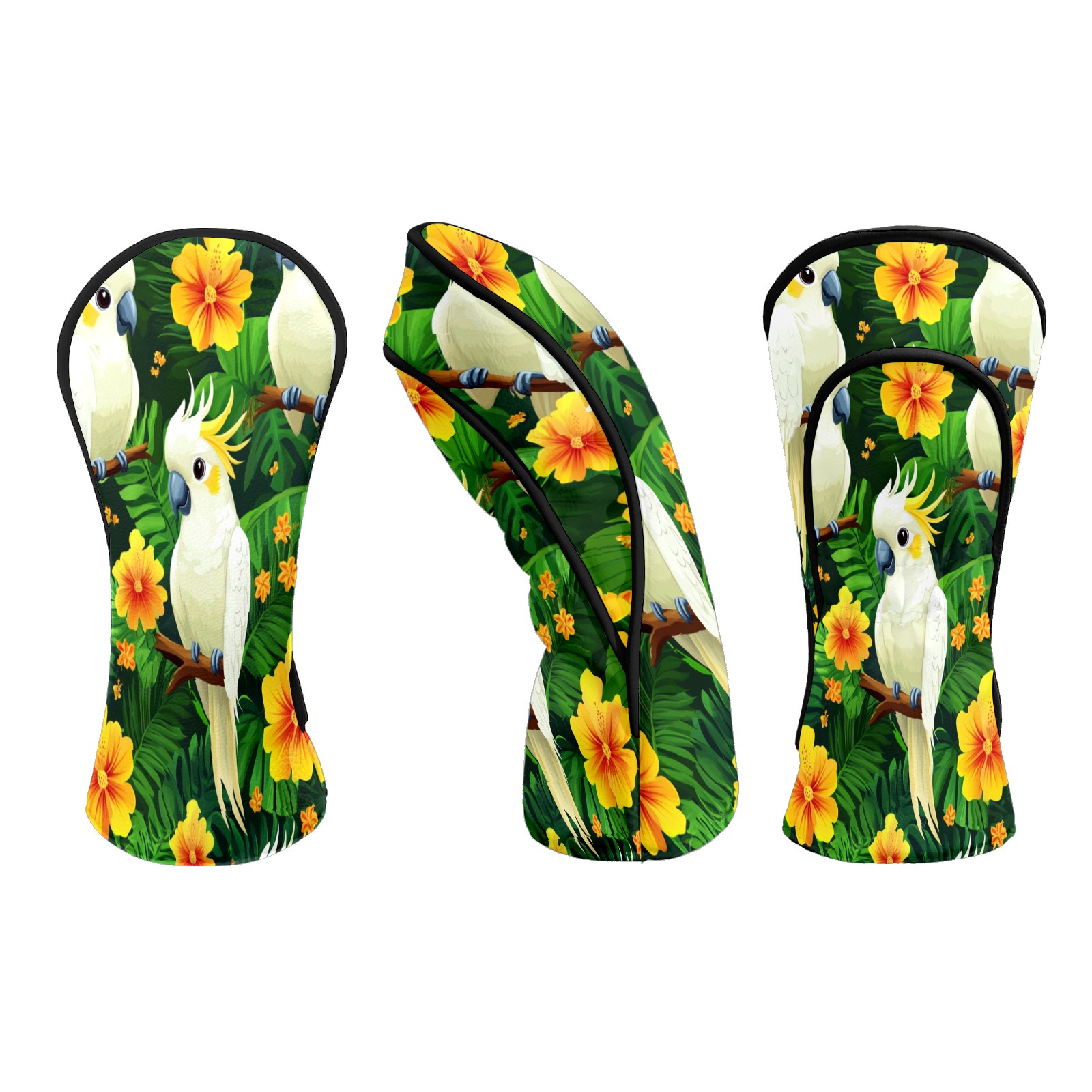 Golf Head Covers for Woods and Driver Waterproof Leather Golf Club Head Covers for Women Men Golf Driver Fairway Wood Headcover White Parrot & Flower Pattern
