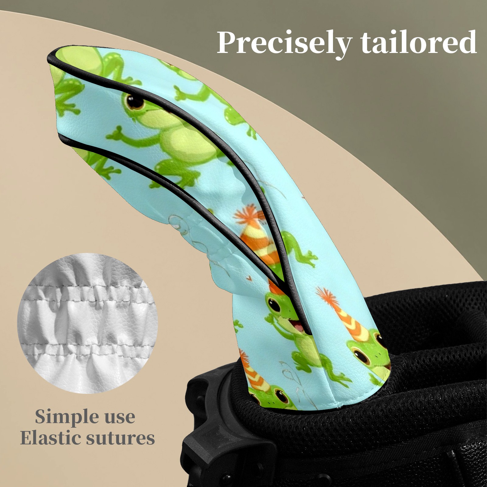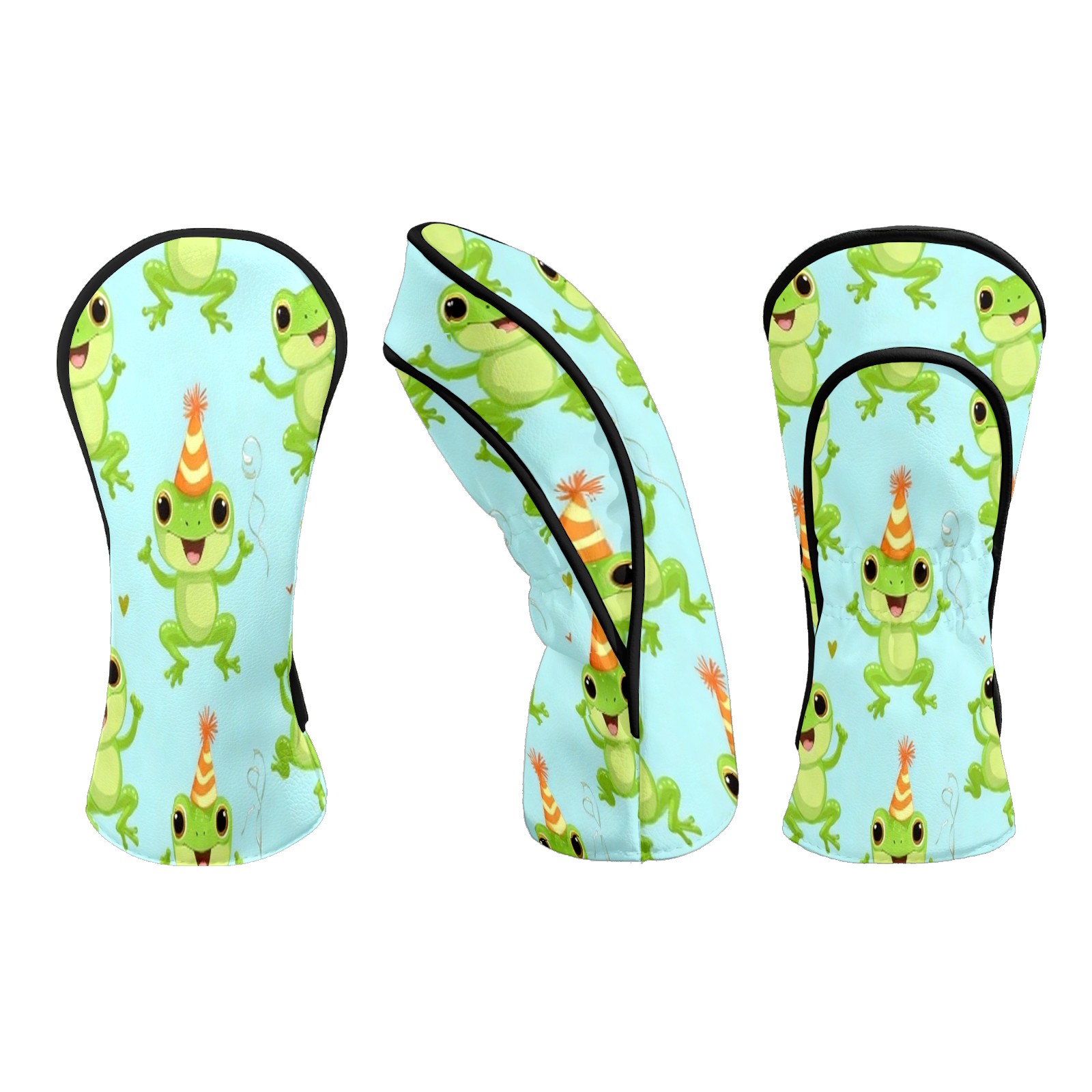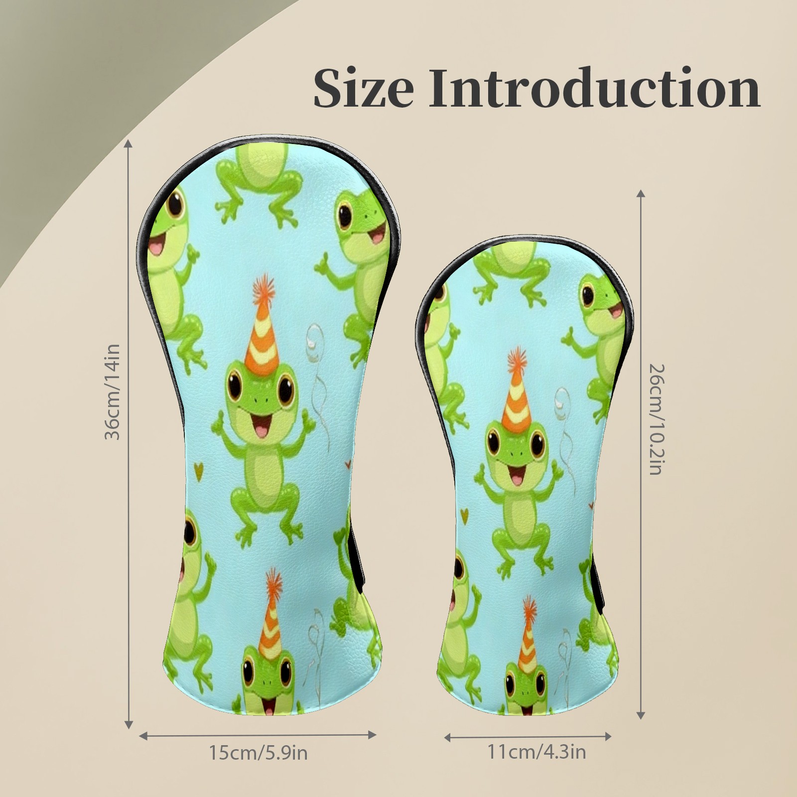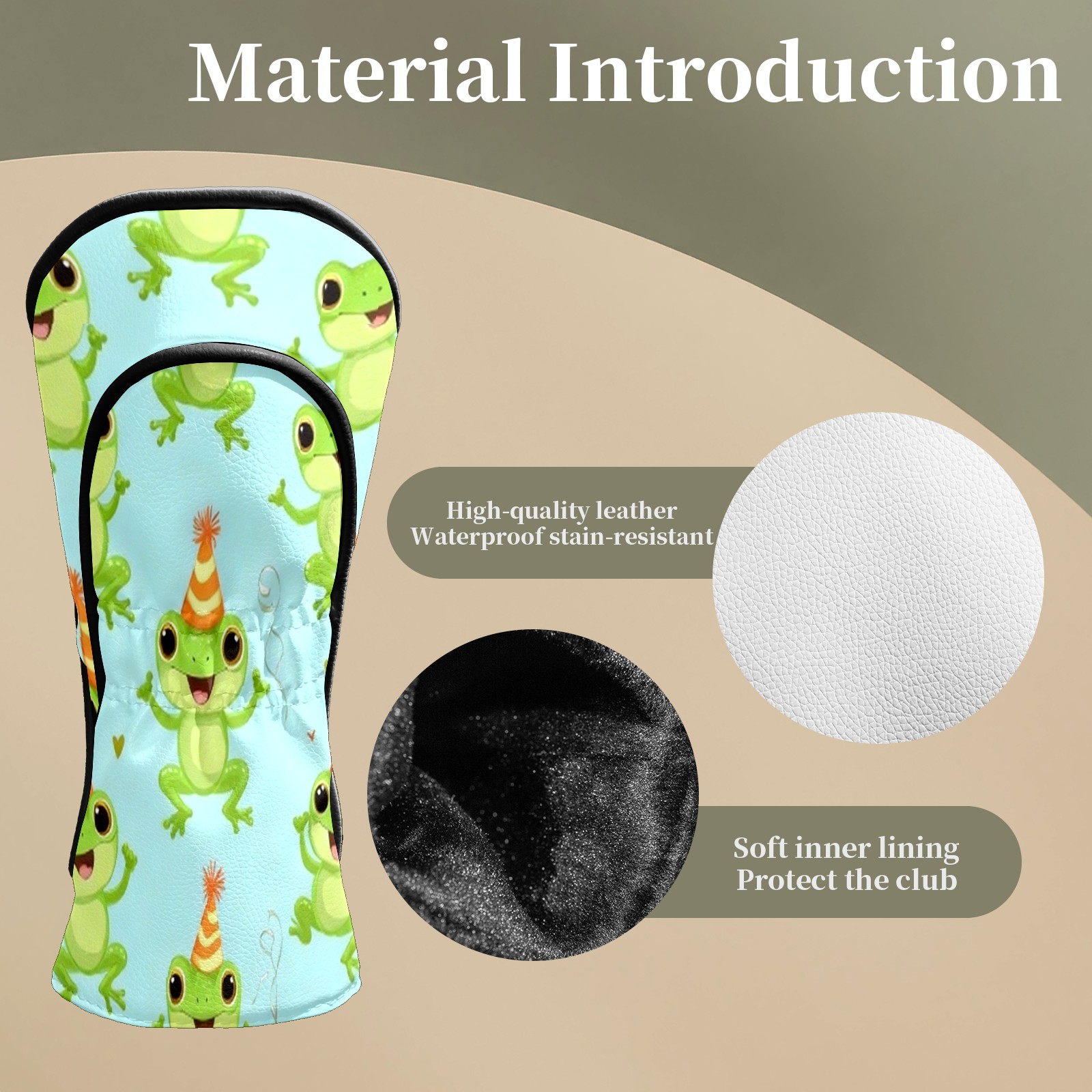 Golf Head Covers for Woods and Driver Waterproof Leather Golf Club Head Covers for Women Men Golf Driver Fairway Wood Headcover Cheerful Frog Celebration Mural