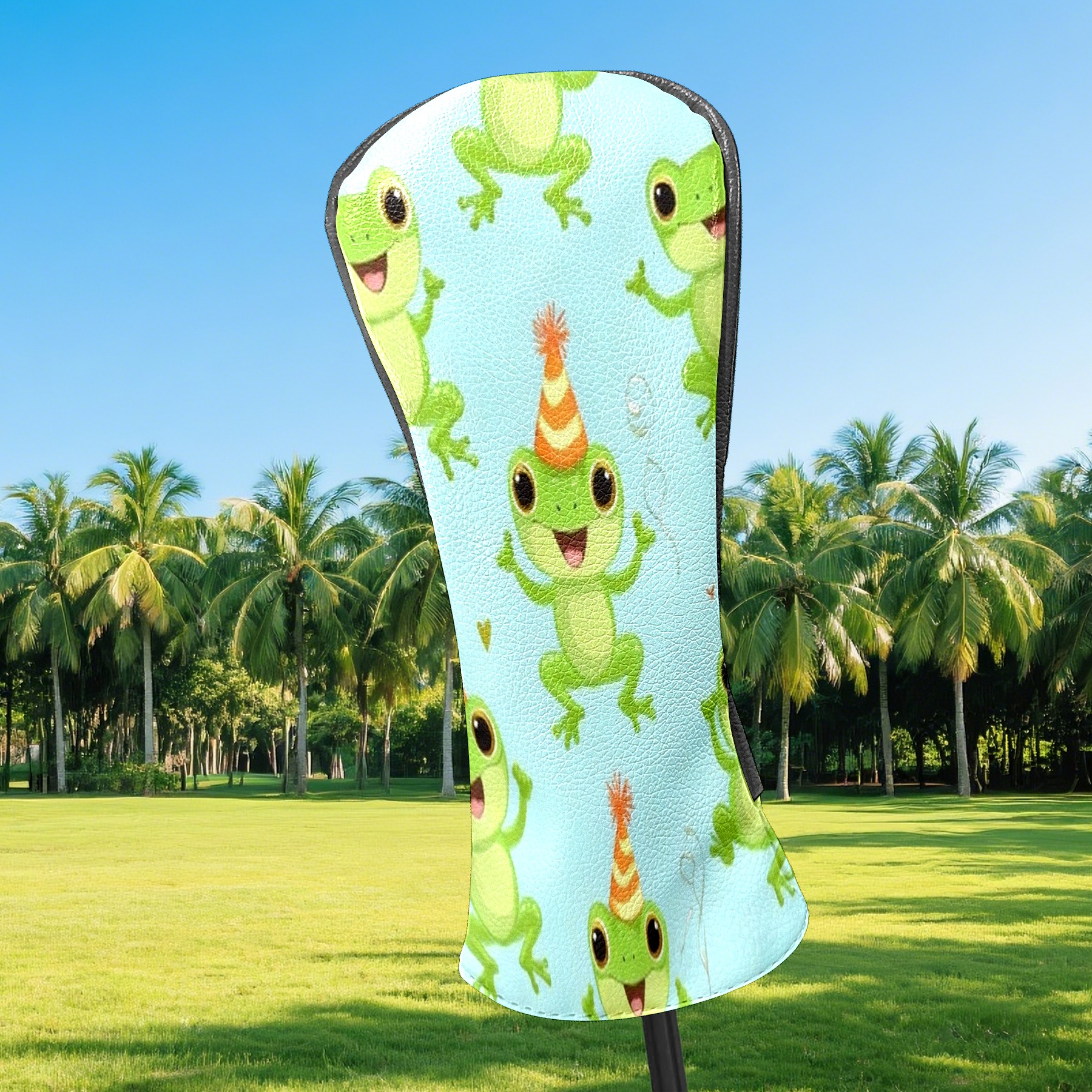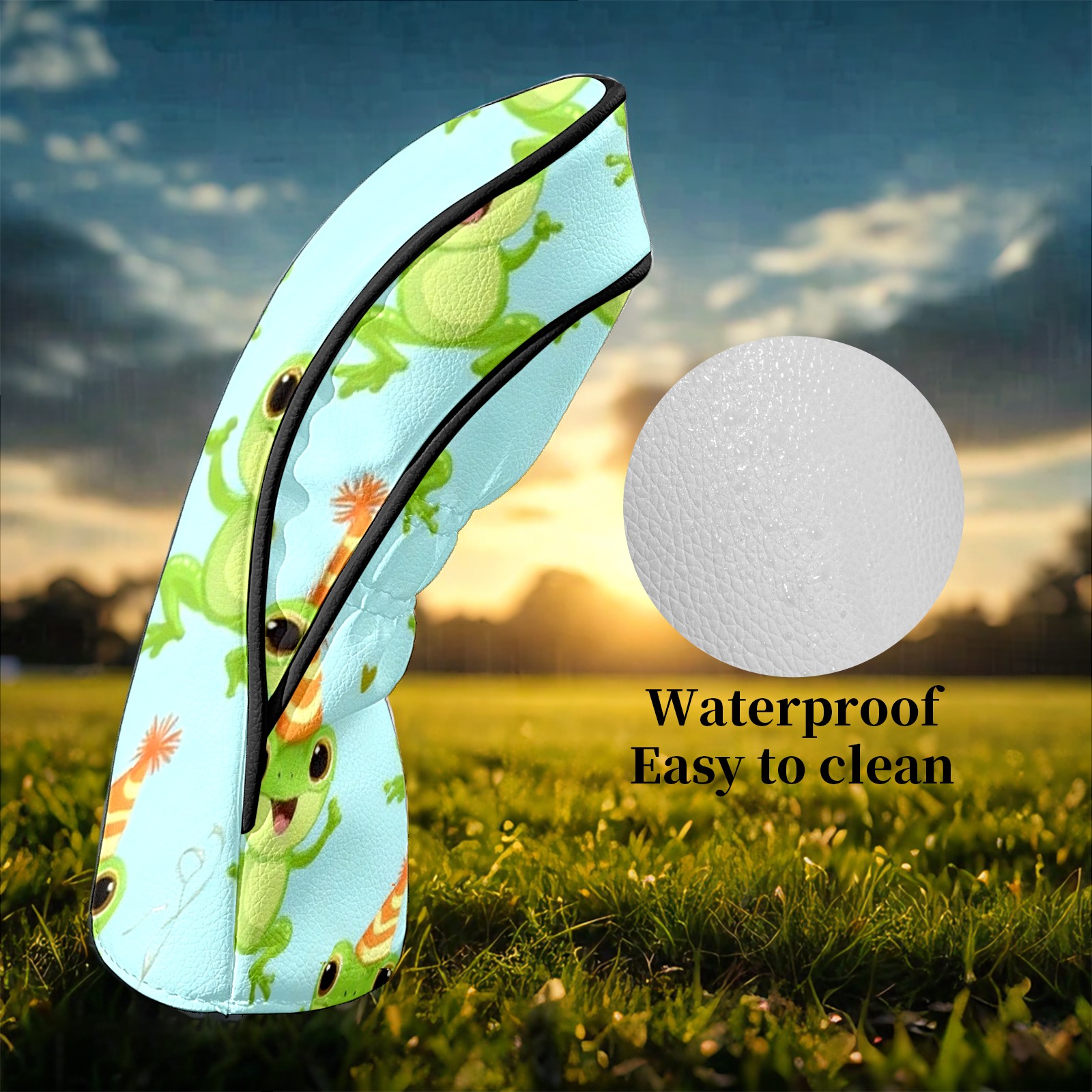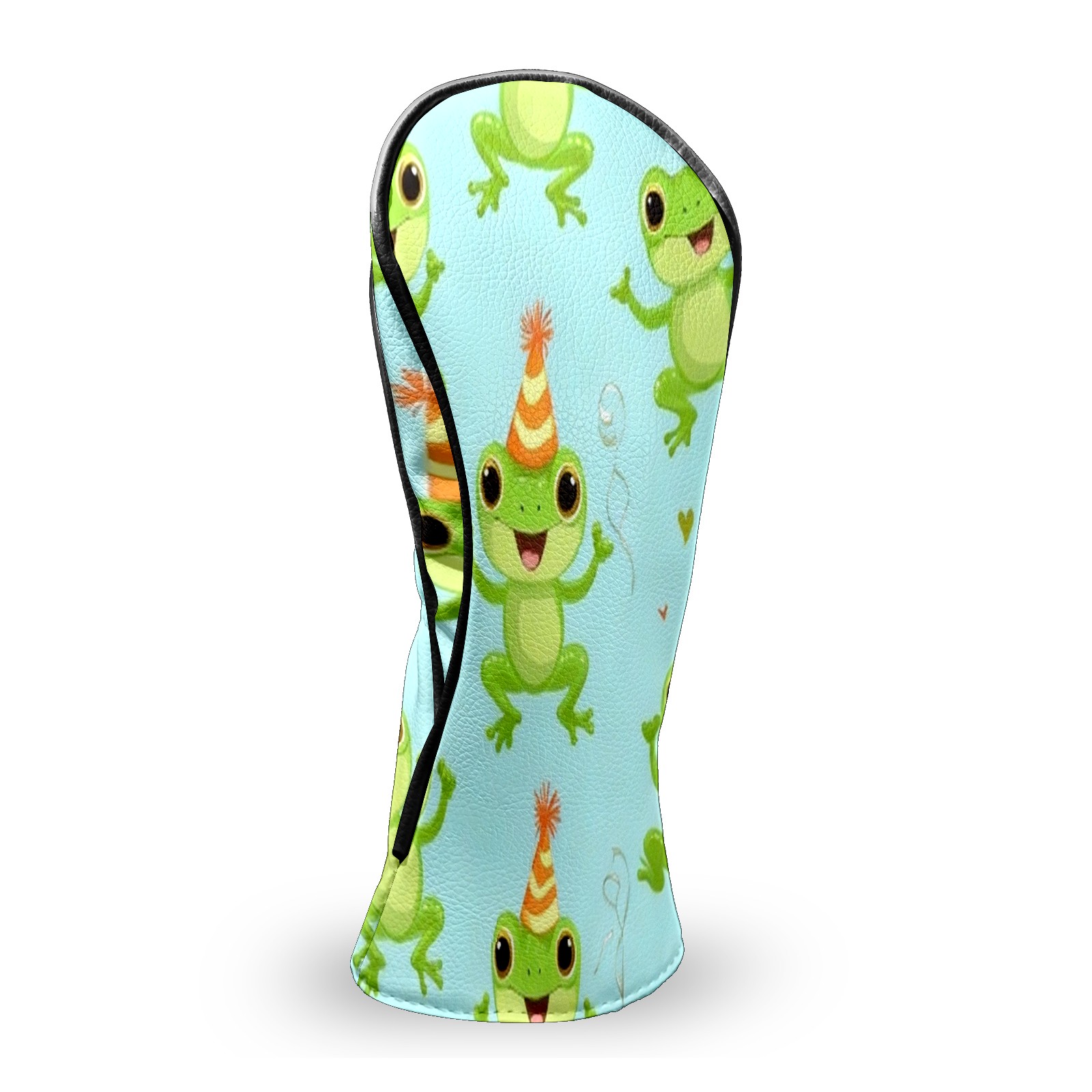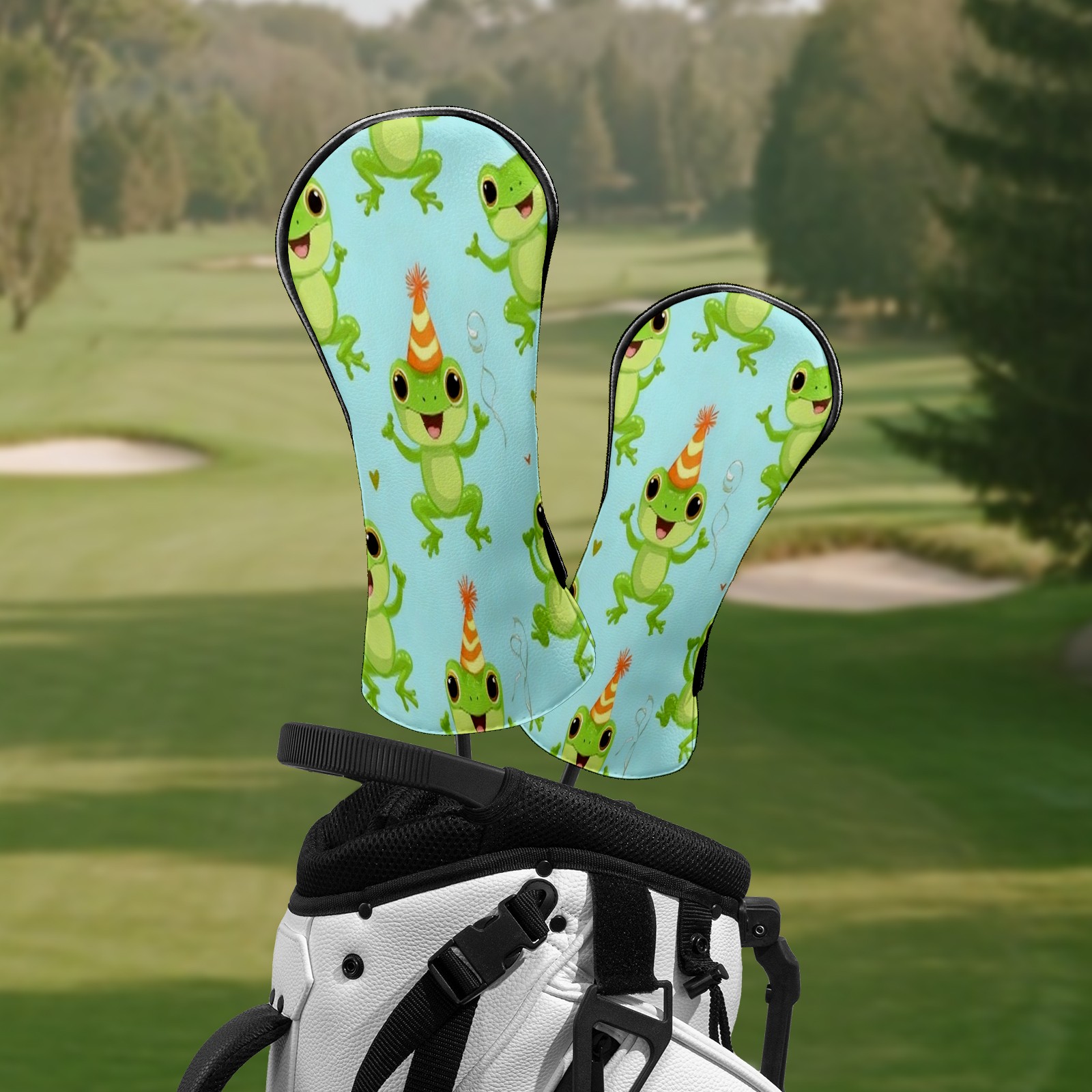 Golf Head Covers for Woods and Driver Waterproof Leather Golf Club Head Covers for Women Men Golf Driver Fairway Wood Headcover Cheerful Frog Celebration Mural