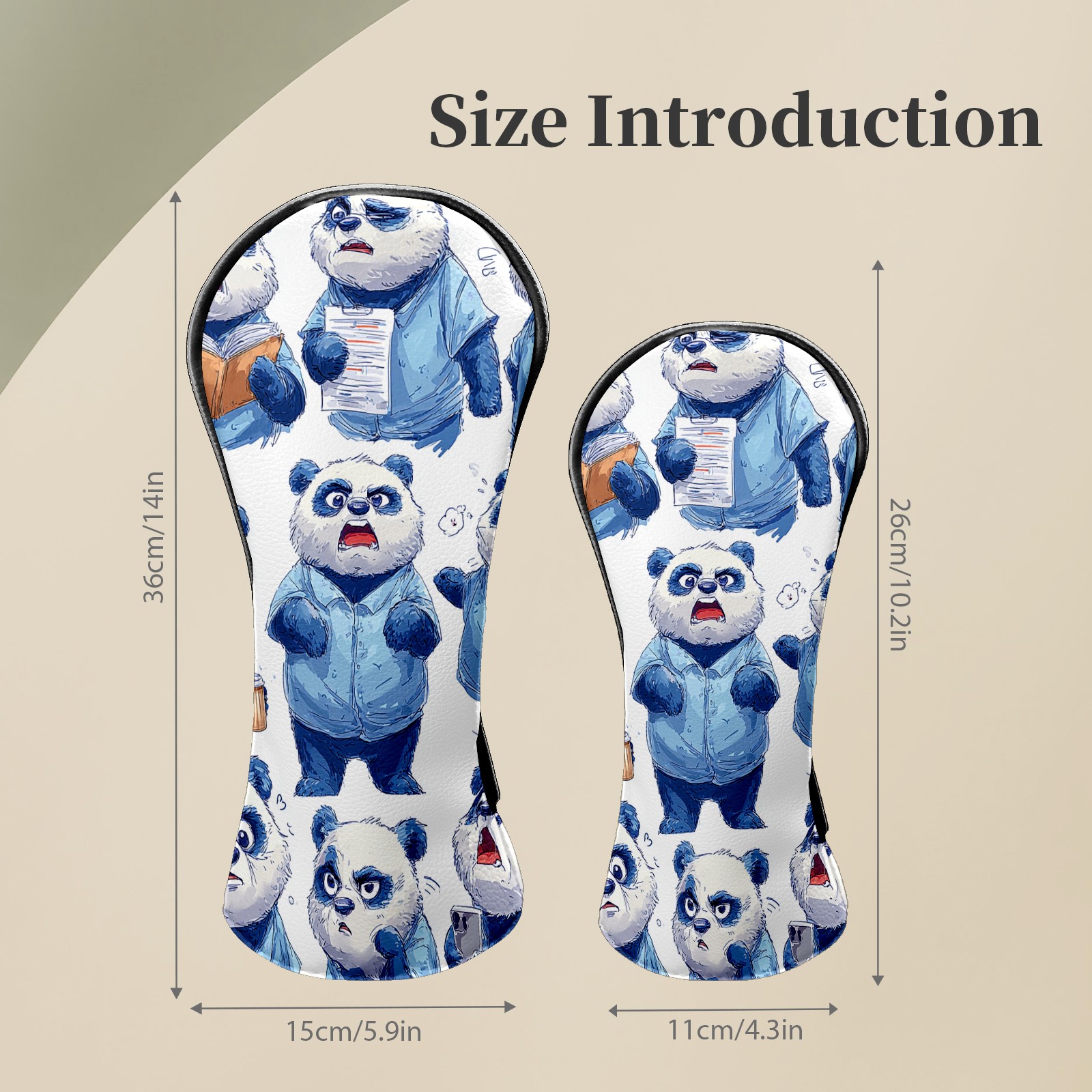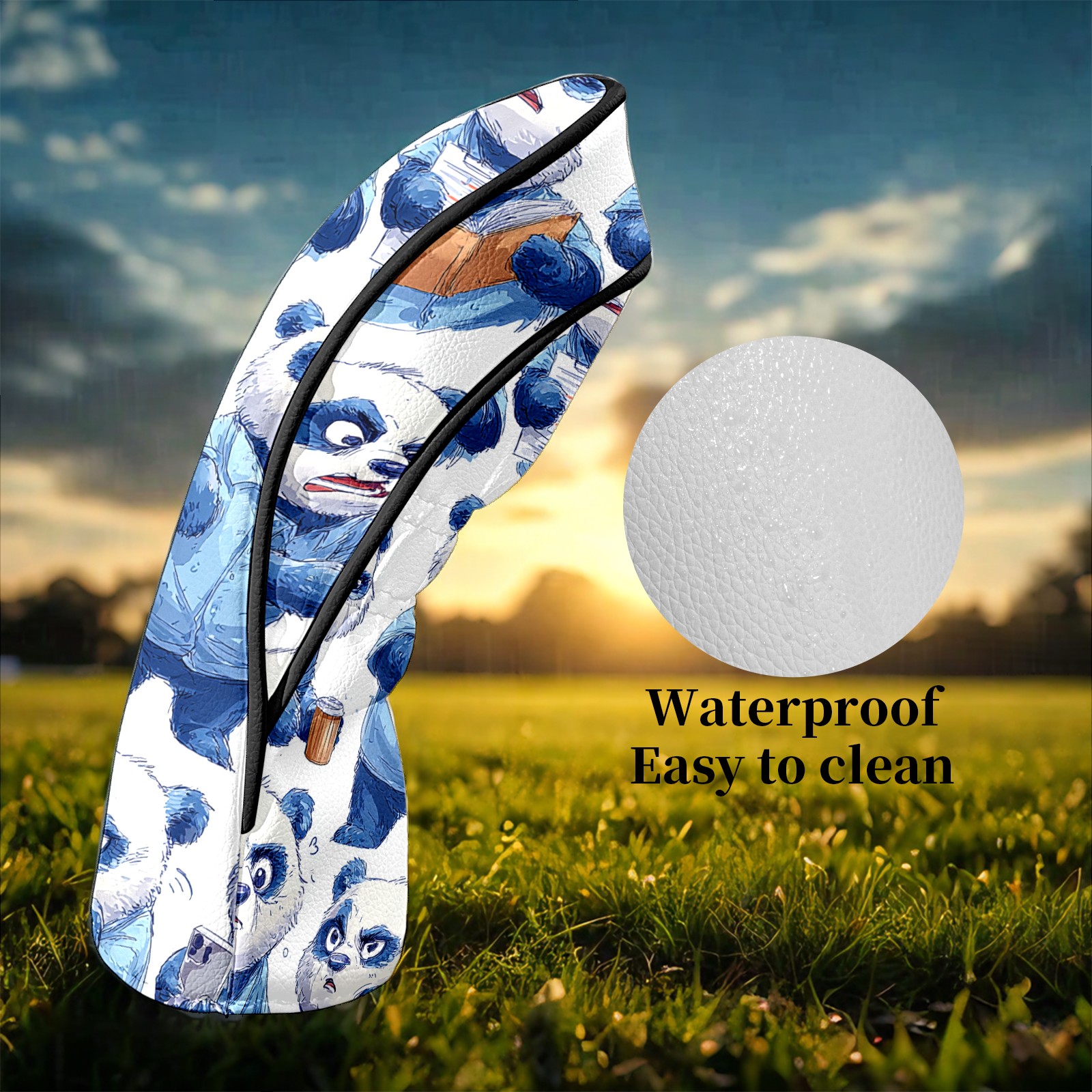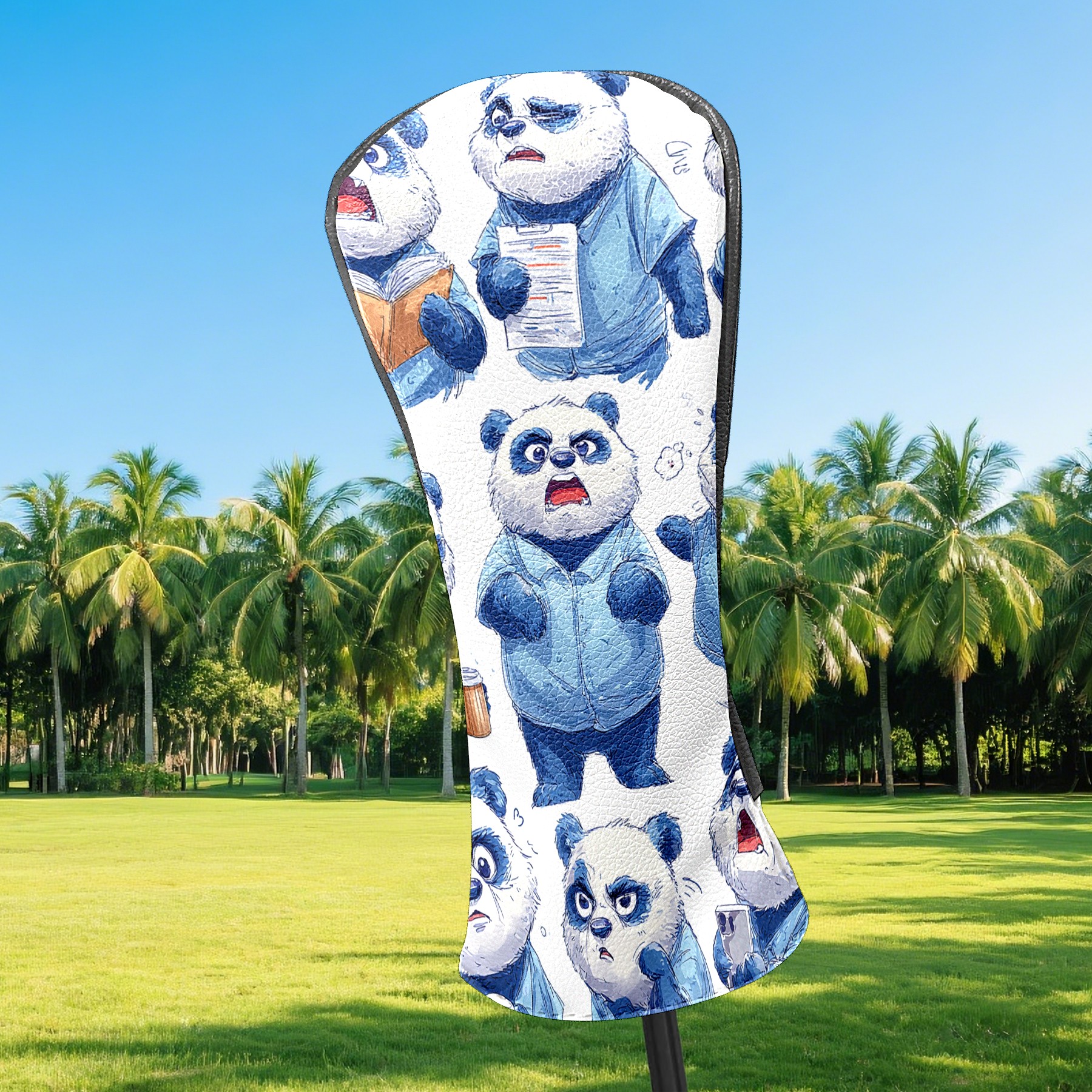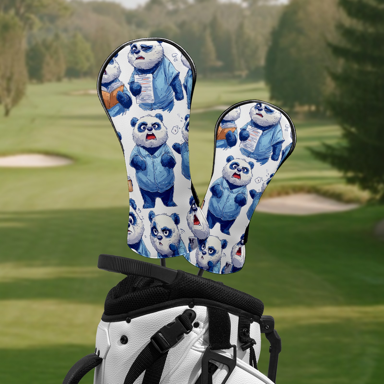 Golf Club Head Covers Funny Panda Blue Premium Plush Velvet Lining, Waterproof Golf Headcovers Driver & Fairway Woods for Scratch Protection Novelty Gift for Men & Women