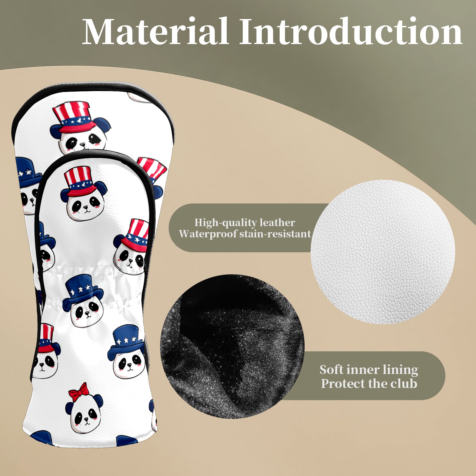 Golf Club Head Covers Cute Panda White Premium Plush Velvet Lining, Waterproof Golf Headcovers Driver & Fairway Woods for Scratch Protection Novelty Gift for Men & Women