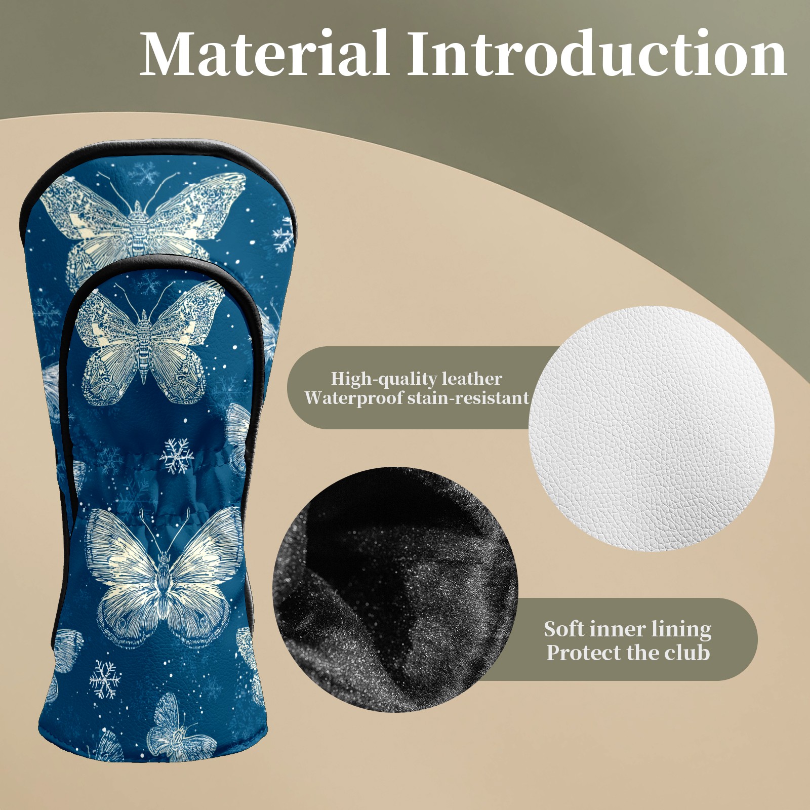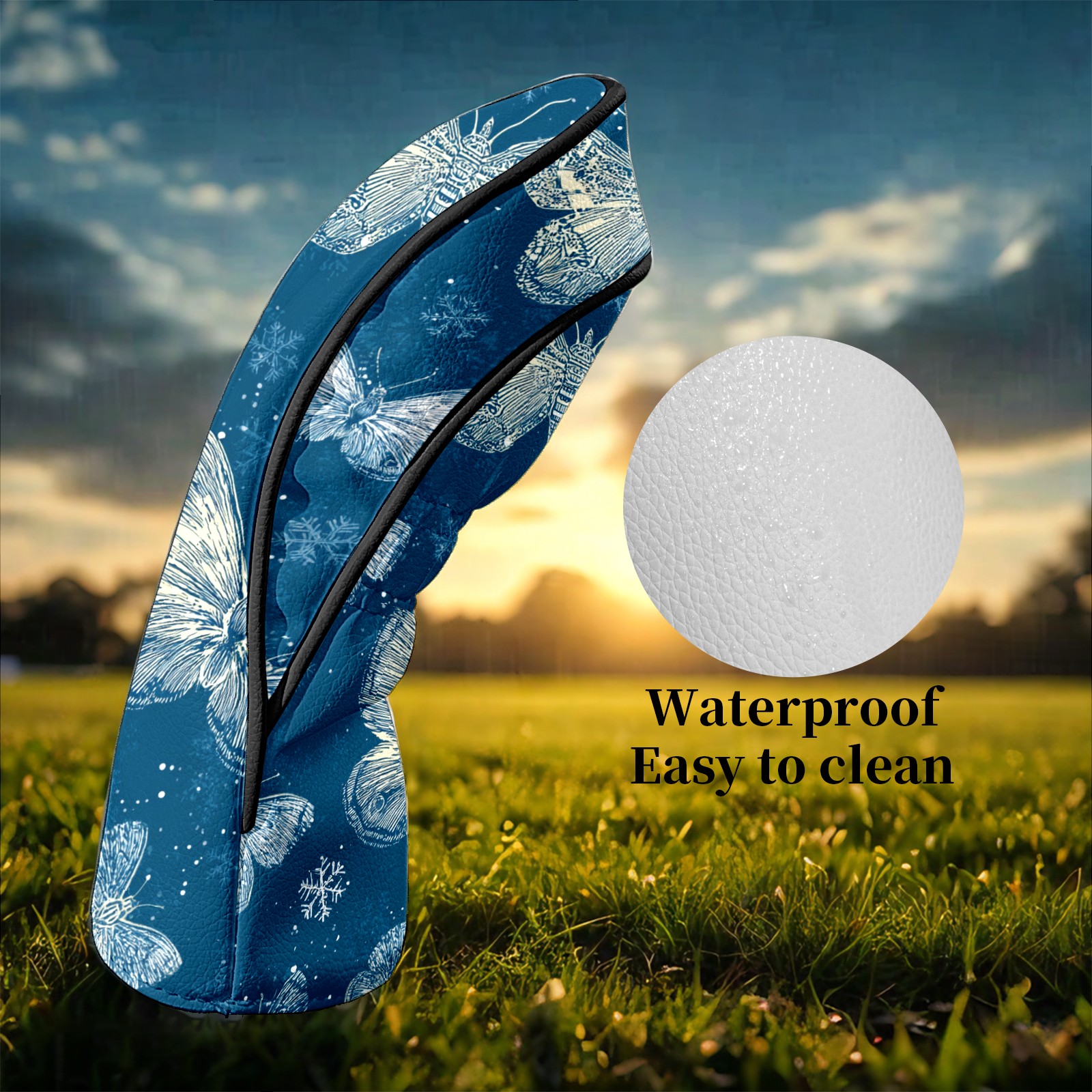 Golf Club Head Covers Dreamy Butterfly Blue Premium Plush Velvet Lining, Waterproof Golf Headcovers Driver & Fairway Woods for Scratch Protection Novelty Gift for Men & Women