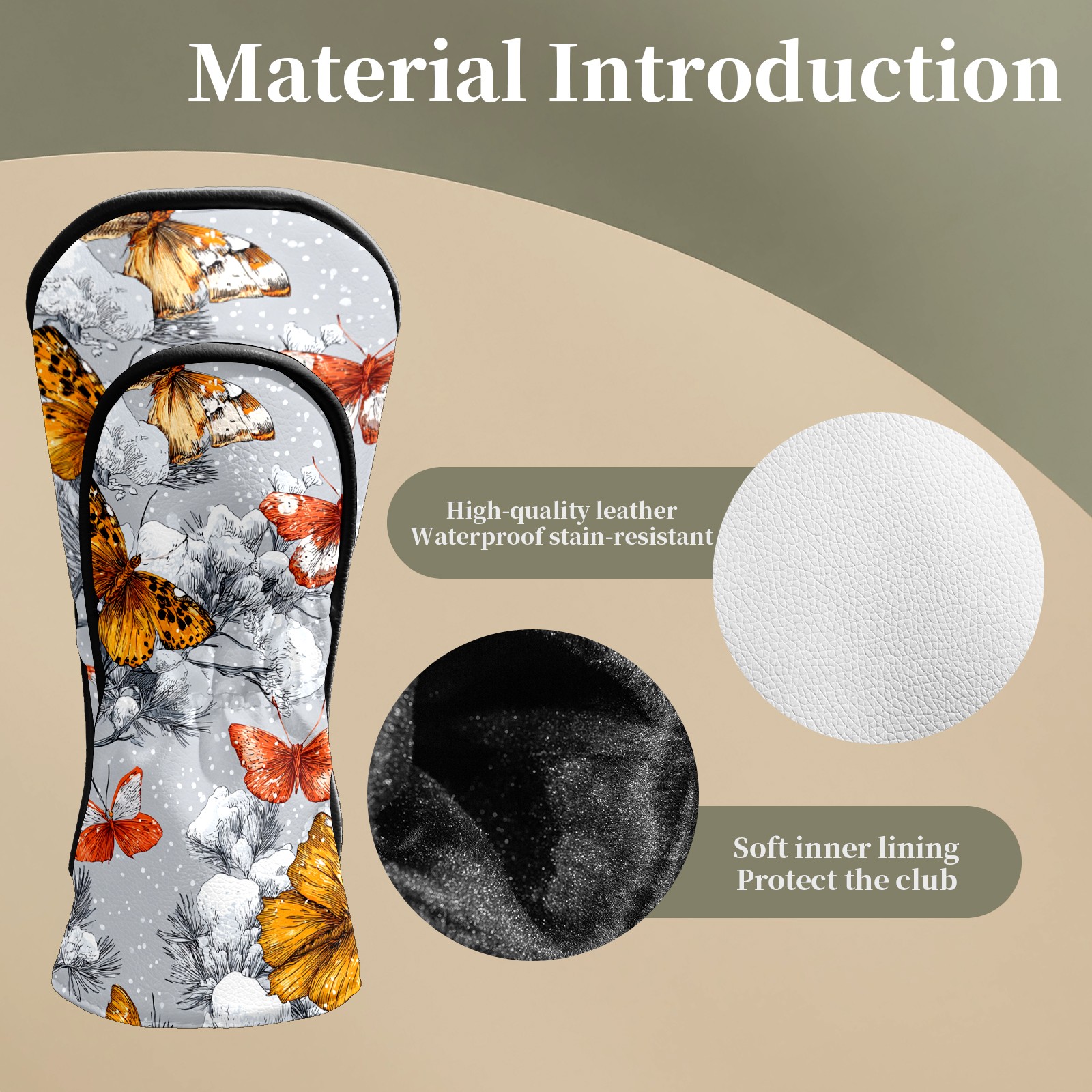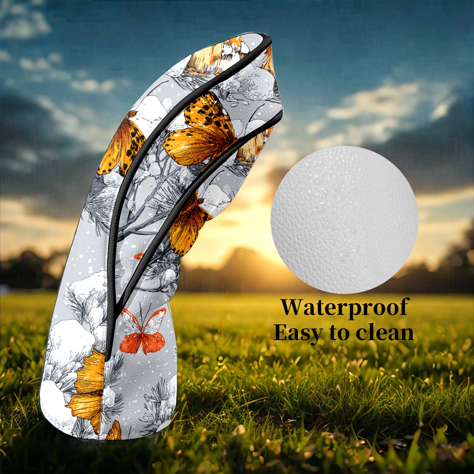Golf Club Head Covers Elegant Butterfly Black Premium Plush Velvet Lining, Waterproof Golf Headcovers Driver & Fairway Woods for Scratch Protection Novelty Gift for Men & Women