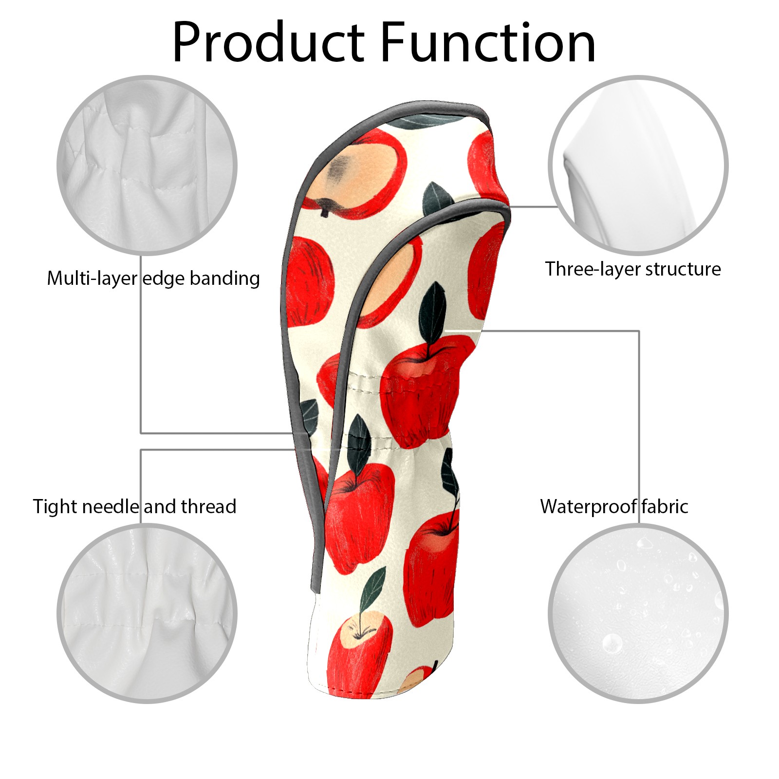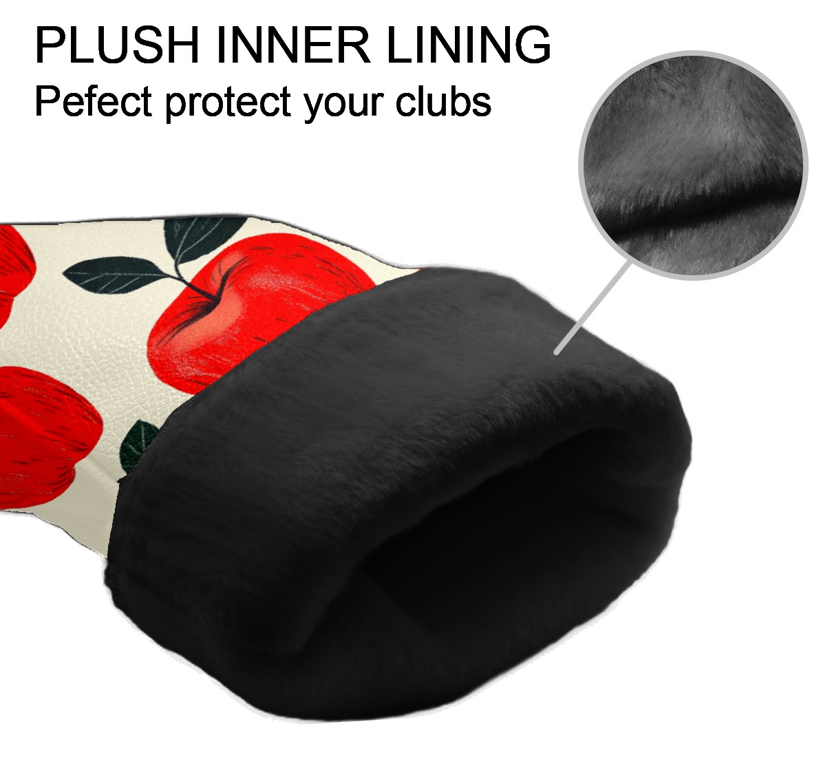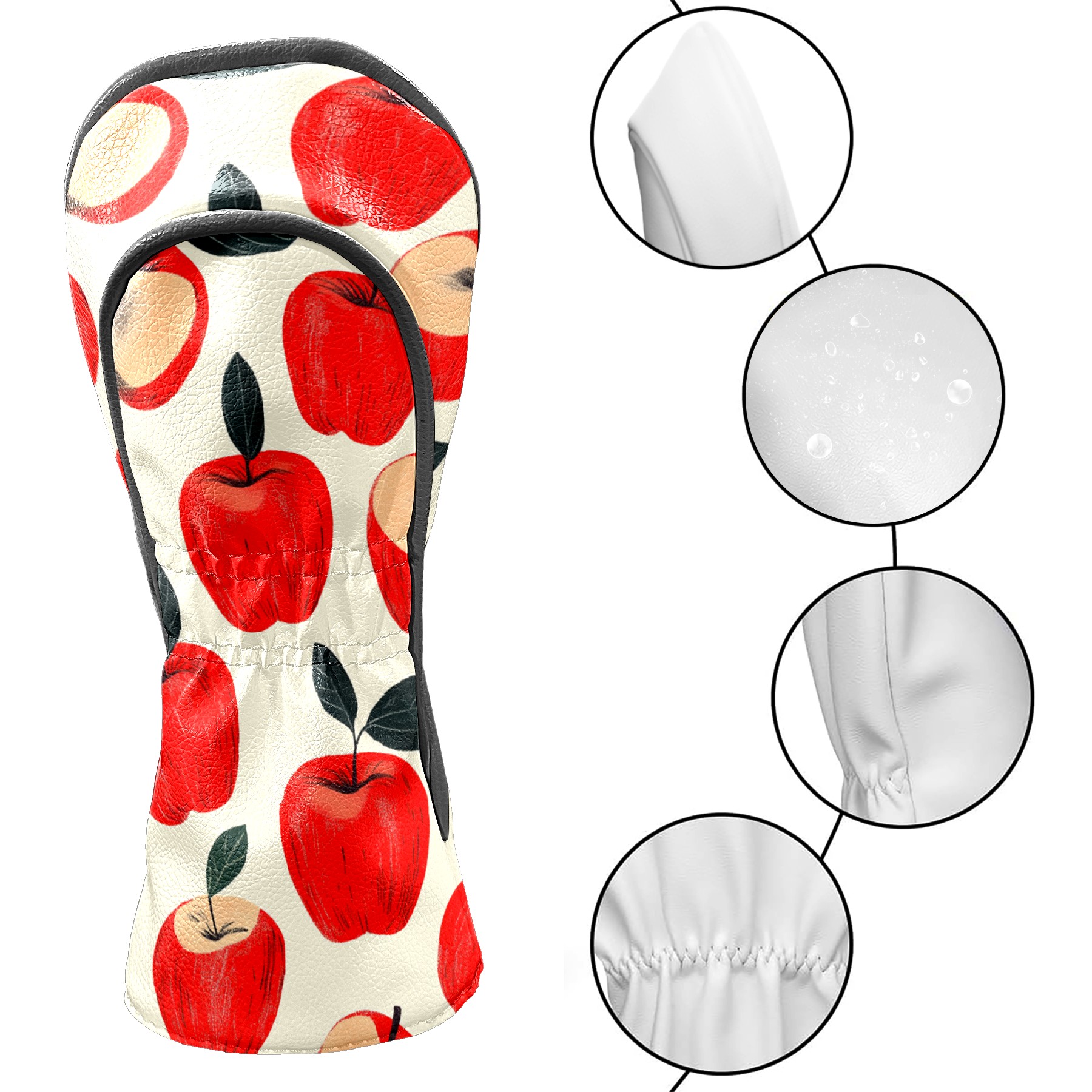 Golf Club Head Cover, High Quality PU Leather Driver and Wood Club Head Cover with Anti-Scratch Lining, Red Apple Universal Gift for Men and Women