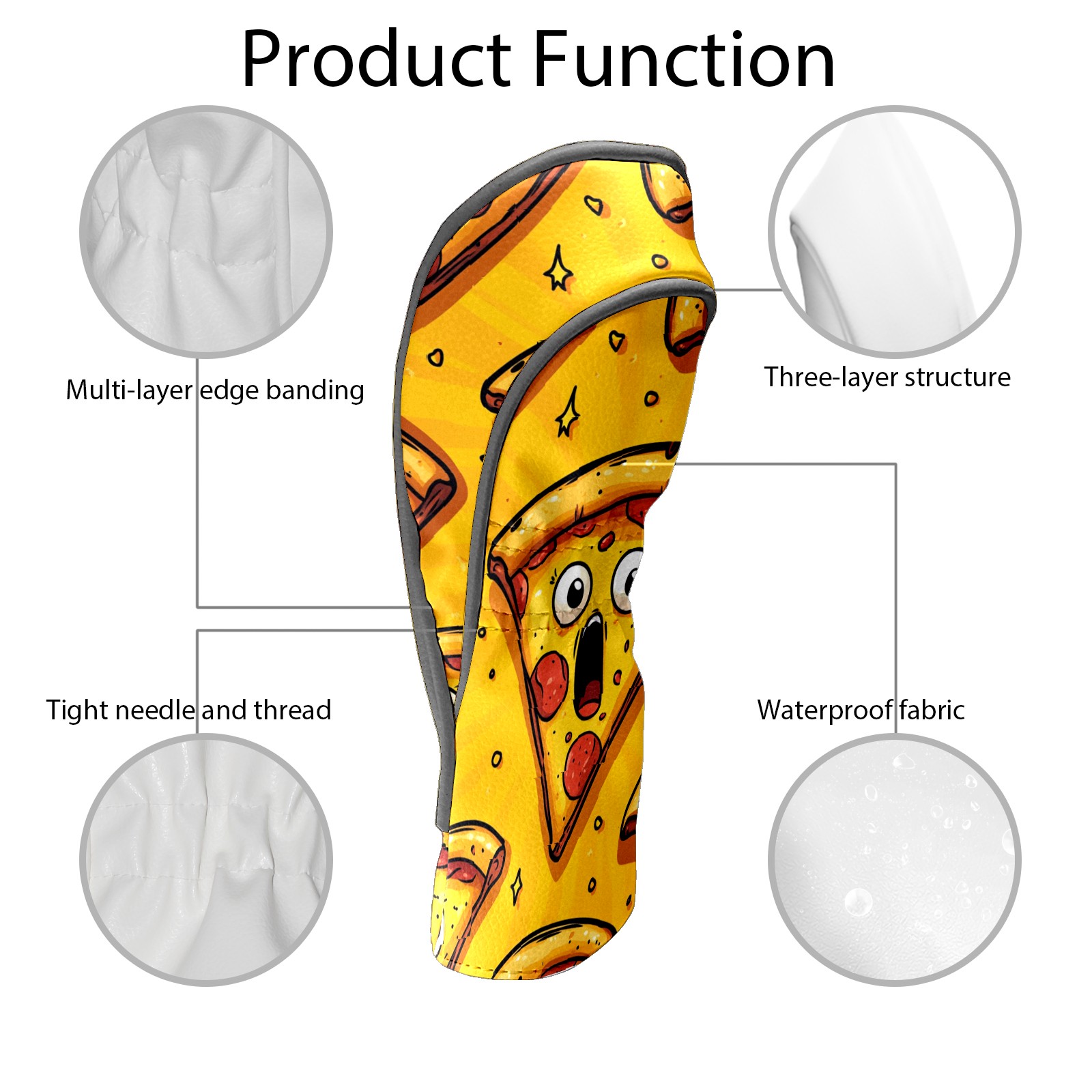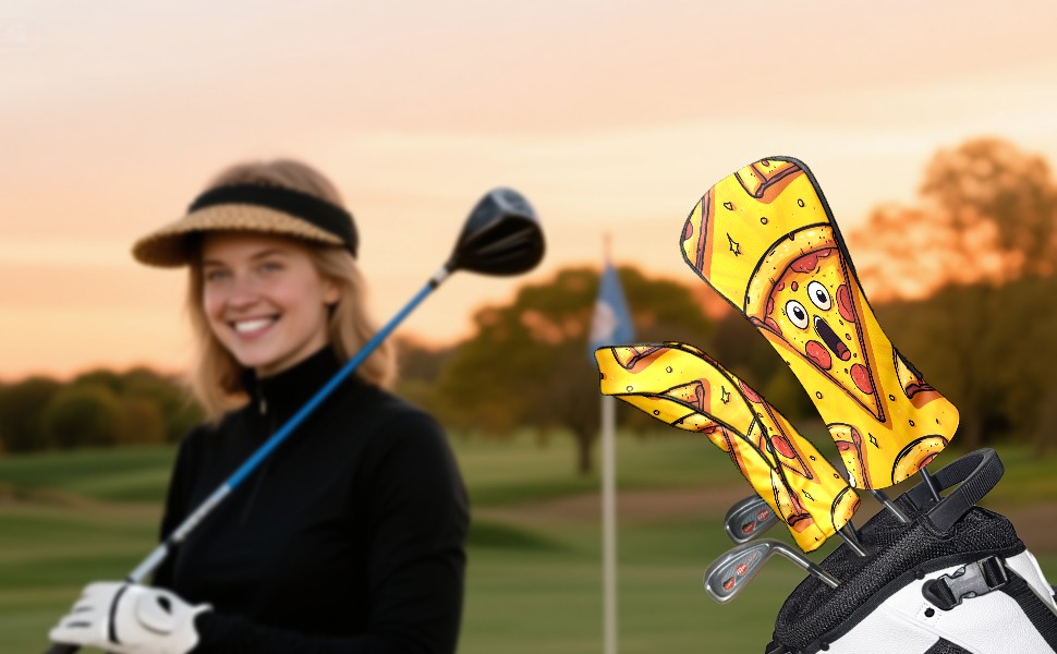 Golf Club Head Cover, High Quality PU Leather Driver and Wood Club Head Cover with Anti-Scratch Lining, Funny Pizza Universal Gift for Men and Women