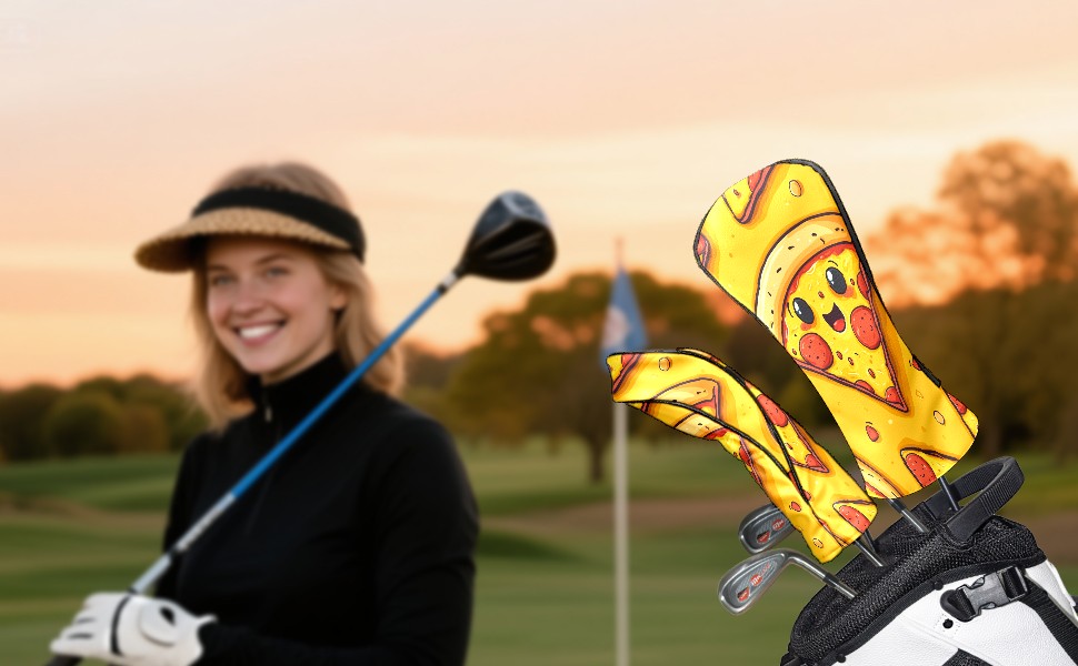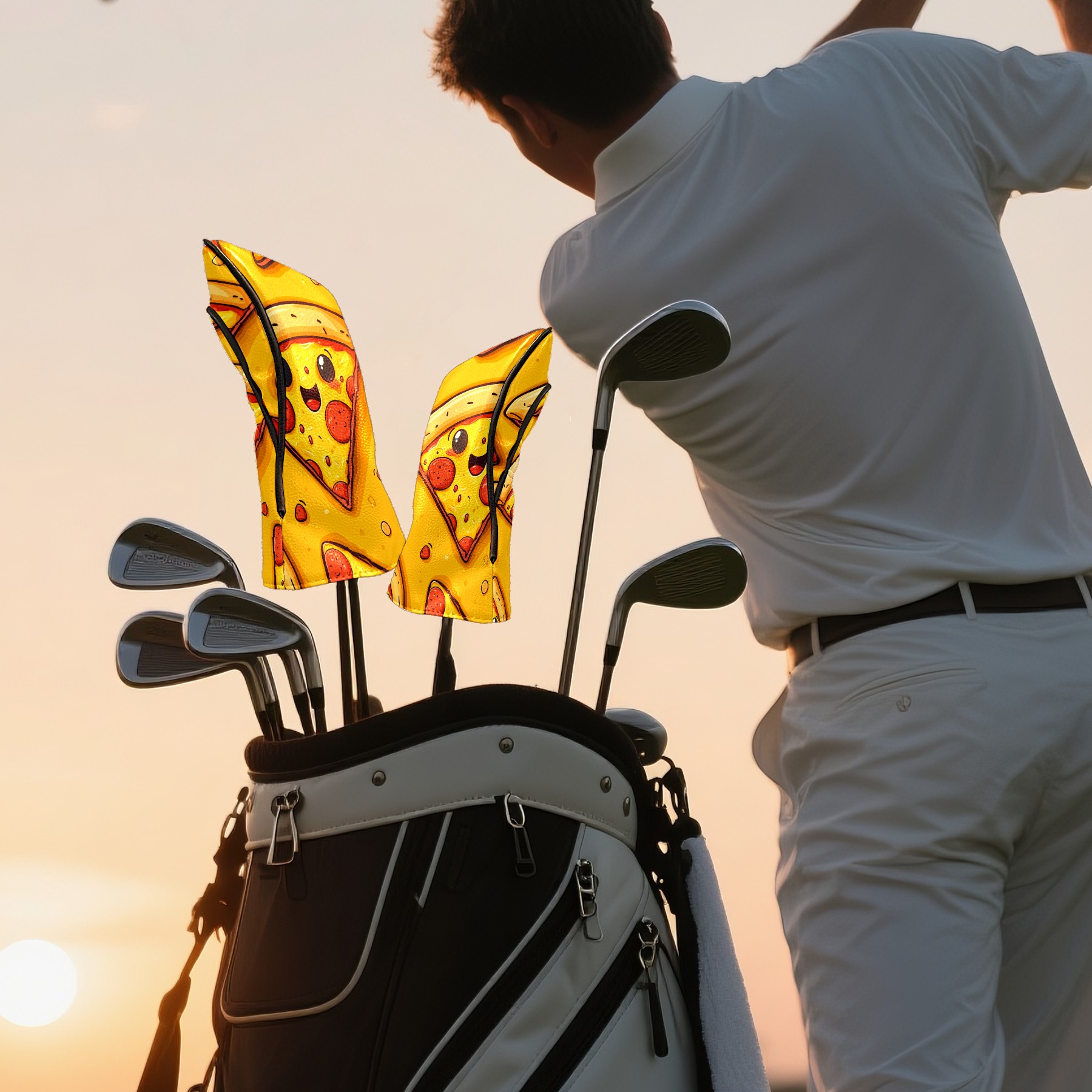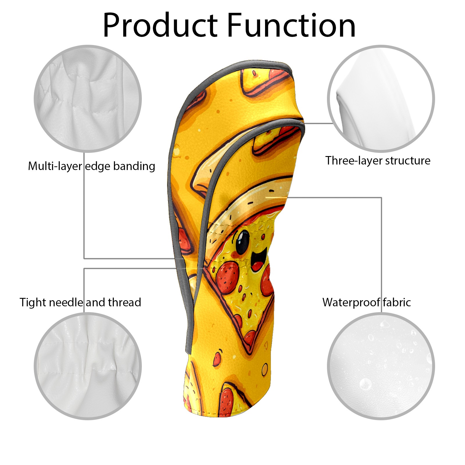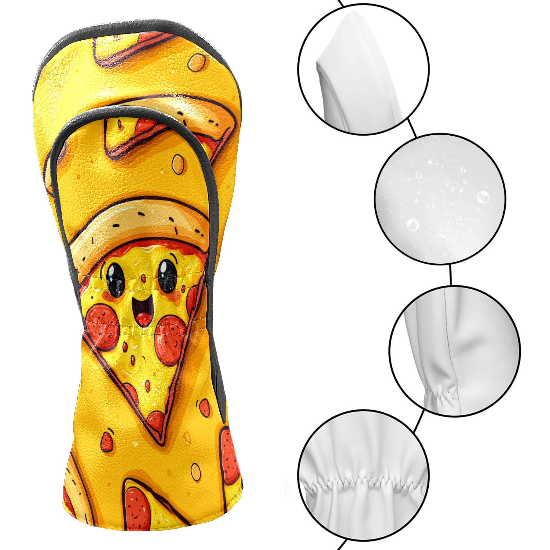 Golf Club Head Cover, High Quality PU Leather Driver and Wood Club Head Cover with Anti-Scratch Lining, Interesting Pizza Universal Gift for Men and Women