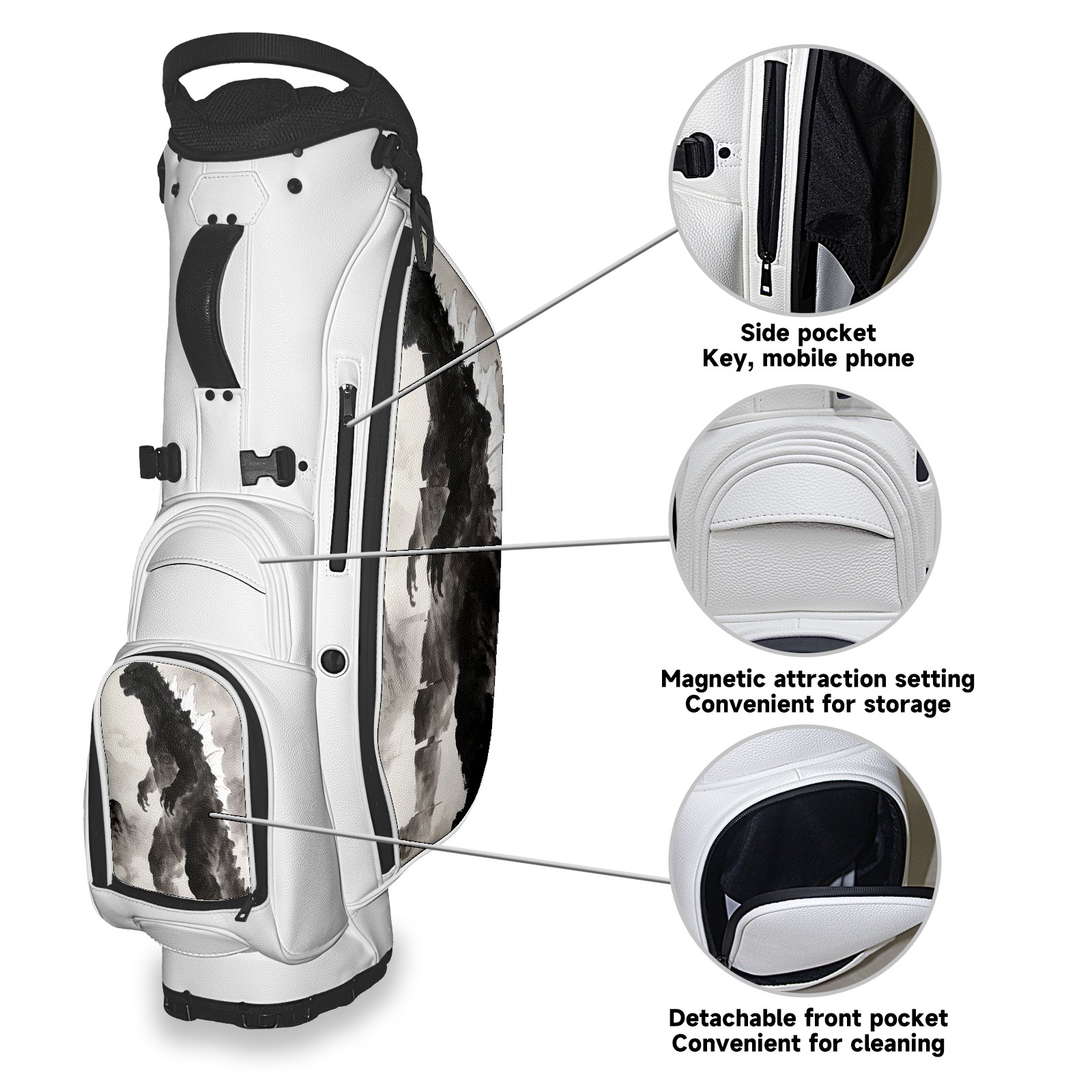• <p>The Golf Stand Bag, designed specifically for golf enthusiasts, offers a choice of 5 - way and 14 - way top dividers. Its 5/14 - compartment design with independent full - size club compartments safeguards clubs from collisions. Equipped with a rain cover, waterproof zippered pockets (tested to resist moderate to heavy rain), and a high - performance cooler pouch that can keep drinks cold for hours, it ensures a convenient golfing experience. The bag features thickened, breathable neoprene shoulder straps and an adjustable chest buckle, reducing shoulder fatigue by 35% compared to regular bags, and its automatic aluminum alloy stand provides stable support on various terrains. Crafted from top - tier, water - resistant litchi - grain PU leather, with double - stitched edges, reliable zippers tested for over 15,000 cycles, and anti - abrasion bottom studs, it guarantees durability. You can personalize it with embroidery on the front pocket and rain cover side (15*15cm area), and it comes in classic black and white, with a matte finish and litchi - grain texture that combines business and leisure styles. Measuring 130 cm in height, 37 cm in width, and 31 cm in depth (including rain cover) and 90 cm x 31 cm x 37 cm (excluding rain cover), it strikes a balance between storage and portability, capable of holding 14 standard - sized clubs and other essentials, and it also includes a dust cover. It's truly the perfect choice for golfers.<br></p>