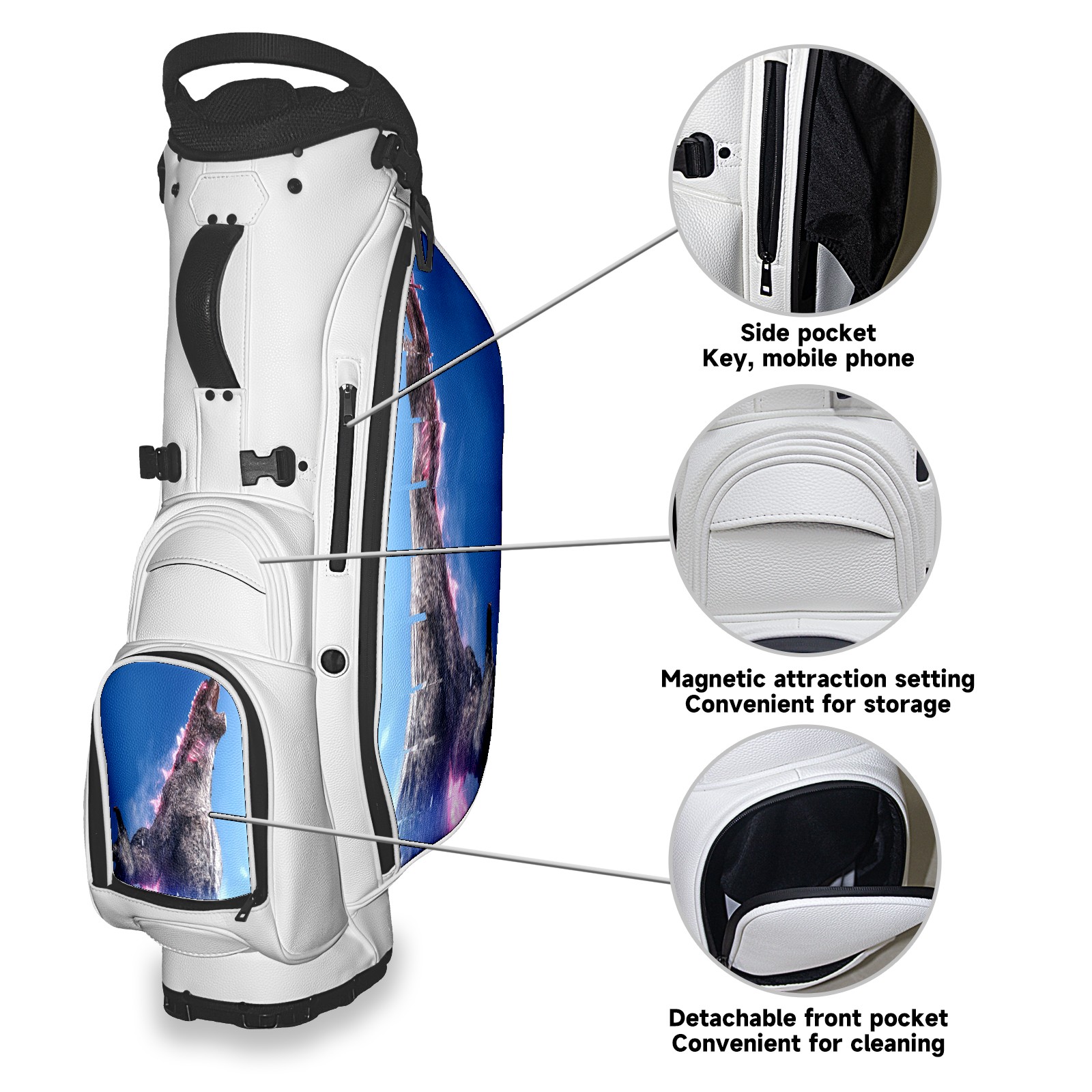• <p>The Golf Stand Bag, designed specifically for golf enthusiasts, offers a choice of 5 - way and 14 - way top dividers. Its 5/14 - compartment design with independent full - size club compartments safeguards clubs from collisions. Equipped with a rain cover, waterproof zippered pockets (tested to resist moderate to heavy rain), and a high - performance cooler pouch that can keep drinks cold for hours, it ensures a convenient golfing experience. The bag features thickened, breathable neoprene shoulder straps and an adjustable chest buckle, reducing shoulder fatigue by 35% compared to regular bags, and its automatic aluminum alloy stand provides stable support on various terrains. Crafted from top - tier, water - resistant litchi - grain PU leather, with double - stitched edges, reliable zippers tested for over 15,000 cycles, and anti - abrasion bottom studs, it guarantees durability. You can personalize it with embroidery on the front pocket and rain cover side (15*15cm area), and it comes in classic black and white, with a matte finish and litchi - grain texture that combines business and leisure styles. Measuring 130 cm in height, 37 cm in width, and 31 cm in depth (including rain cover) and 90 cm x 31 cm x 37 cm (excluding rain cover), it strikes a balance between storage and portability, capable of holding 14 standard - sized clubs and other essentials, and it also includes a dust cover. It's truly the perfect choice for golfers.<br></p>