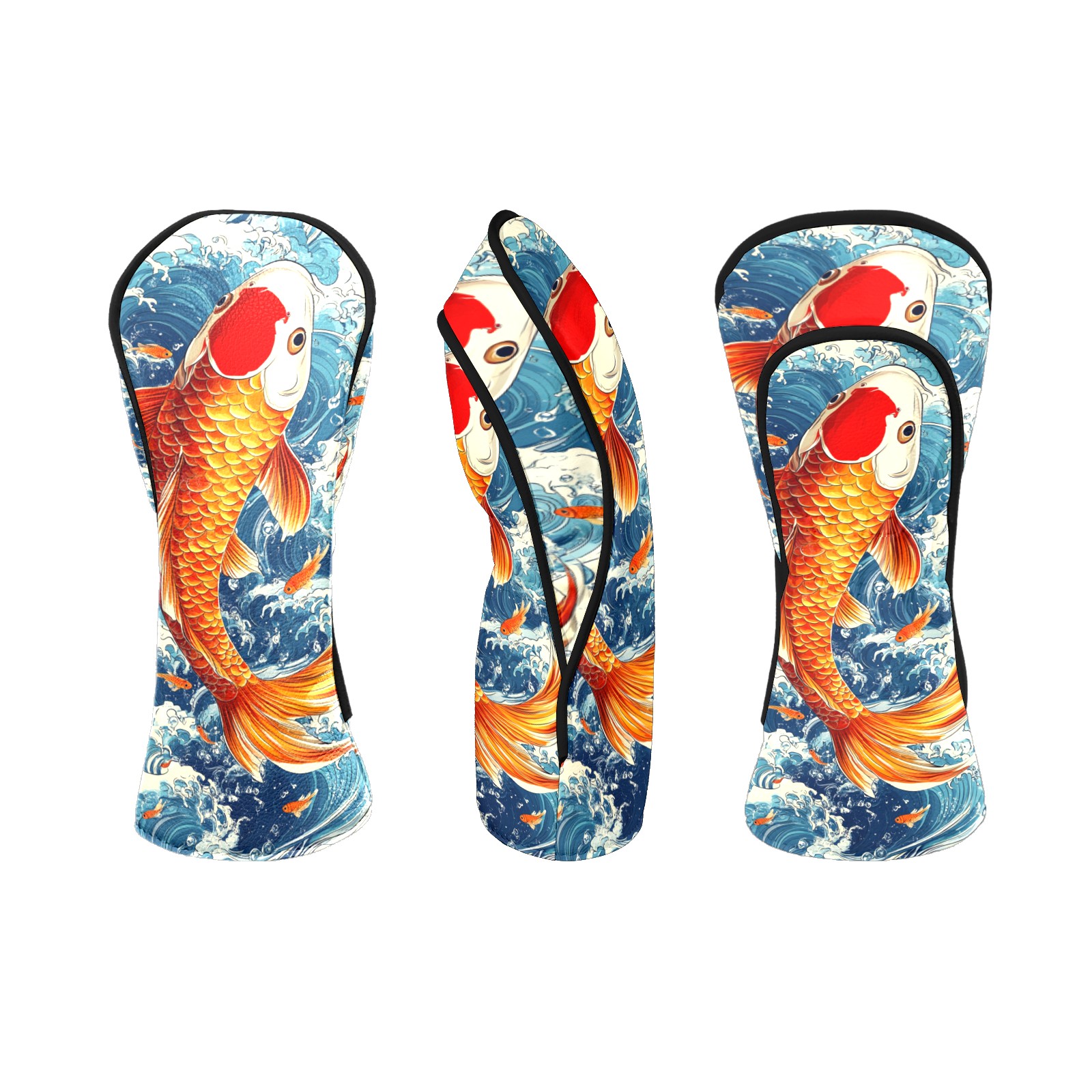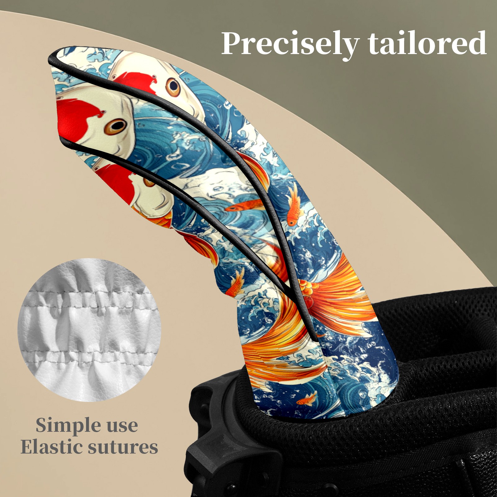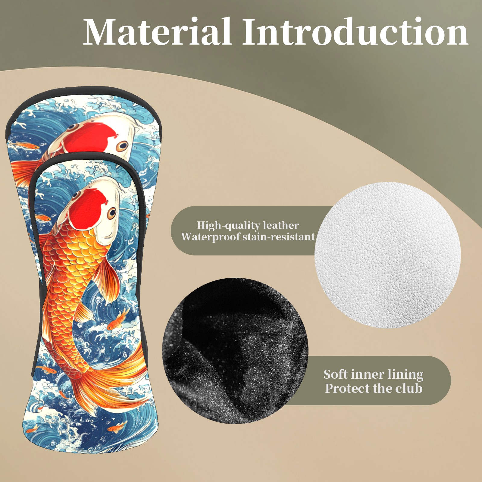 Golf Head Covers Fit Driver Headcover, Fairway Wood, and Hybrid Covers for Goldfish Pattern Design, Waterproof PU Leather, Classic Golf Gift & Accessories for Golfers