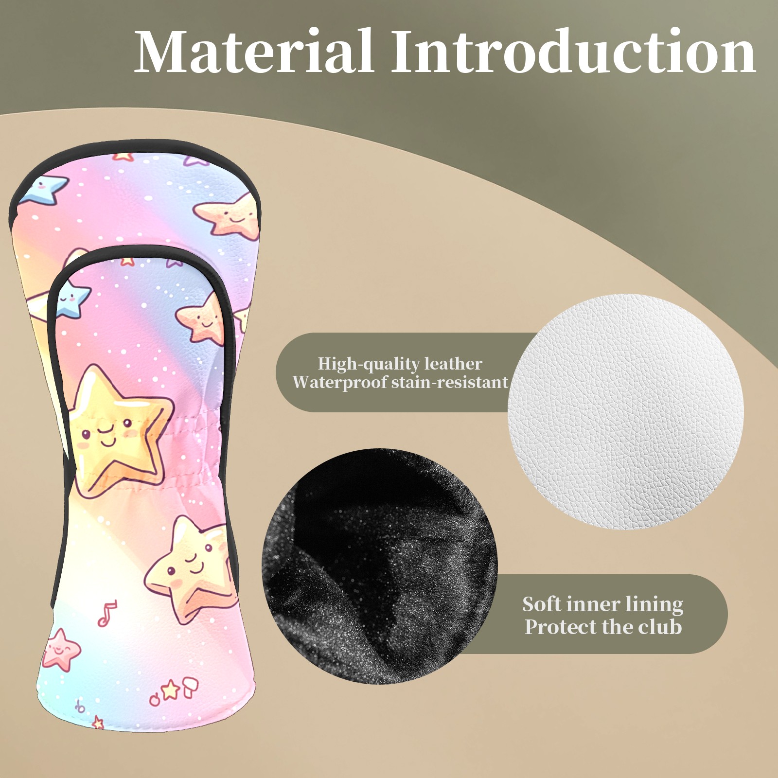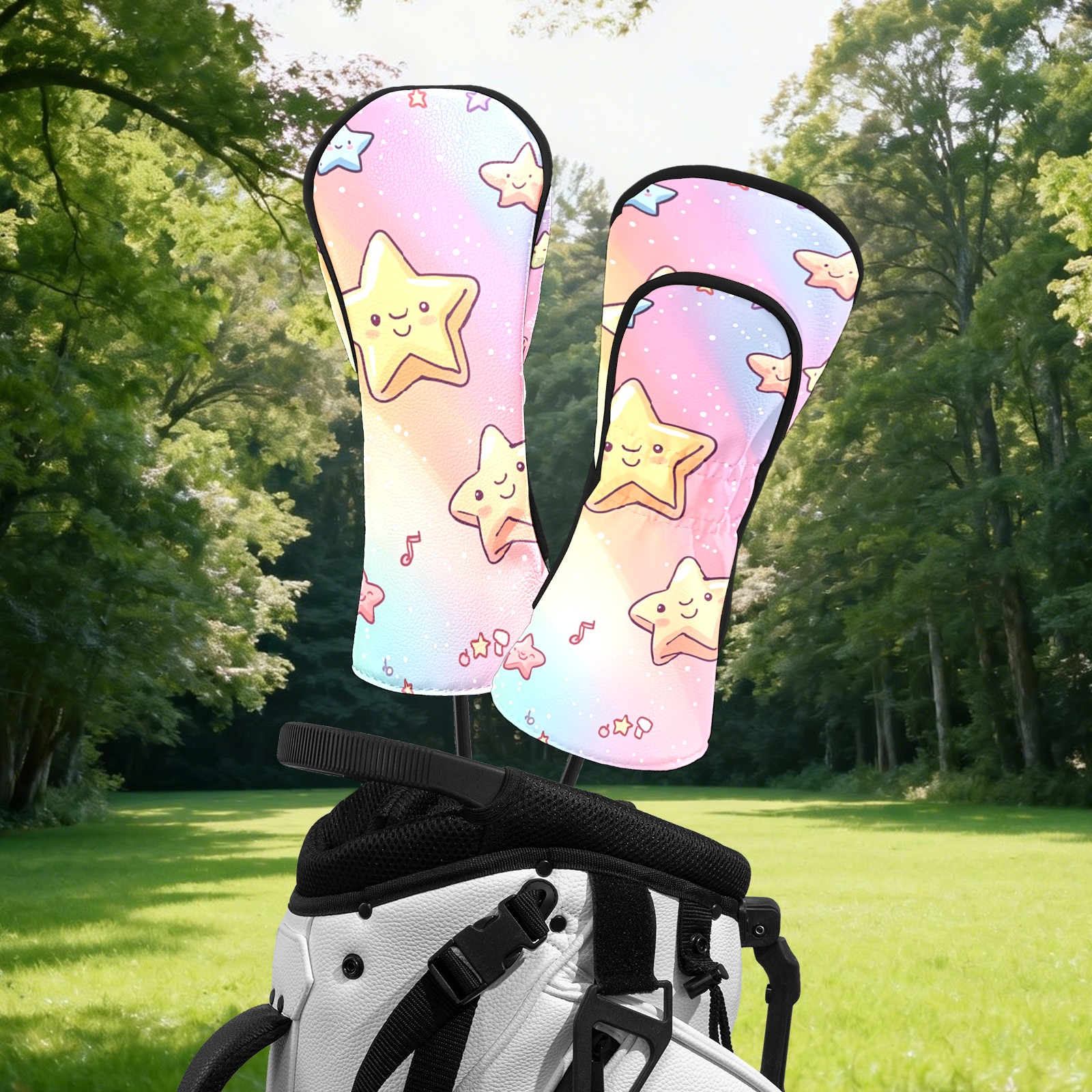 Golf Head Covers Fit Driver Headcover, Fairway Wood, and Hybrid Covers for Colorful Star Pattern Design, Waterproof PU Leather, Classic Golf Gift & Accessories for Golfers