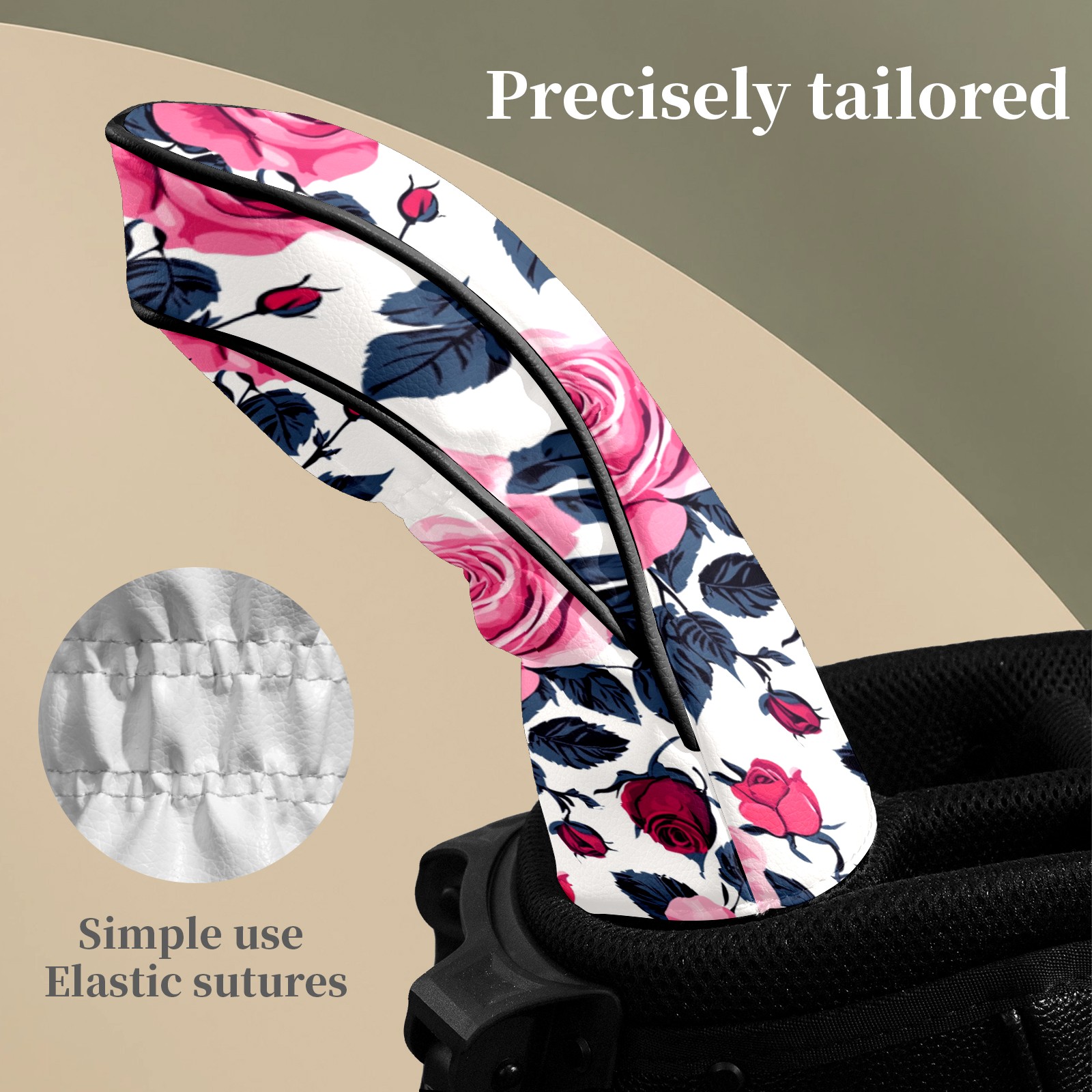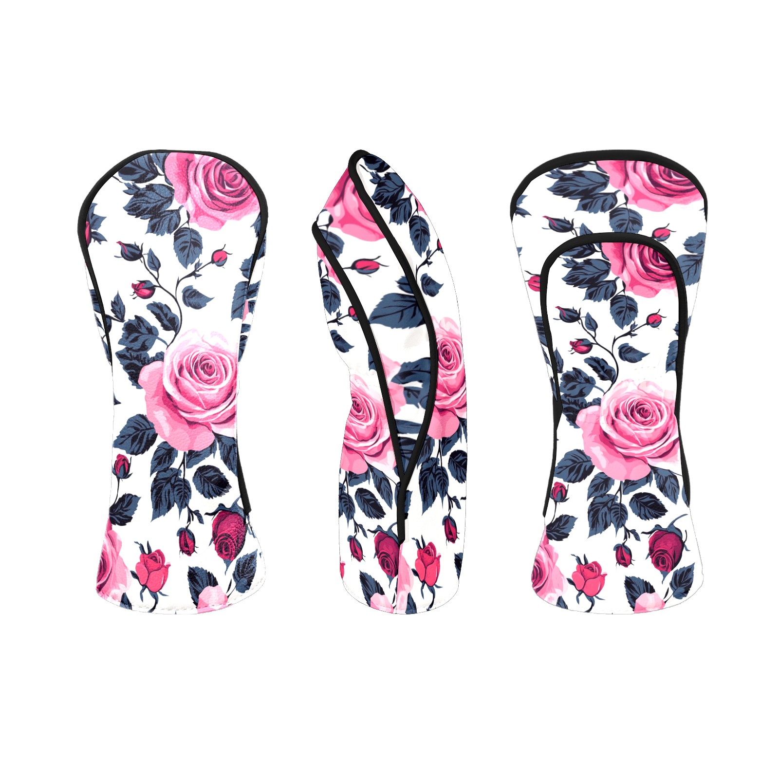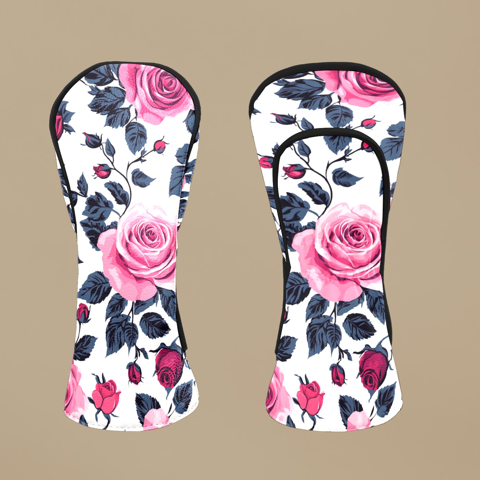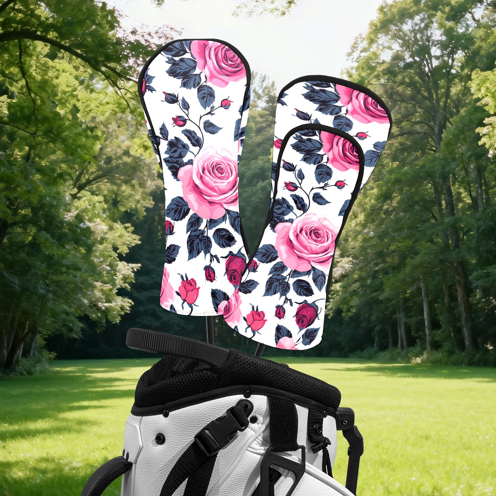 Golf Head Covers Fit Driver Headcover, Fairway Wood, and Hybrid Covers for Pink Rose Pattern Design, Waterproof PU Leather, Classic Golf Gift & Accessories for Golfers