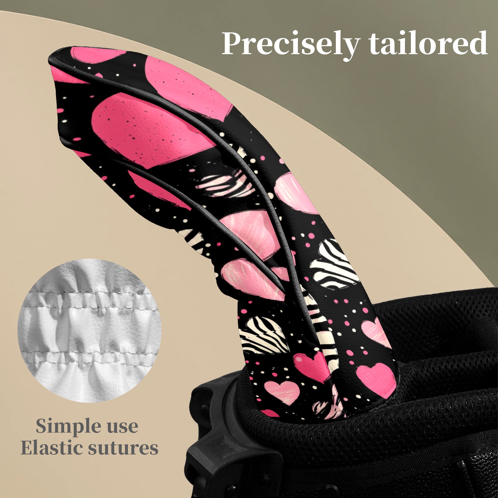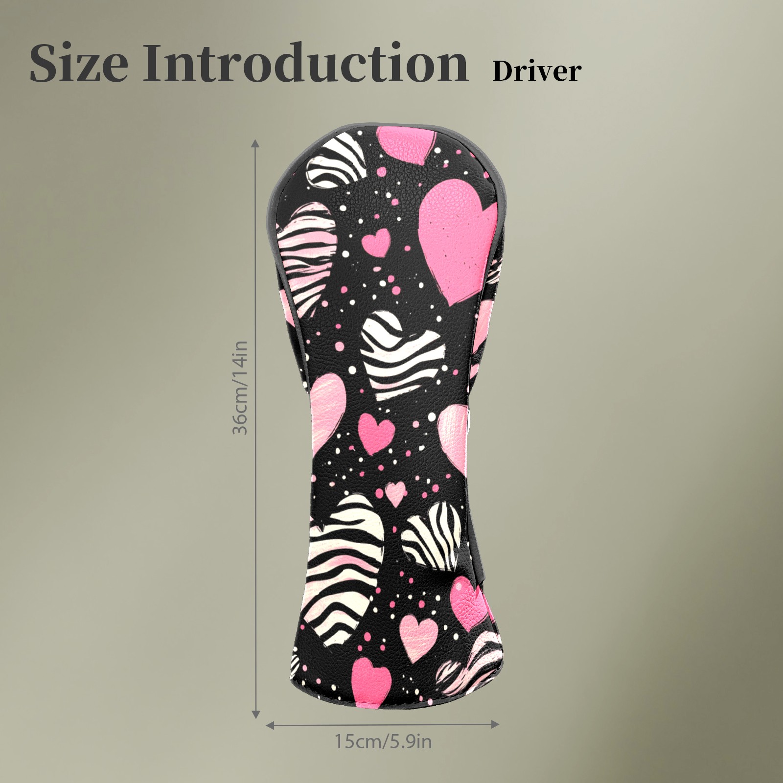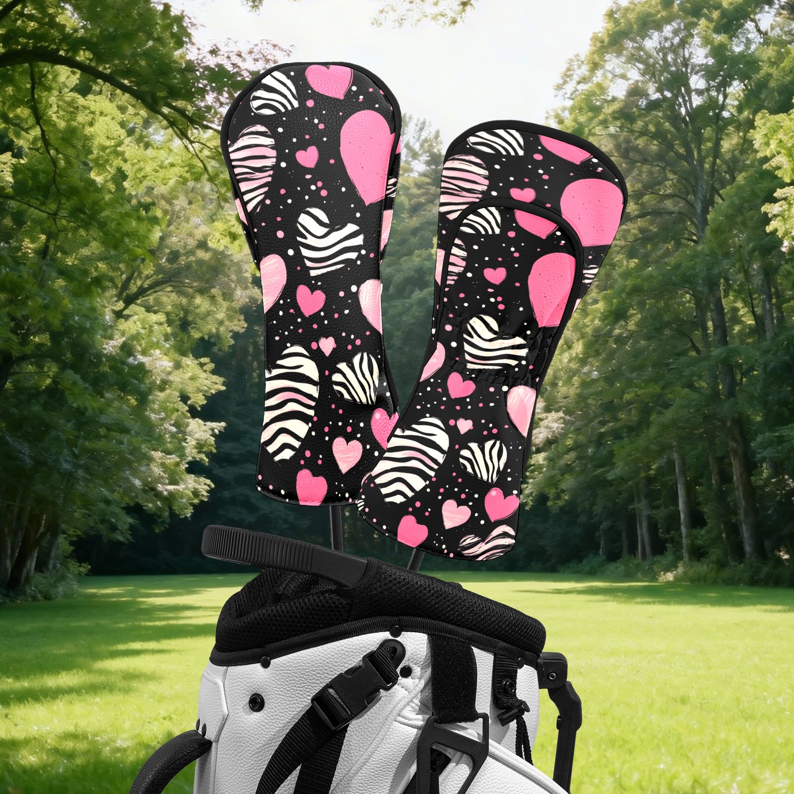 Golf Head Covers Fit Driver Headcover, Fairway Wood, and Hybrid Covers for Pink Heart Pattern Design, Waterproof PU Leather, Classic Golf Gift & Accessories for Golfers