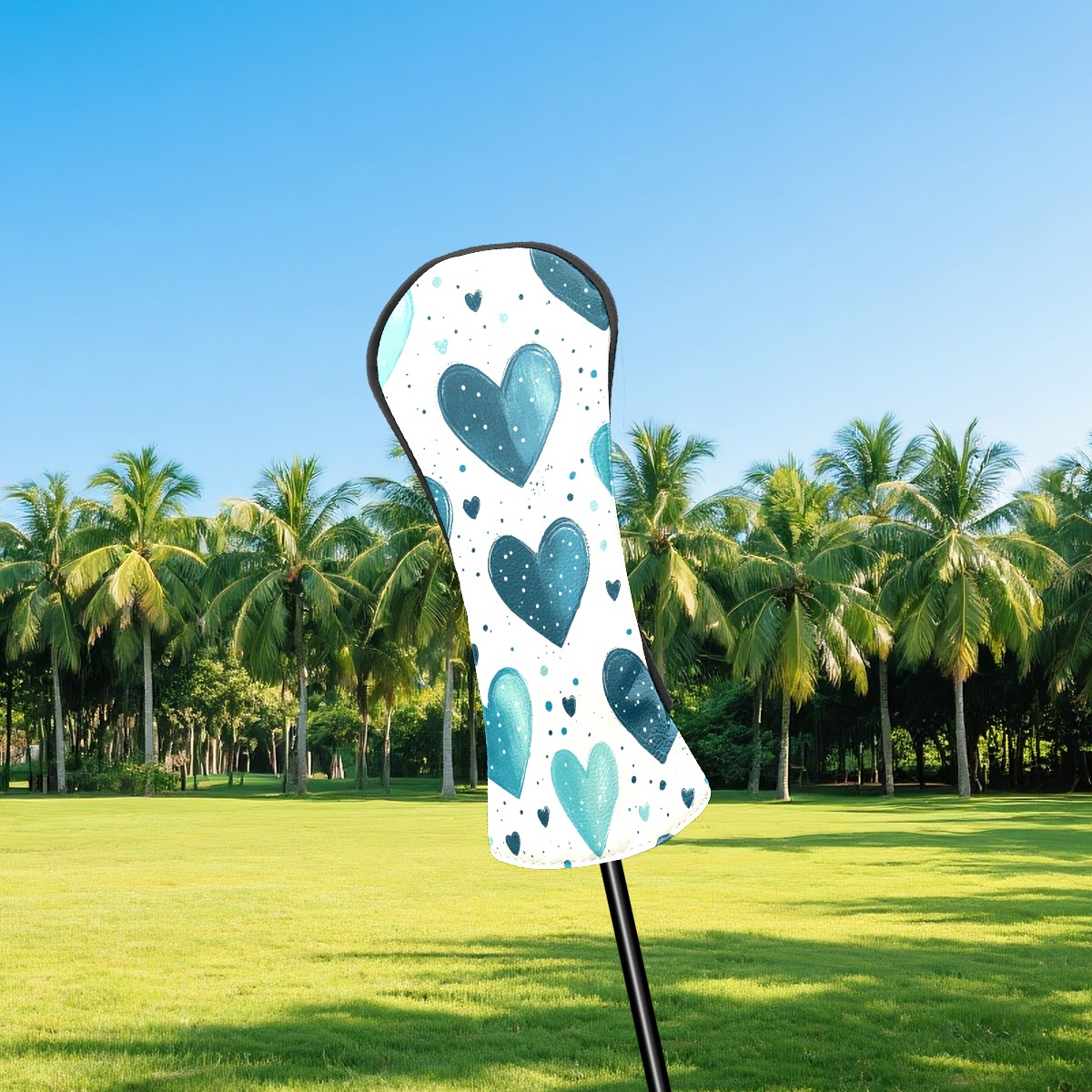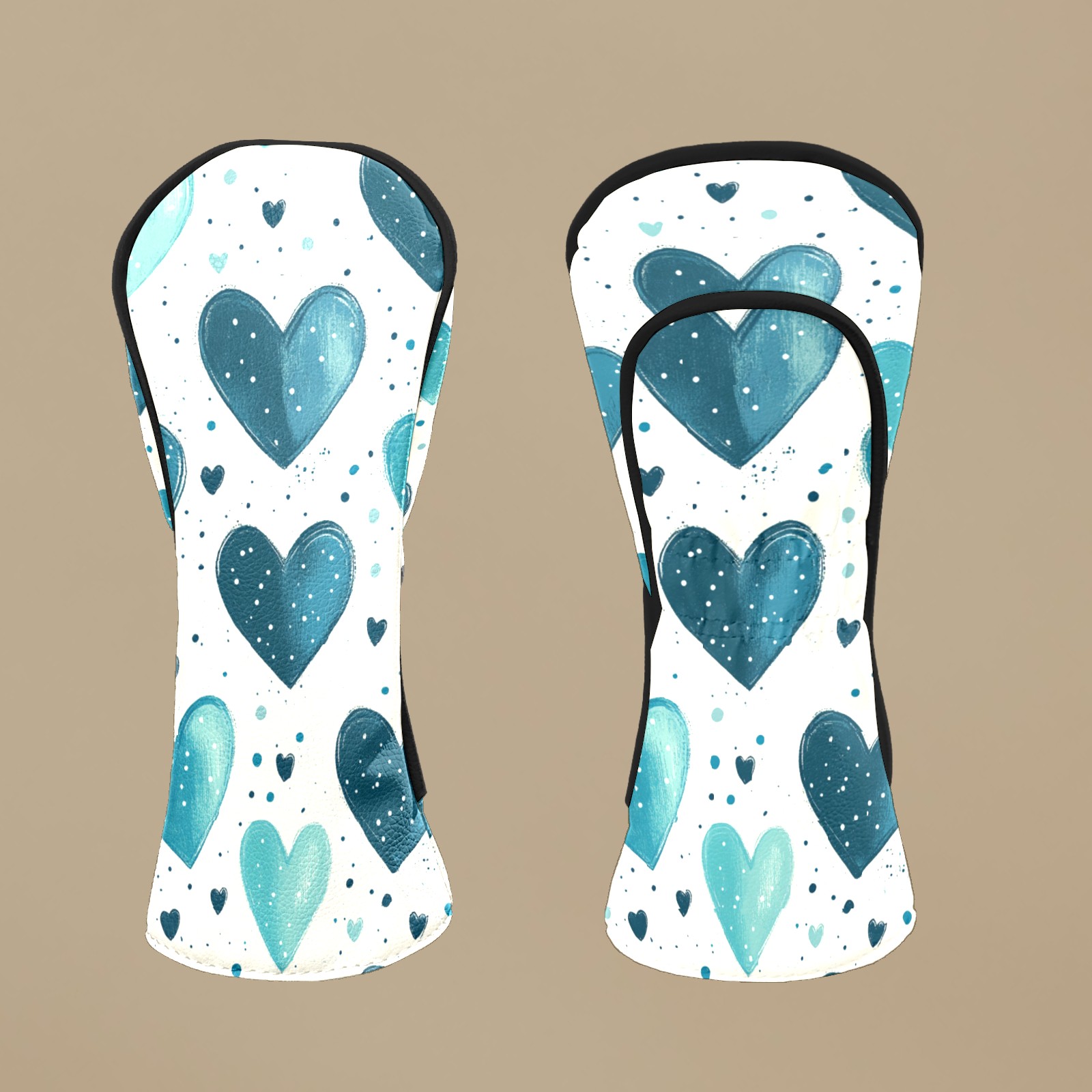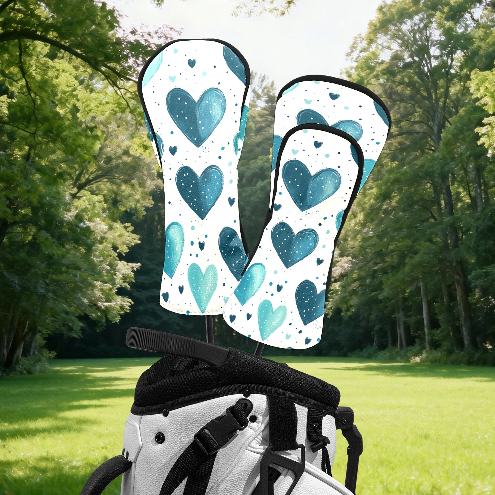 Golf Head Covers Fit Driver Headcover, Fairway Wood, and Hybrid Covers for Blue Heart Pattern Design, Waterproof PU Leather, Classic Golf Gift & Accessories for Golfers