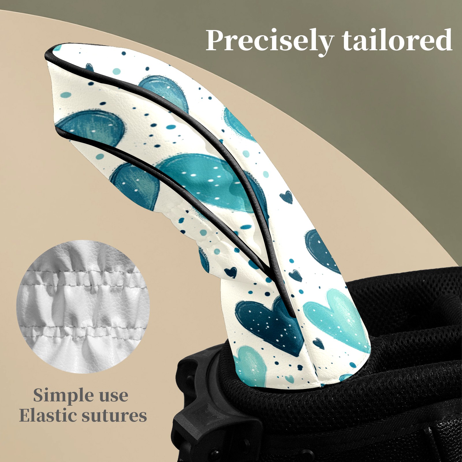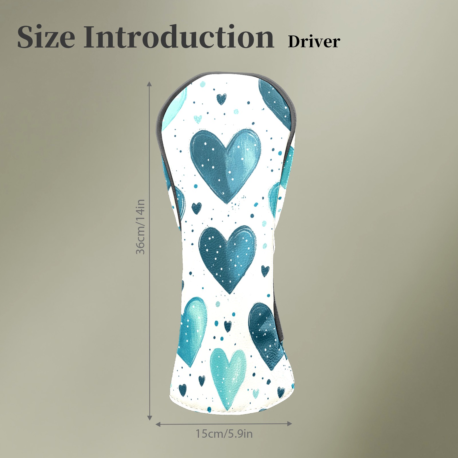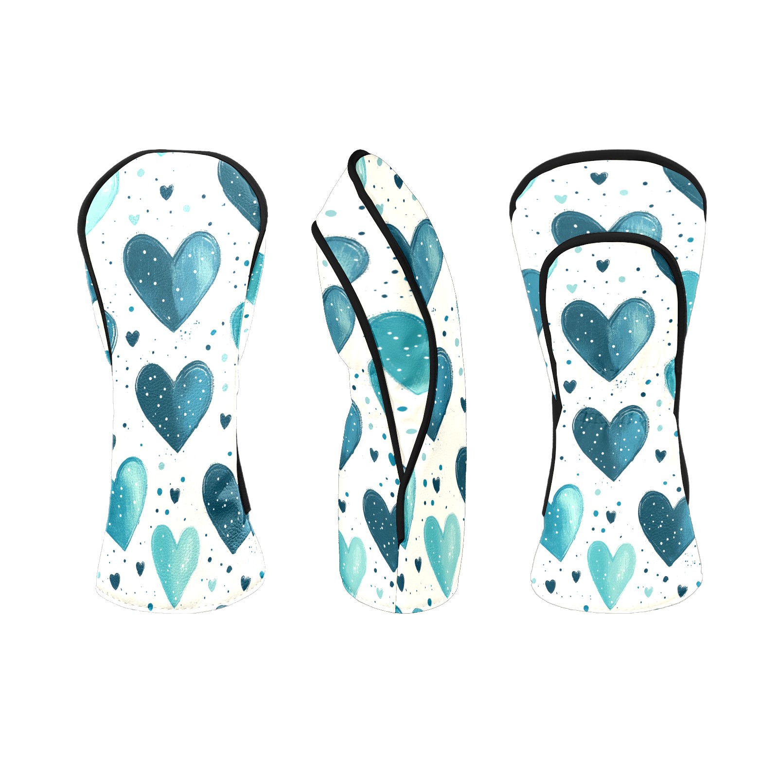 Golf Head Covers Fit Driver Headcover, Fairway Wood, and Hybrid Covers for Blue Heart Pattern Design, Waterproof PU Leather, Classic Golf Gift & Accessories for Golfers